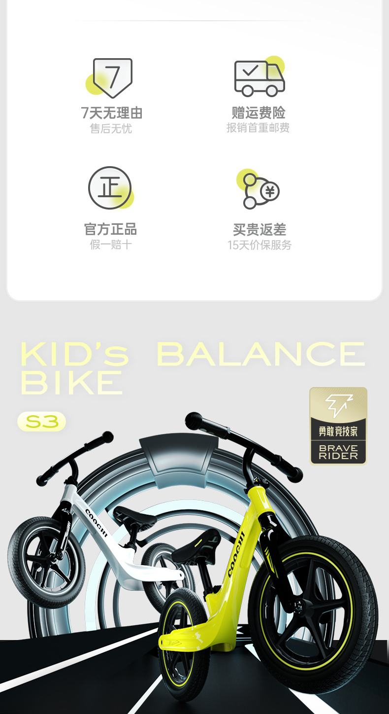 COOGHI酷骑儿童平衡车无脚踏男女孩宝宝滑行车2-3-6岁小童滑步车S3