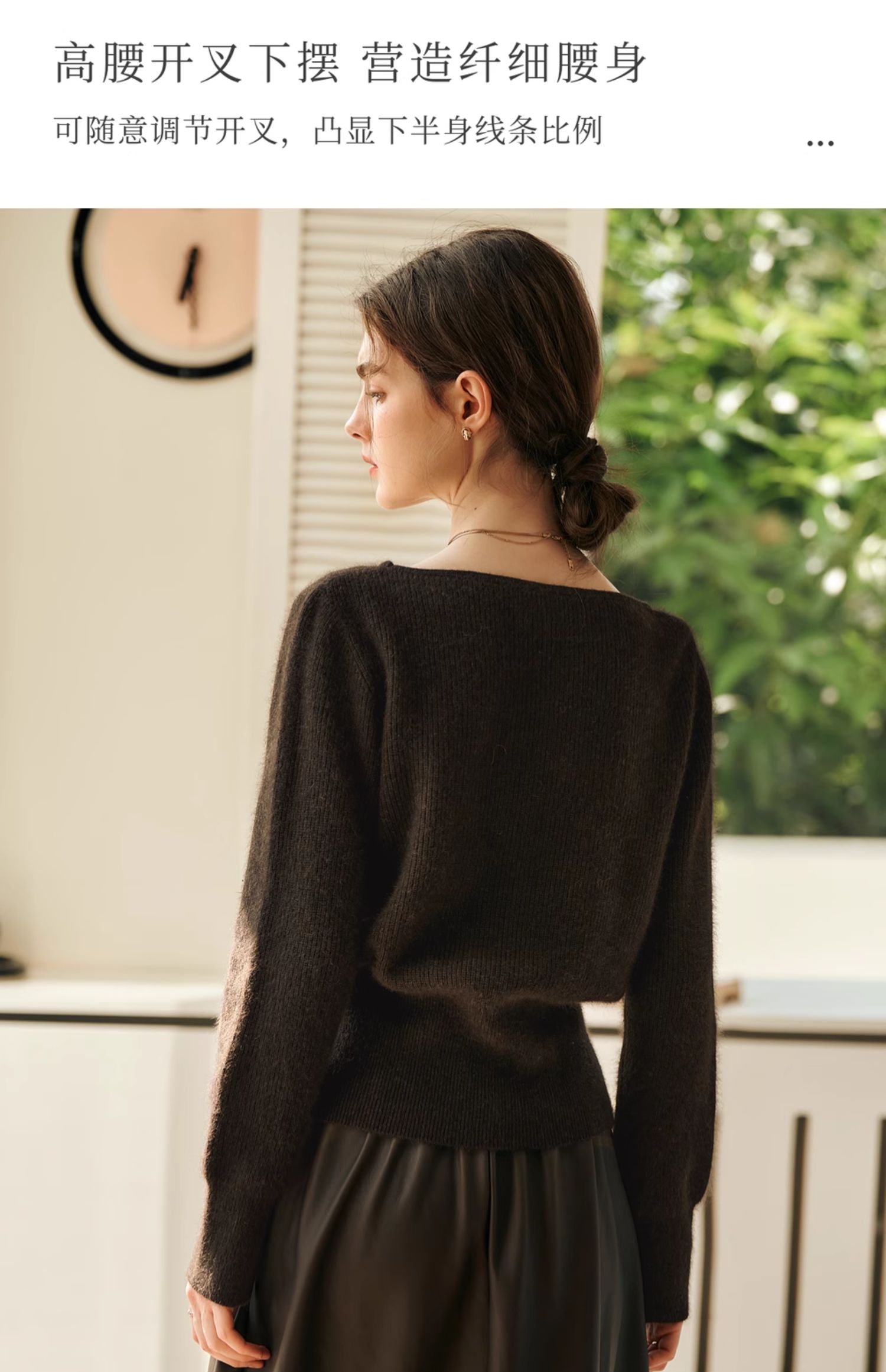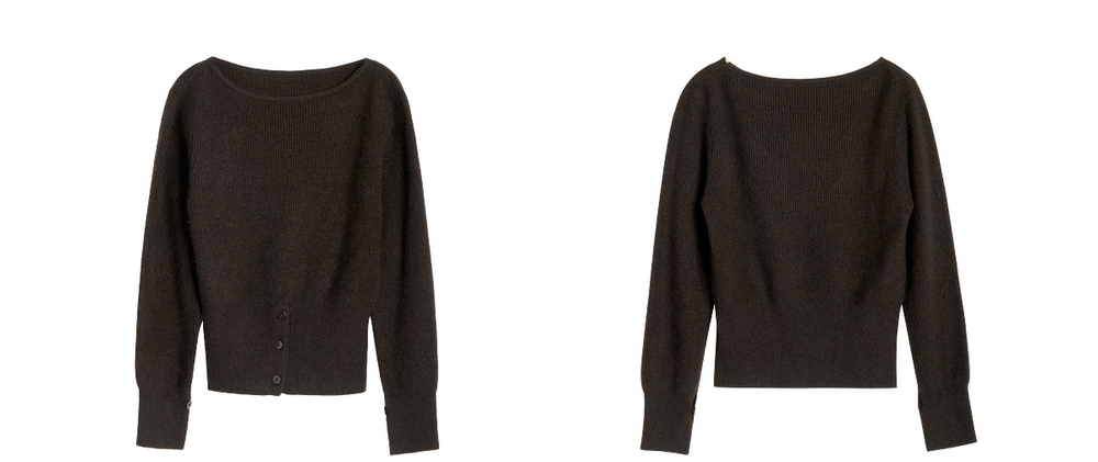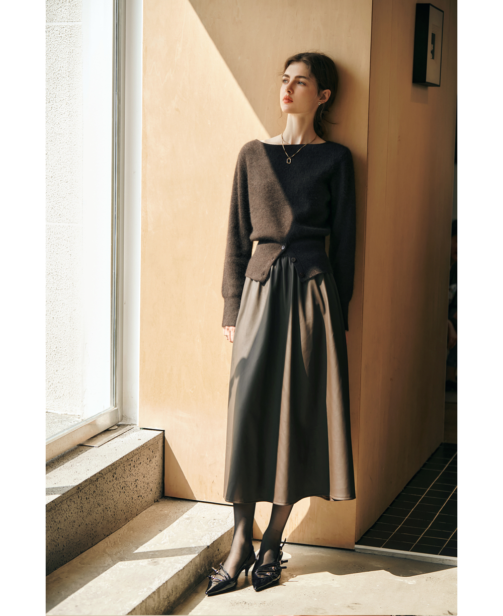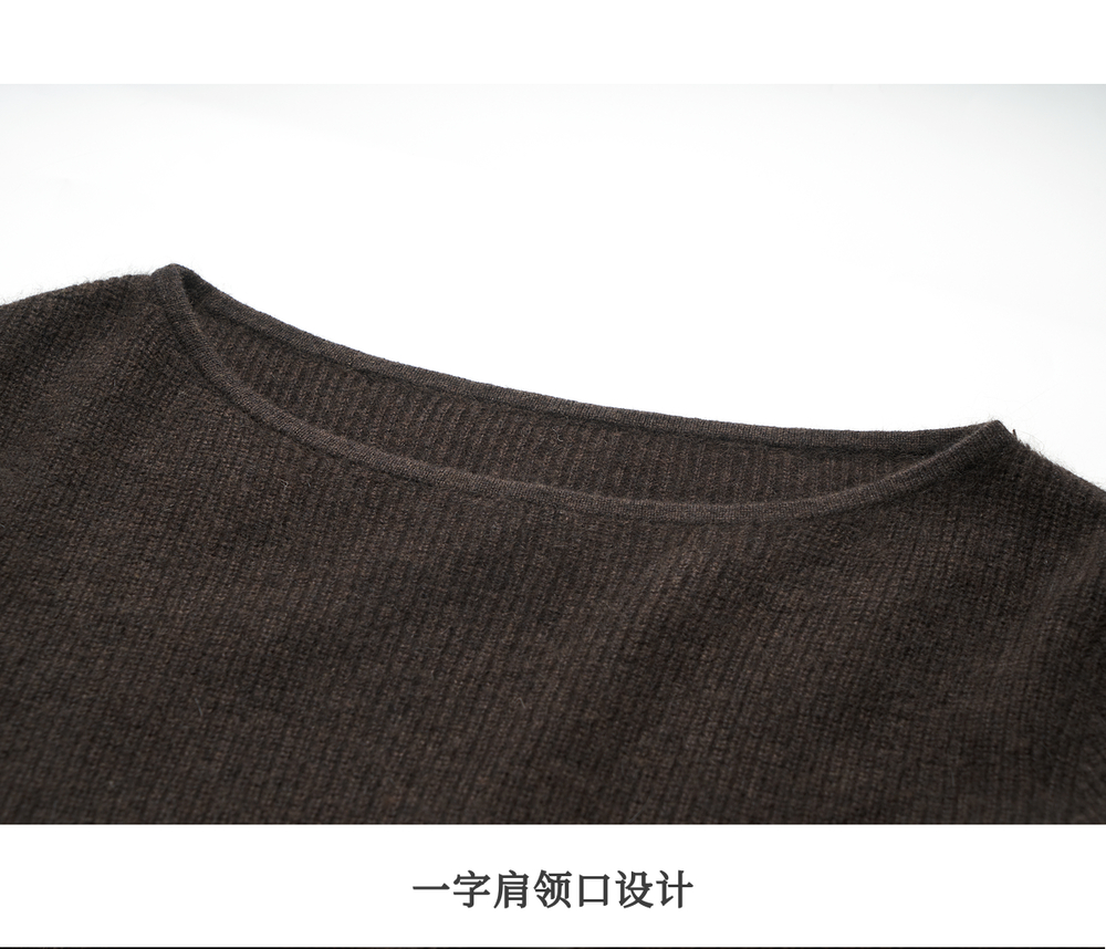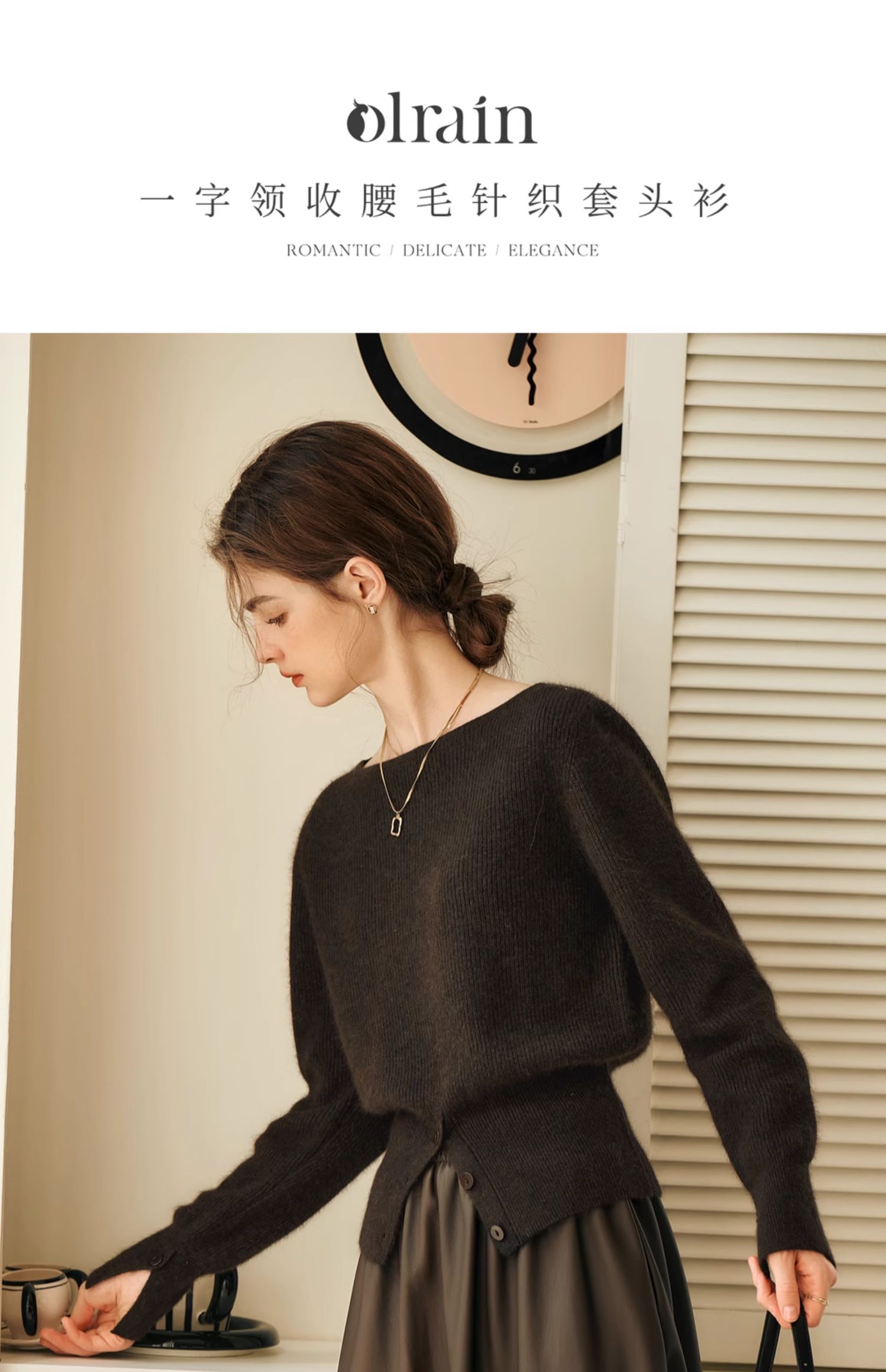 OLrain欧芮儿法式一字领毛衣女冬季2024年新款开叉下摆收腰套头衫