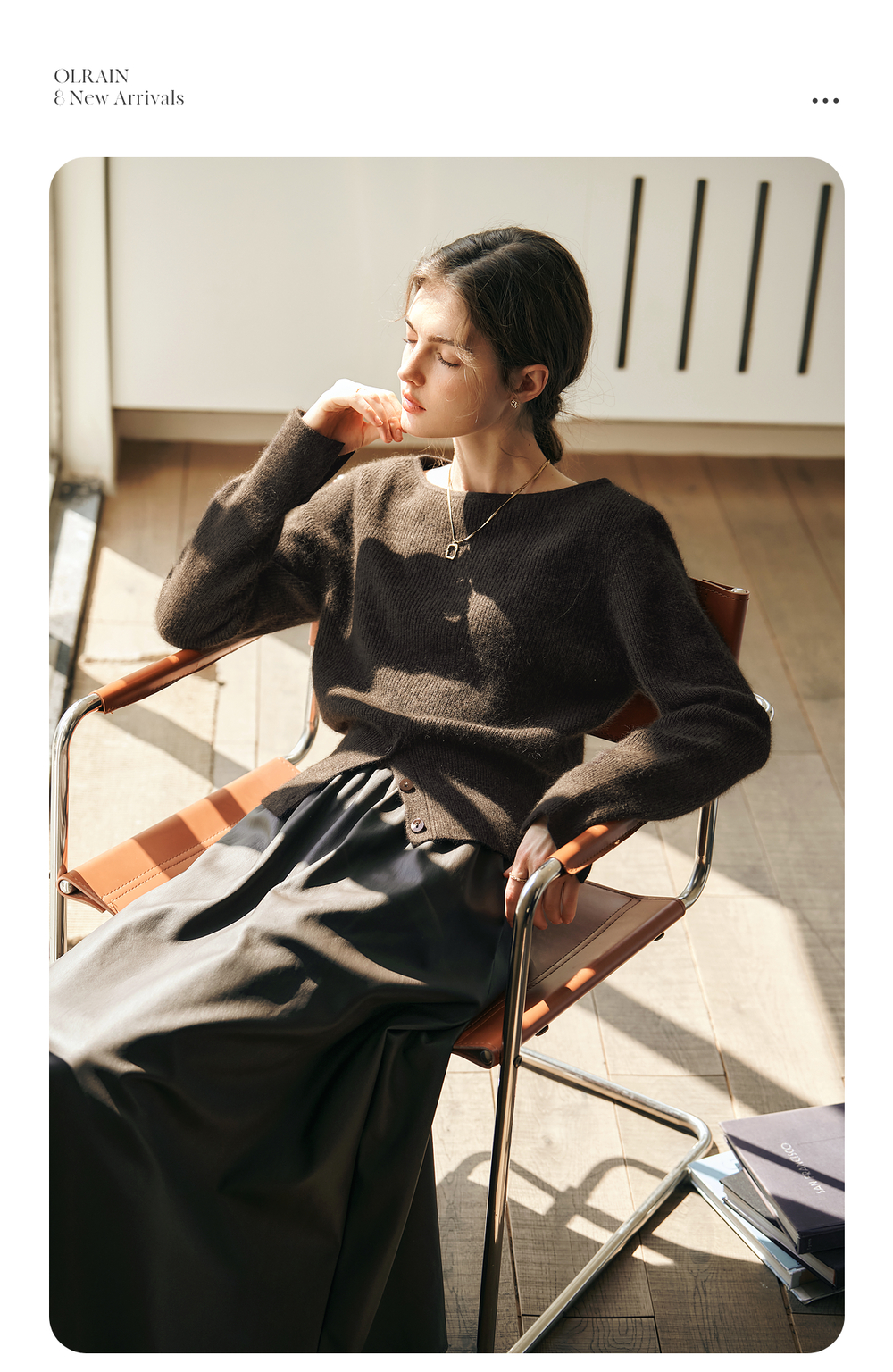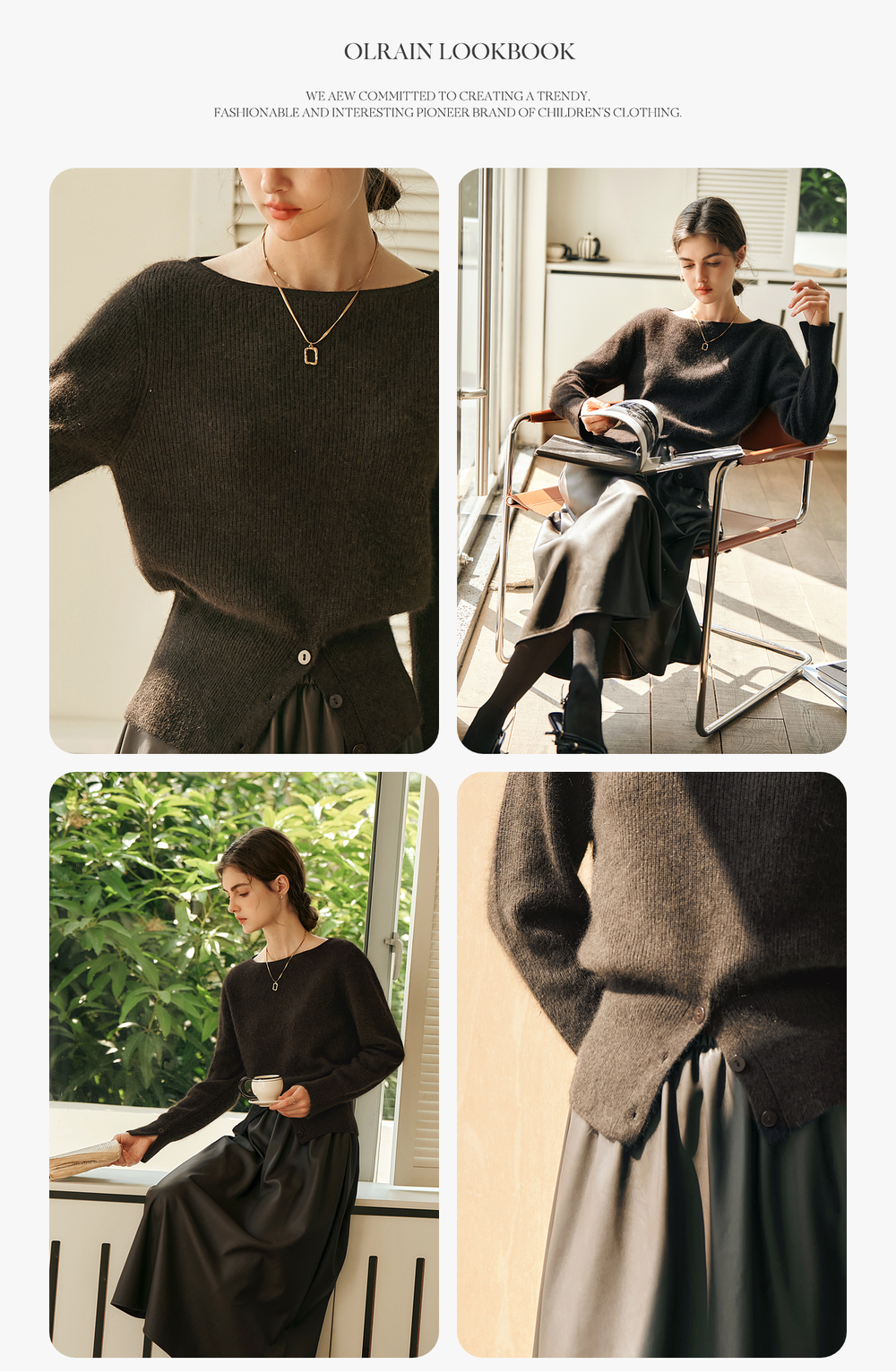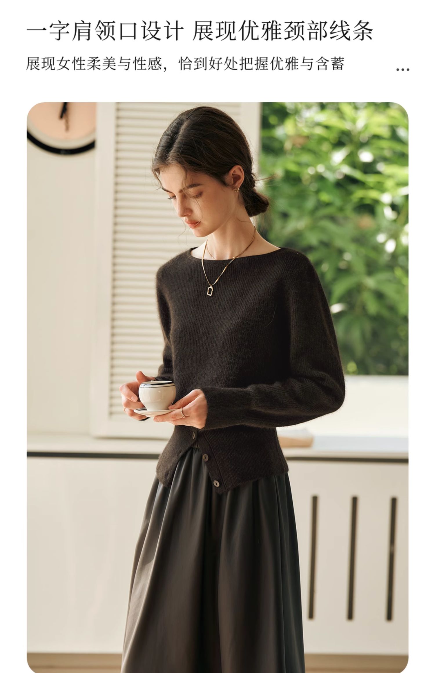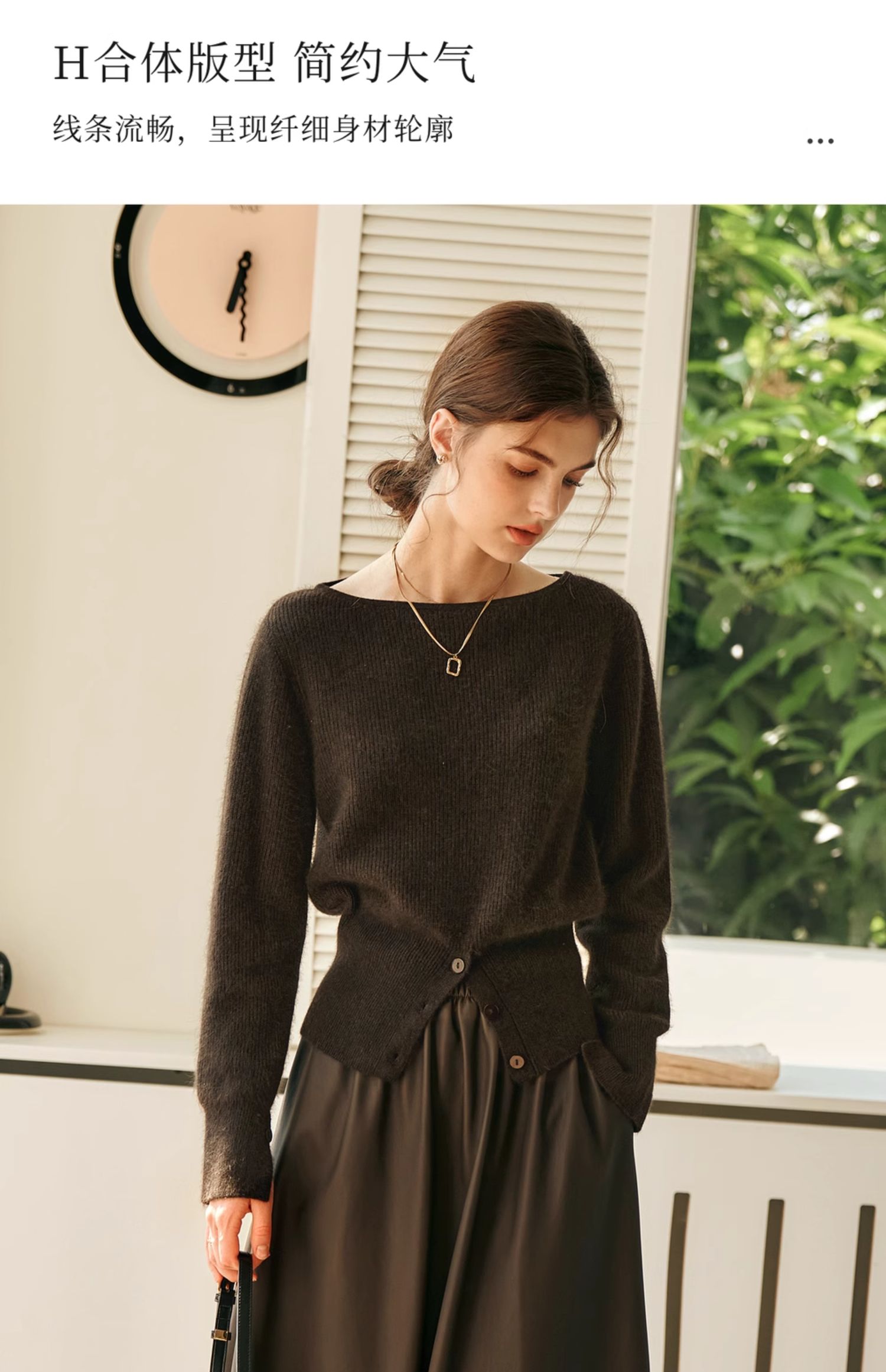 OLrain欧芮儿法式一字领毛衣女冬季2024年新款开叉下摆收腰套头衫