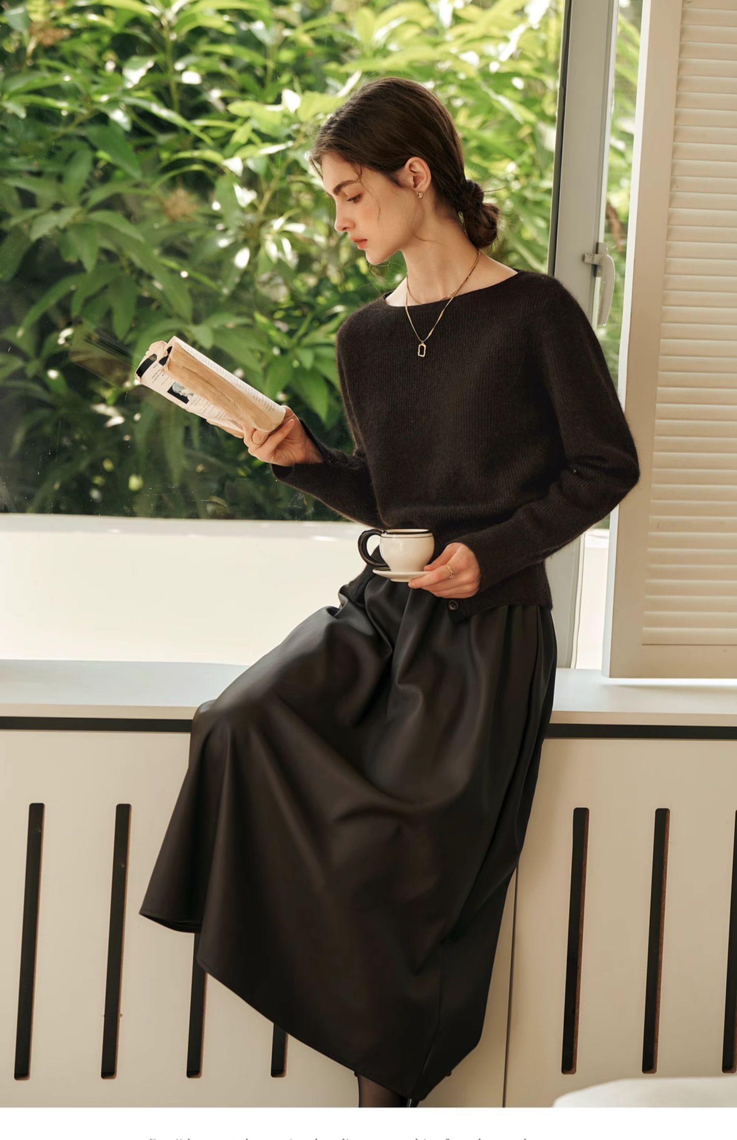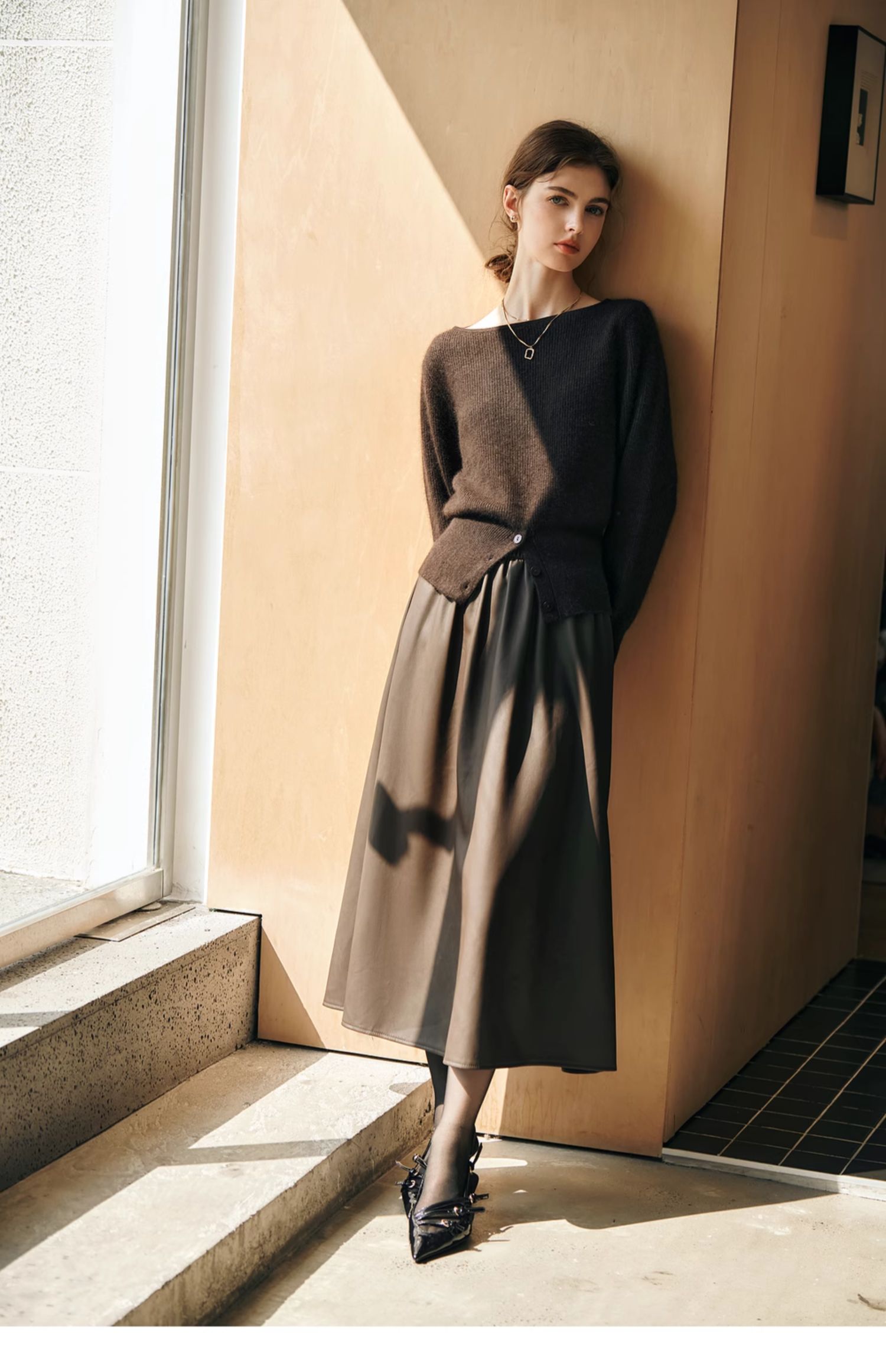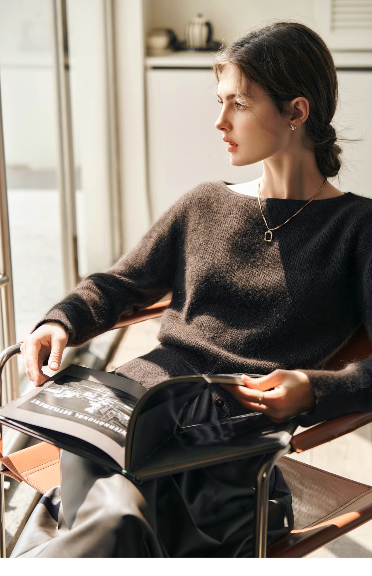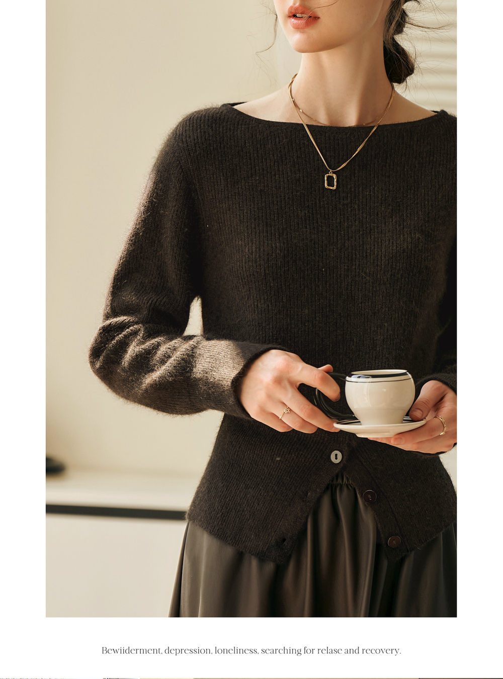 OLrain欧芮儿法式一字领毛衣女冬季2024年新款开叉下摆收腰套头衫