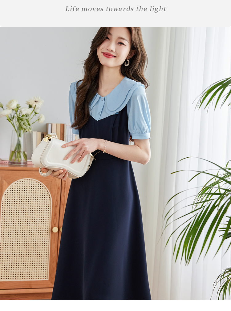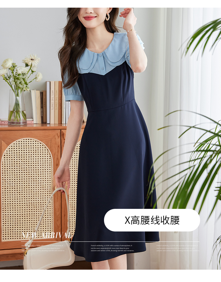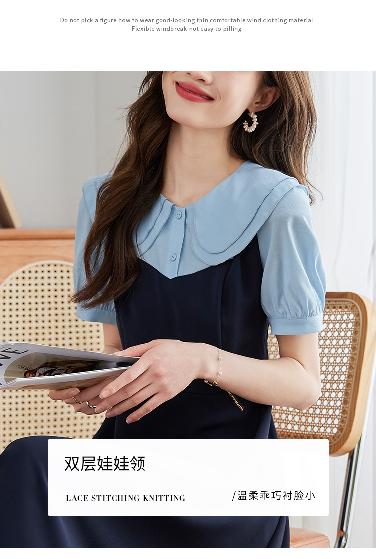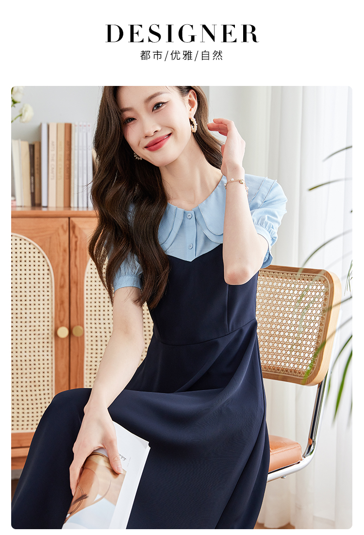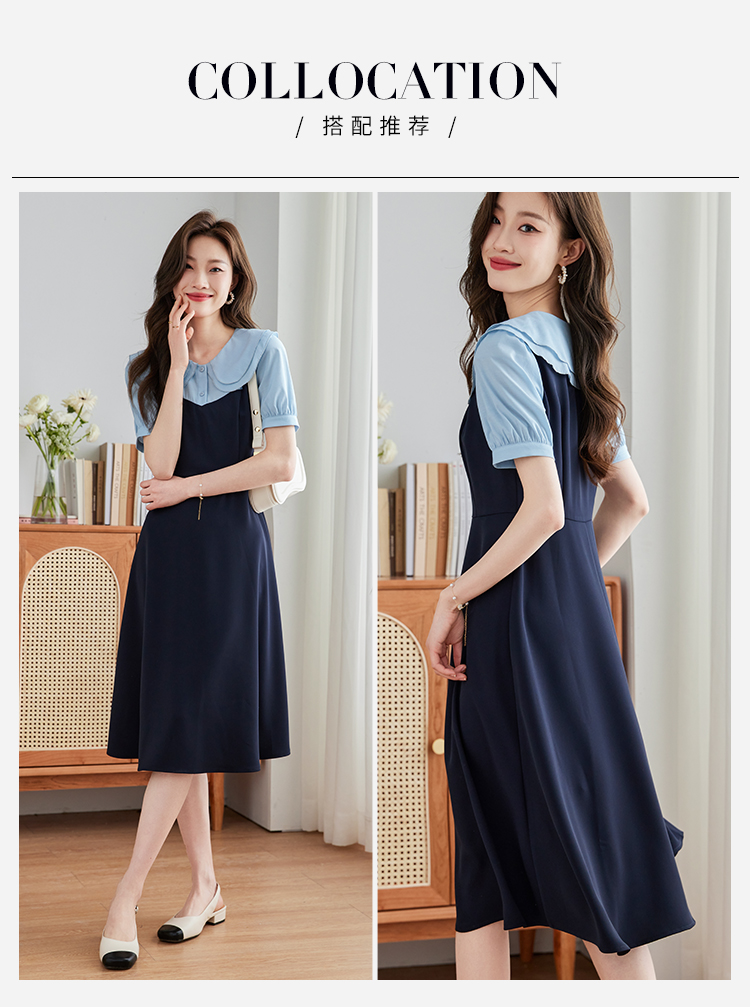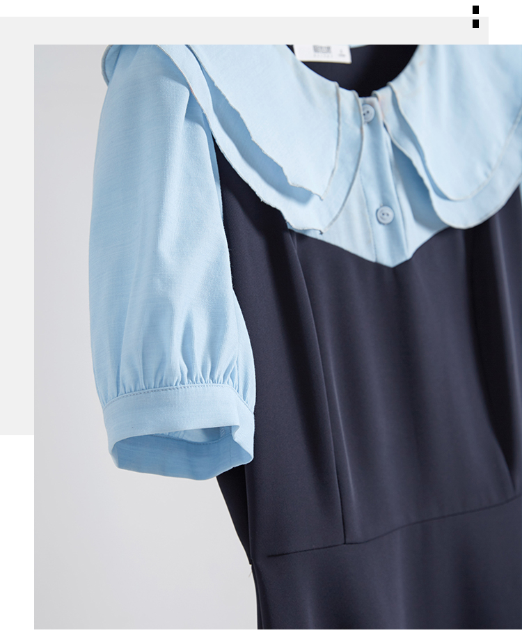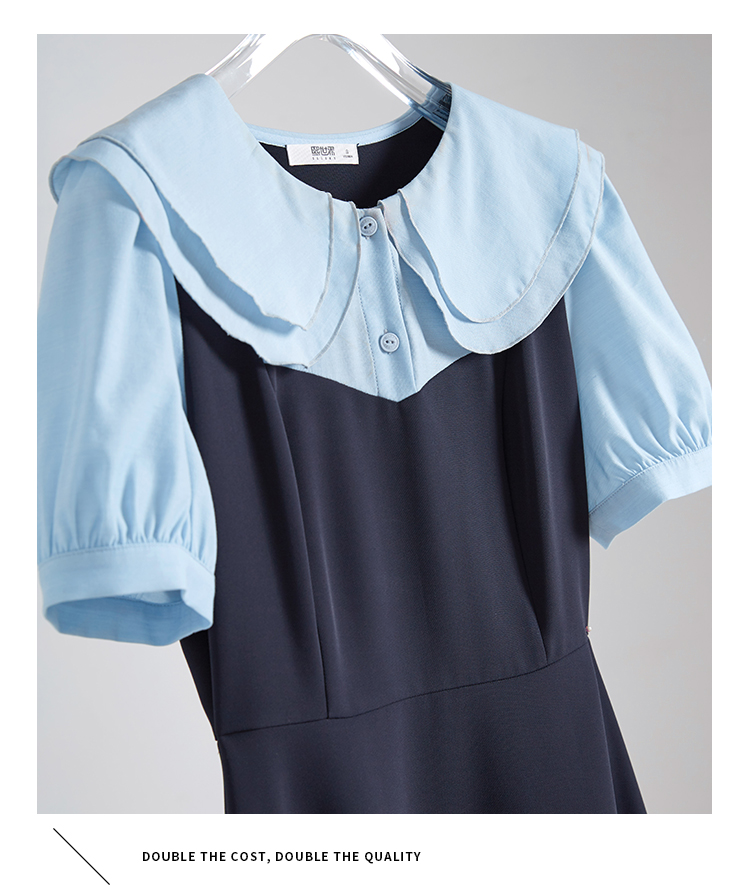 【专属特价】熙世界假两件拼接连衣裙女高级感泡泡袖娃娃领休闲裙子2025夏新款