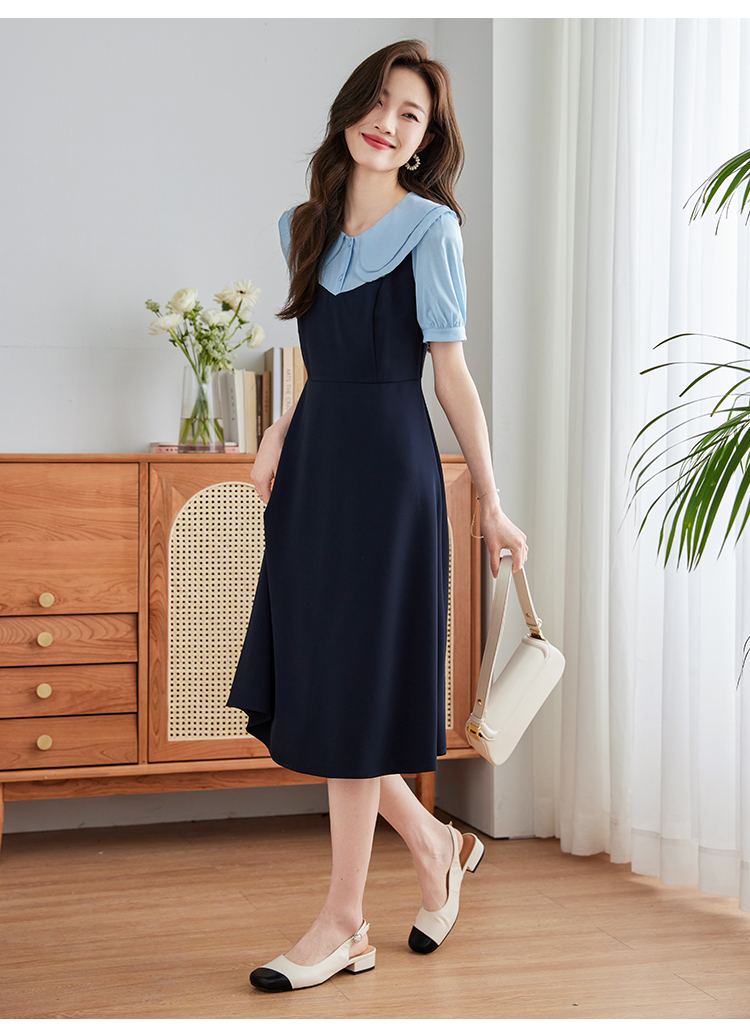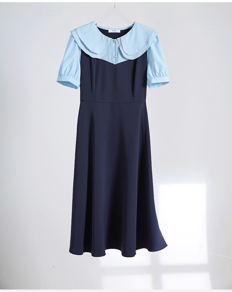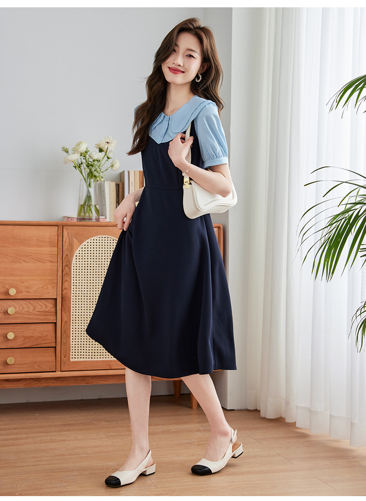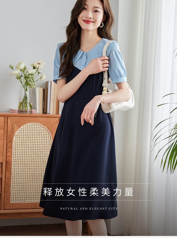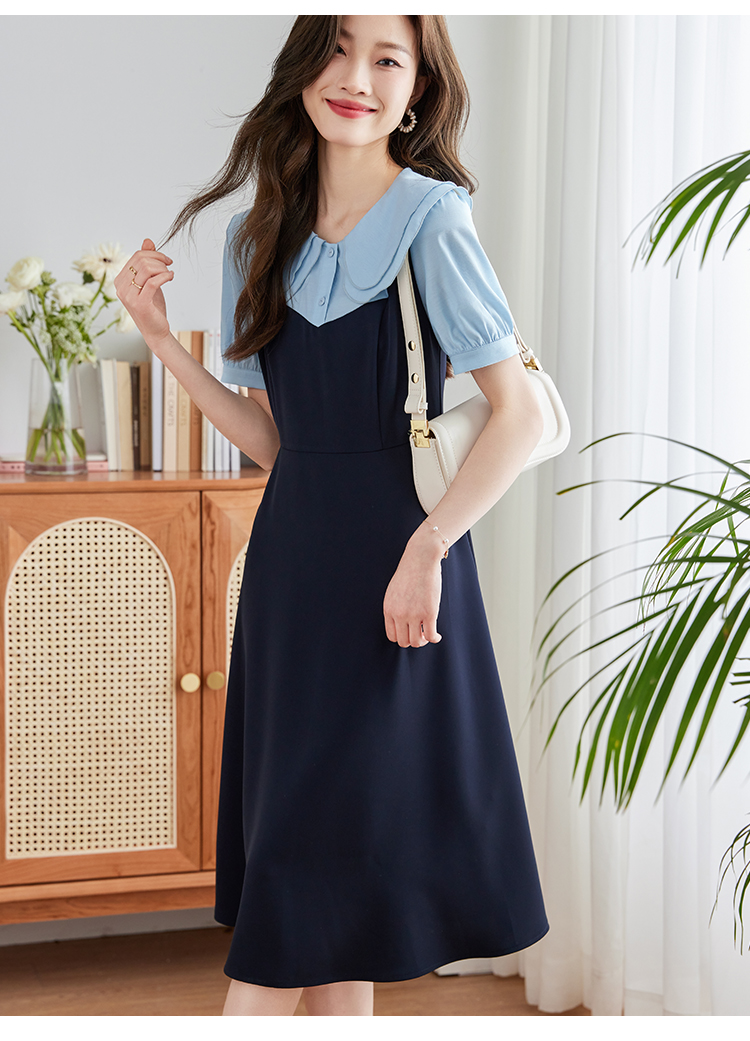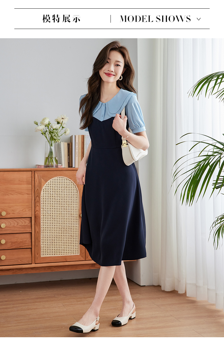 【专属特价】熙世界假两件拼接连衣裙女高级感泡泡袖娃娃领休闲裙子2025夏新款