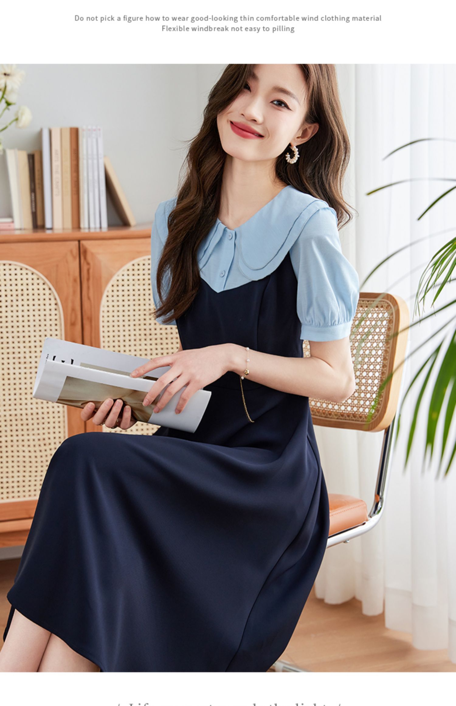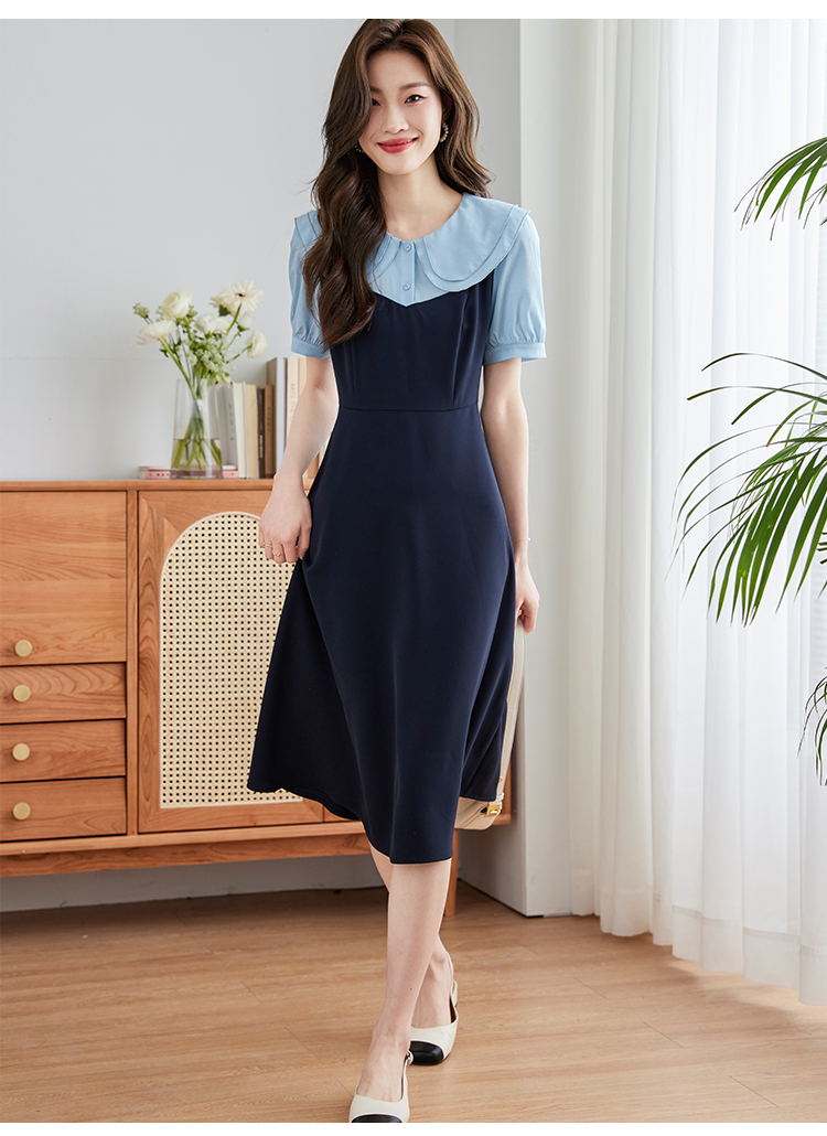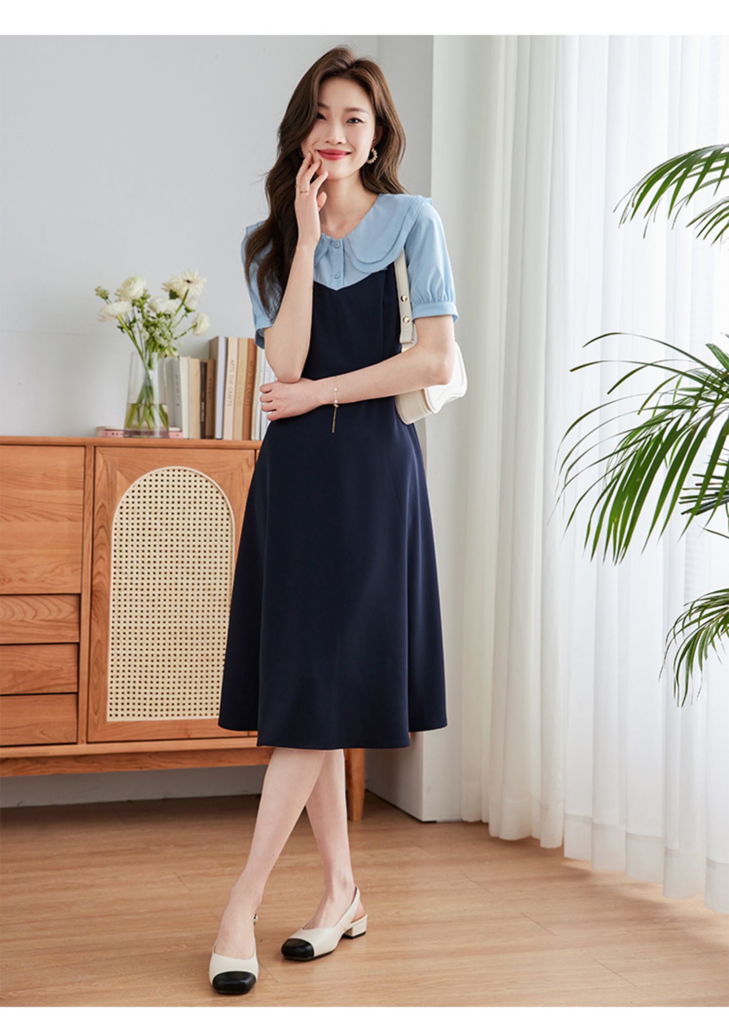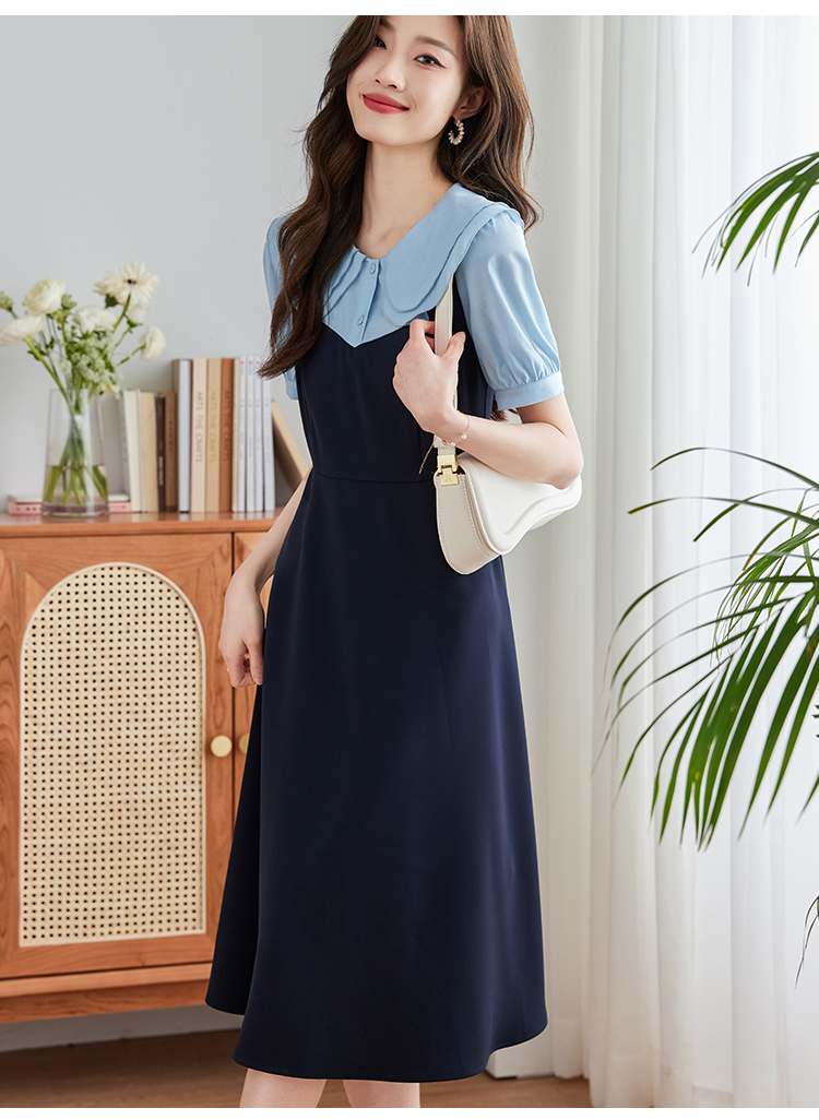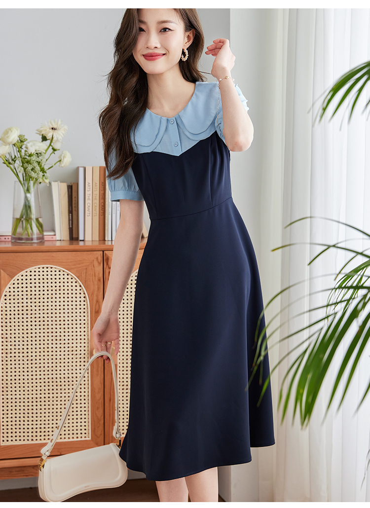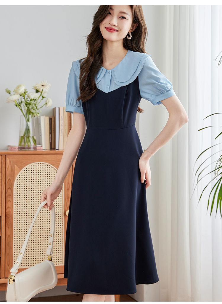 【专属特价】熙世界假两件拼接连衣裙女高级感泡泡袖娃娃领休闲裙子2025夏新款