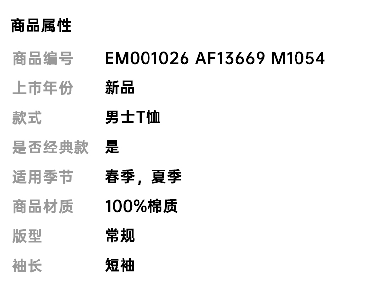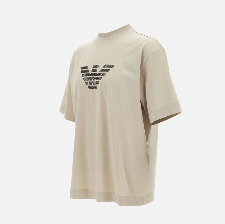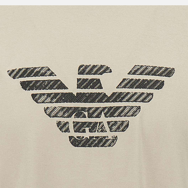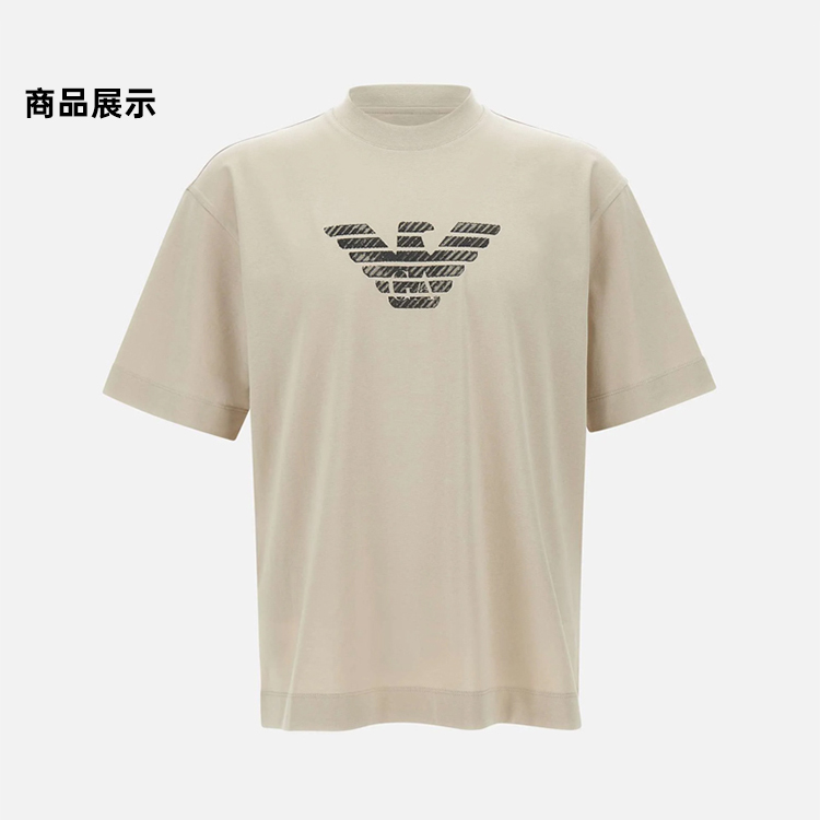 EMPORIO ARMANI 阿玛尼 男士小鹰徽标印花棉质圆领短袖T恤 米色 EM001026 AF13669 M1054