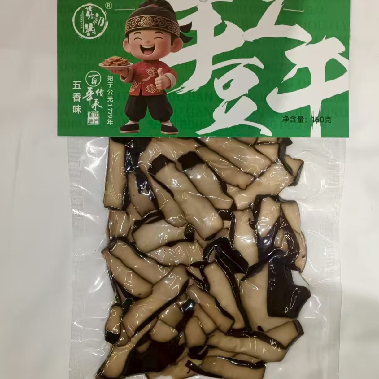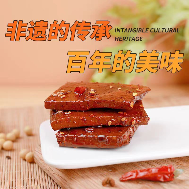 豆腐干系列产品采用优质大豆(有机认证)为原料,加羊角镇的地下水,武隆山区的56种中药材制成的卤水,经多次反复卤制,百年传统手工工艺加工成;