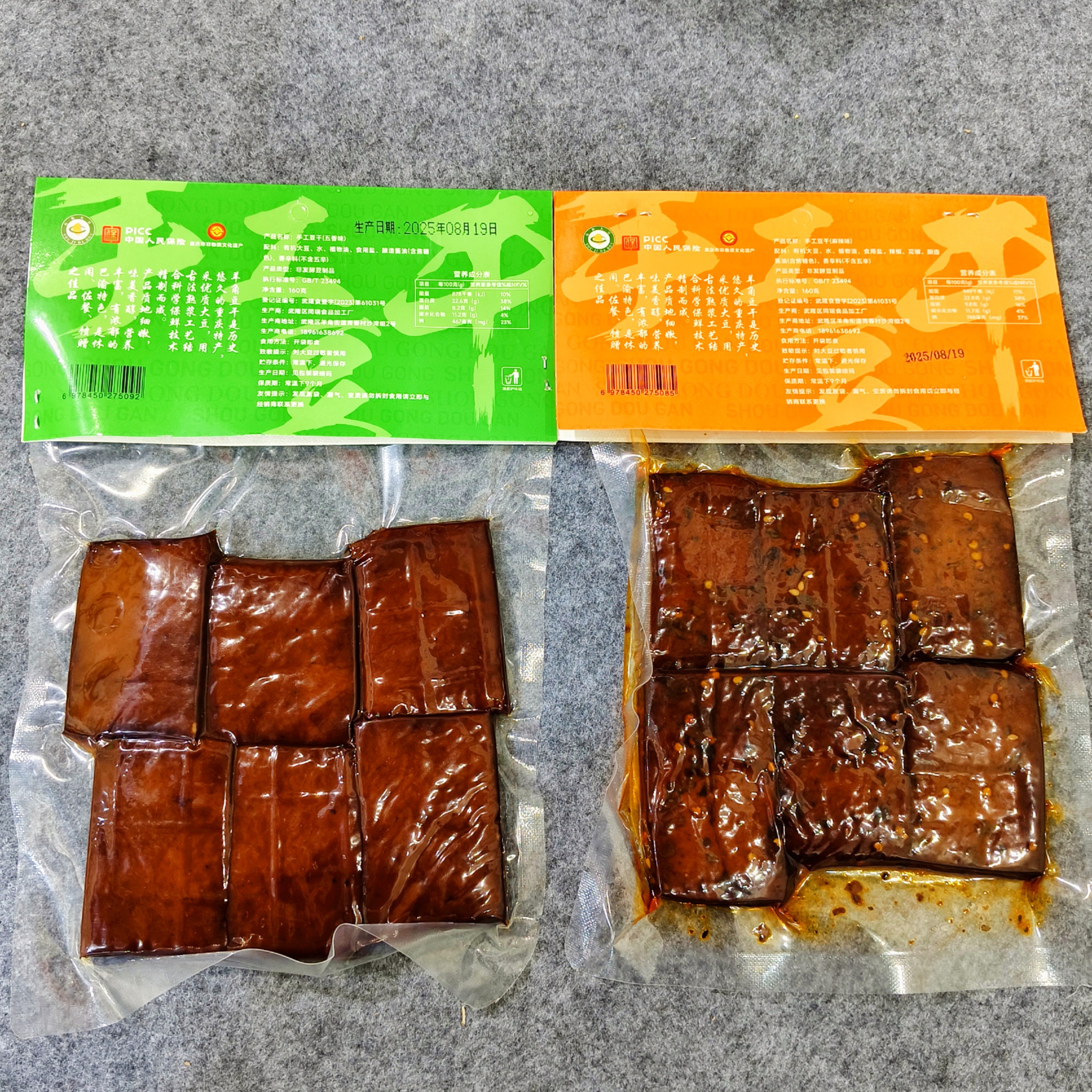 羊角豆干是历史悠久的重庆特产,采用优质大豆(通过中国有机认证),用古法熟浆工艺结合科学保鲜技术,手工加工而成。