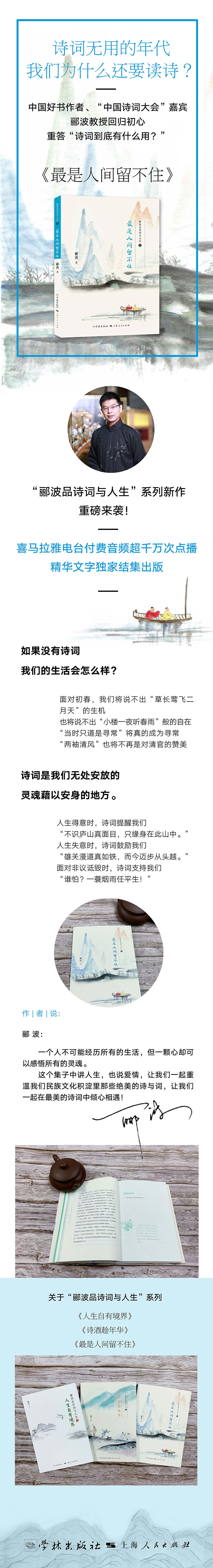 这套丛书的系列名为“郦波品诗词与人生”,我也曾经写过名为“诗词无用的年代,我们为什么还要读诗”的总序。