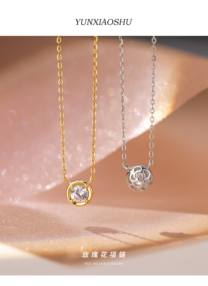 子佩集【单钻玫瑰】S925银双面可戴项链【YXS-A2322】