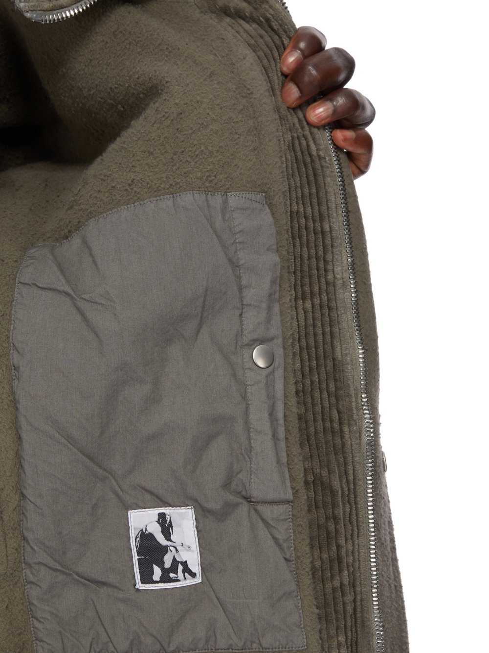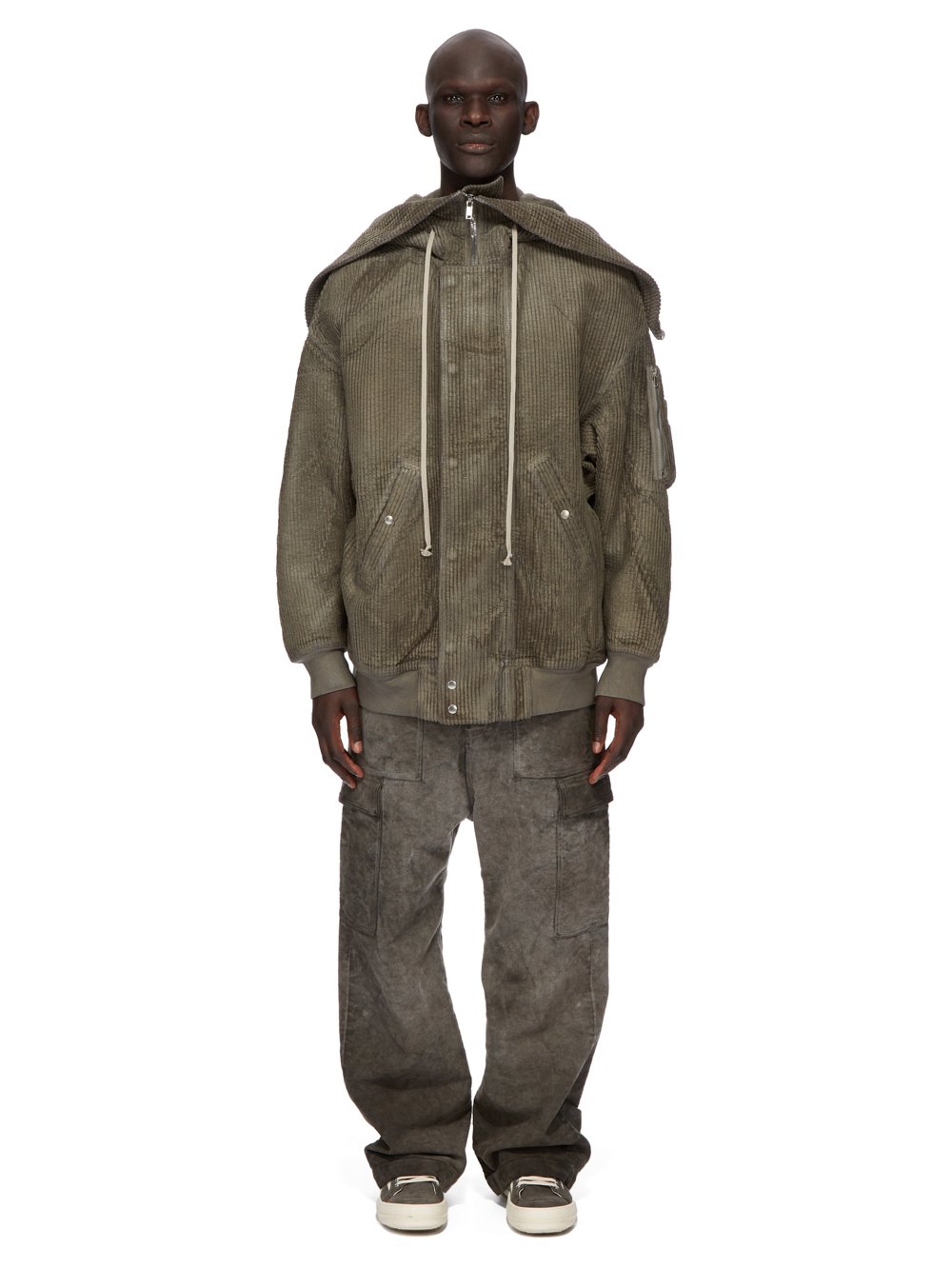 这款连帽长款飞行员夹克长度低于臀部,长袖,超大版型。