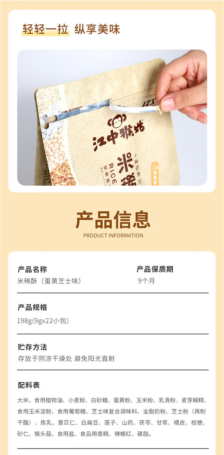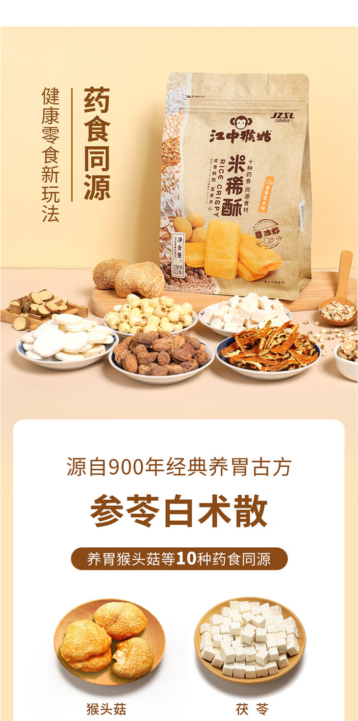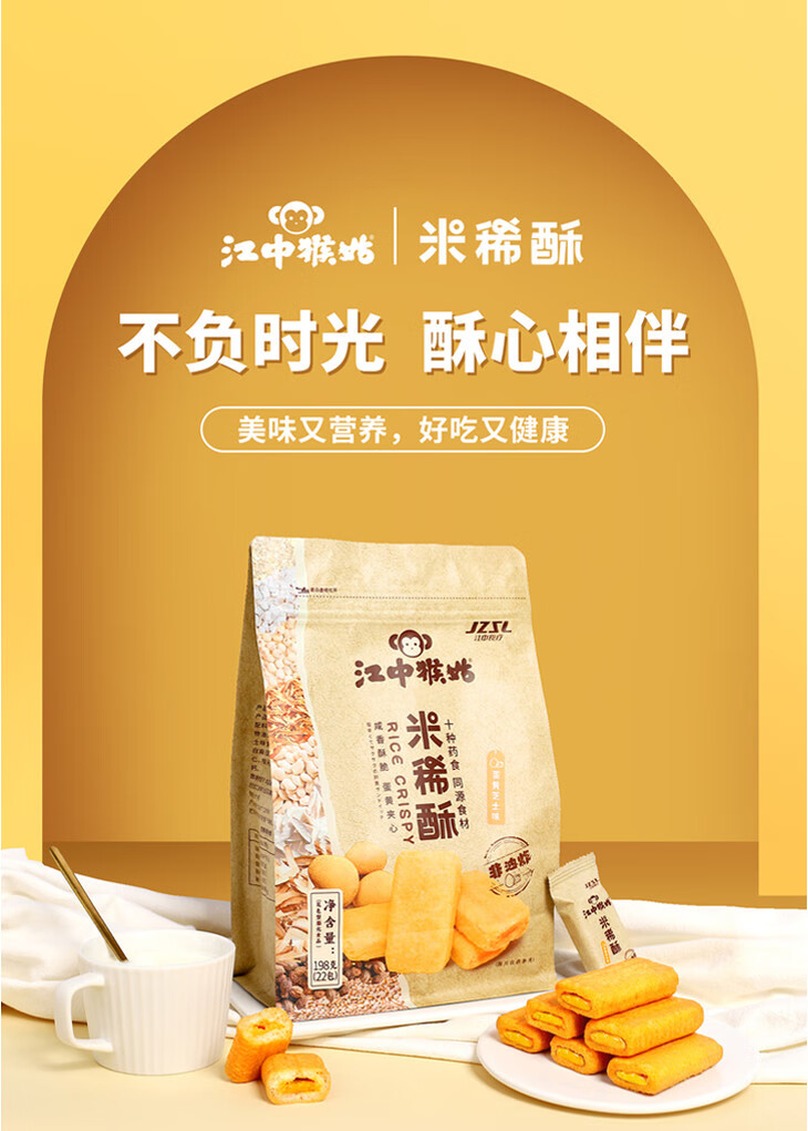 【分仓直发包邮】江中猴姑米稀酥198g*2袋