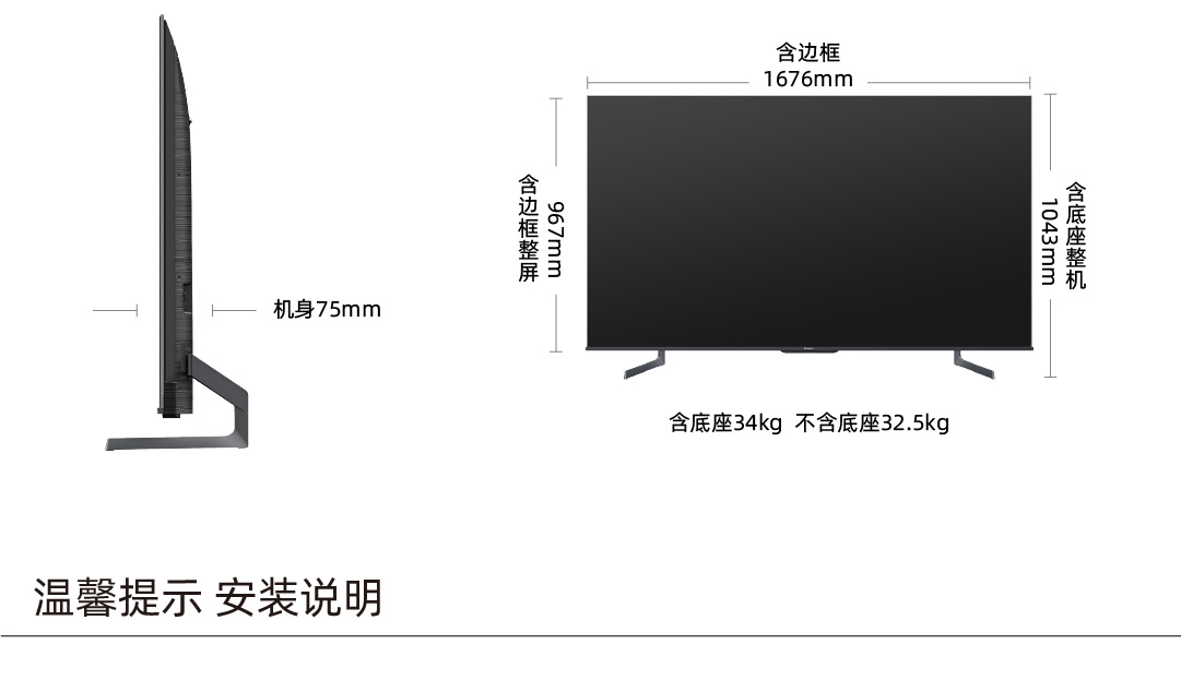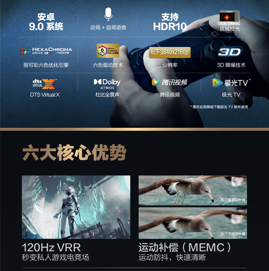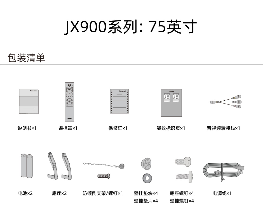 松下(Panasonic)JX900C 75英寸 4K超清120Hz悬浮全面屏游戏电视机 HDMI2.1开机无广告TH-75JX900C