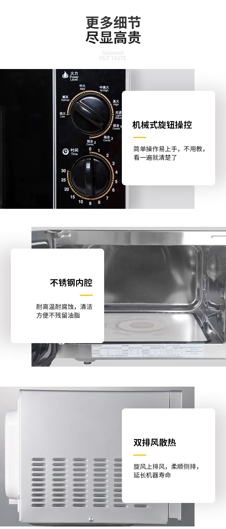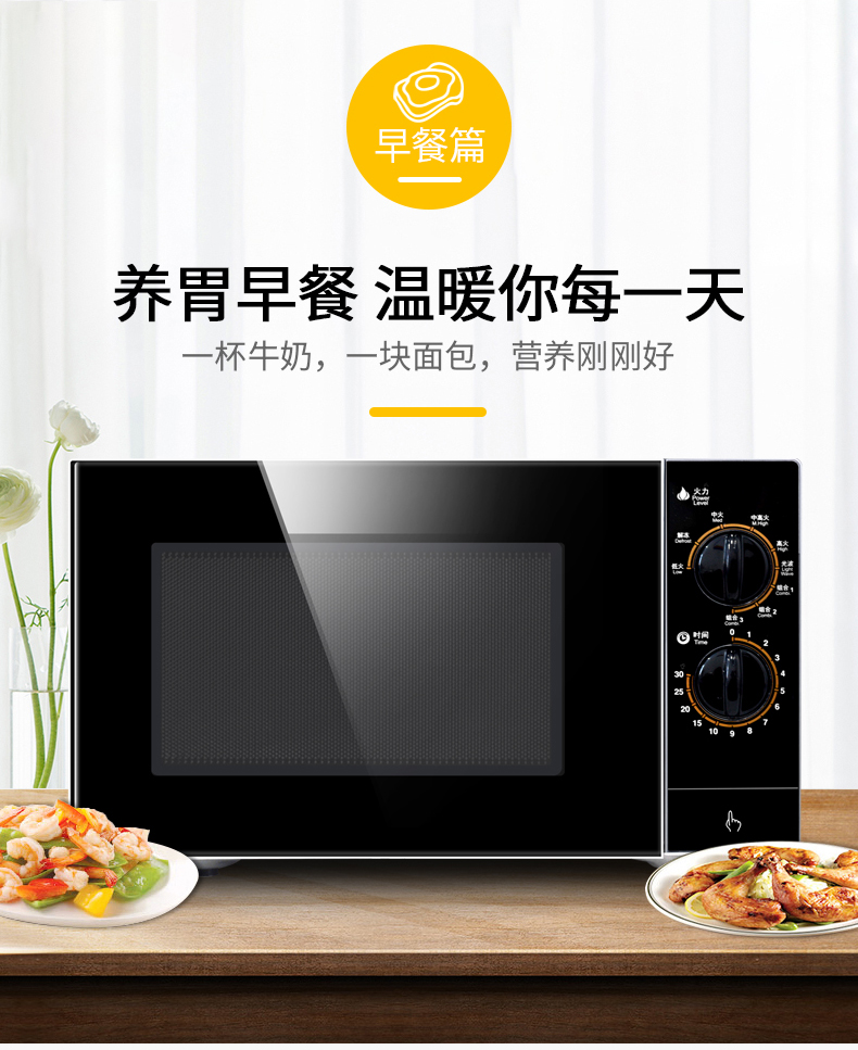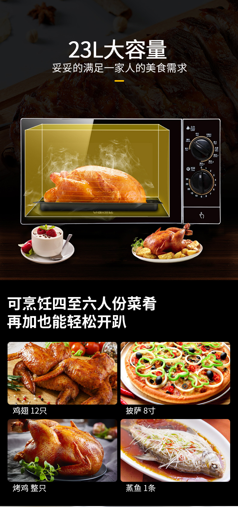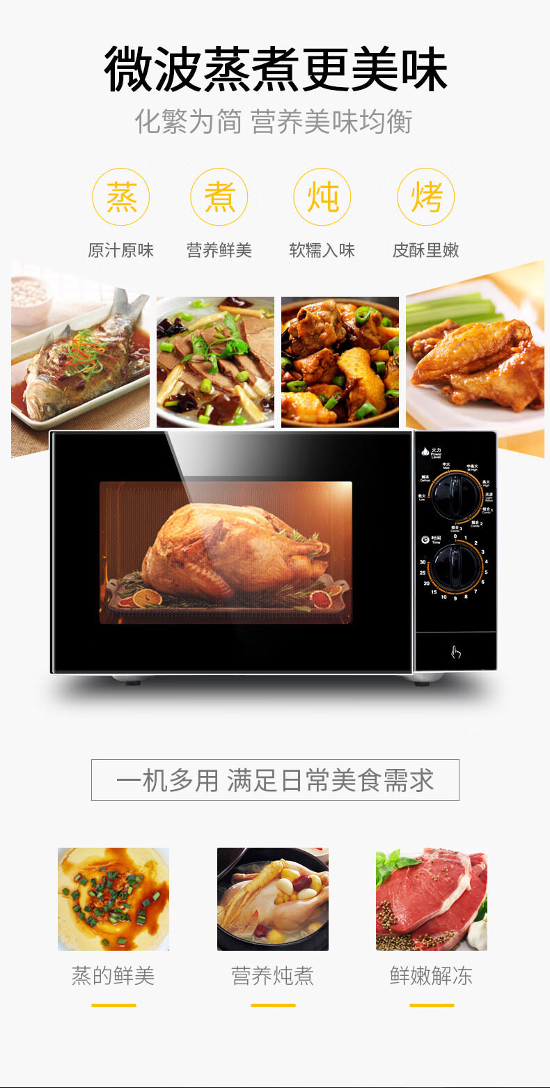 格兰仕(Galanz) 微波炉 光波烧烤微波炉烤箱一体机不锈钢内胆旋钮操作平板加热家用光波炉 M8(S0)