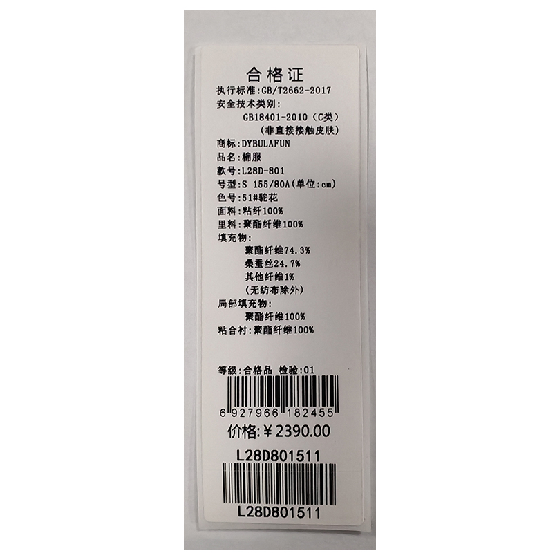 戴布拉芬棉服L28D801