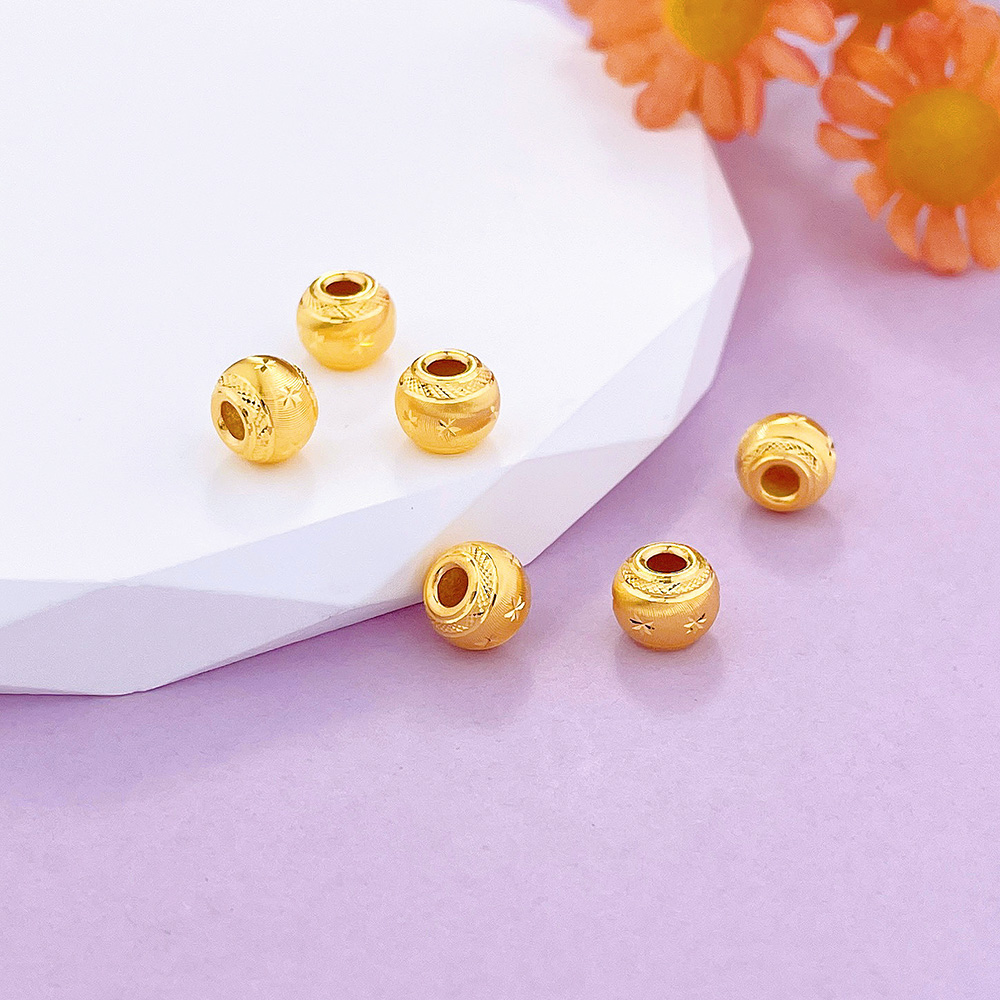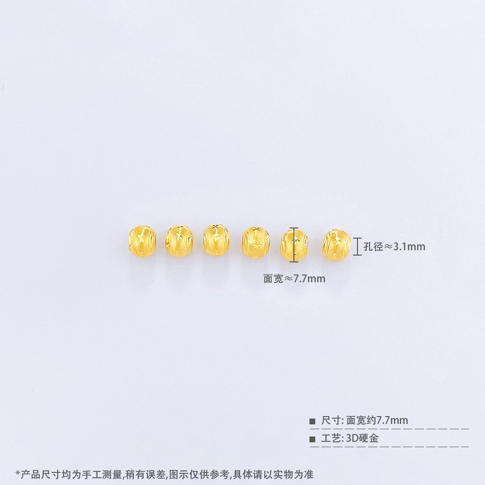 【限时克减128元】足金 【无成色字印】3D硬金散珠转运珠空心车花圆珠转运金珠路路通手串配件Diy手串配件/6粒(V3DSC00390)(预售产品下单后不退款不退货不换货不补差
