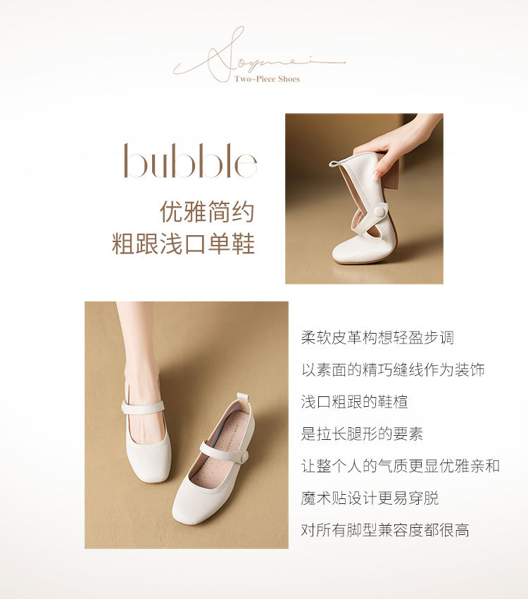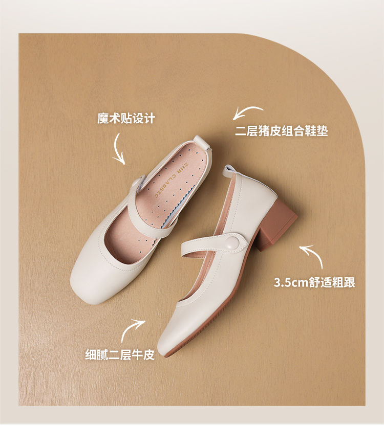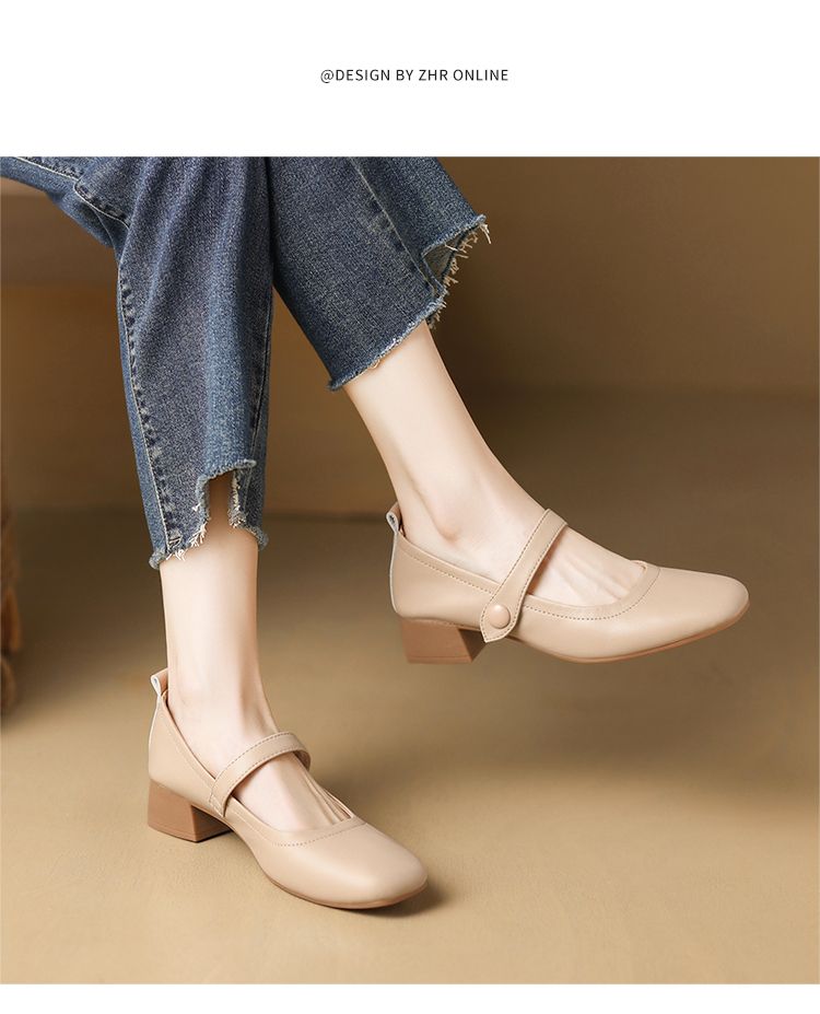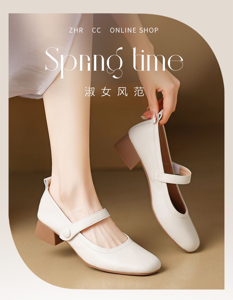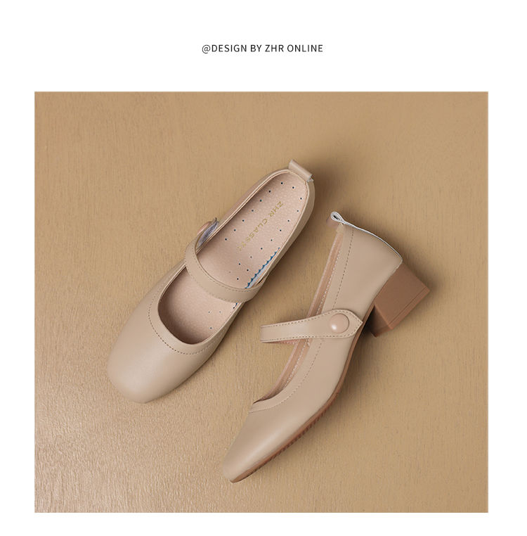 ZHR则则浅口单鞋女2024新款英伦小皮鞋优雅简约百搭粗跟女鞋玛丽珍鞋