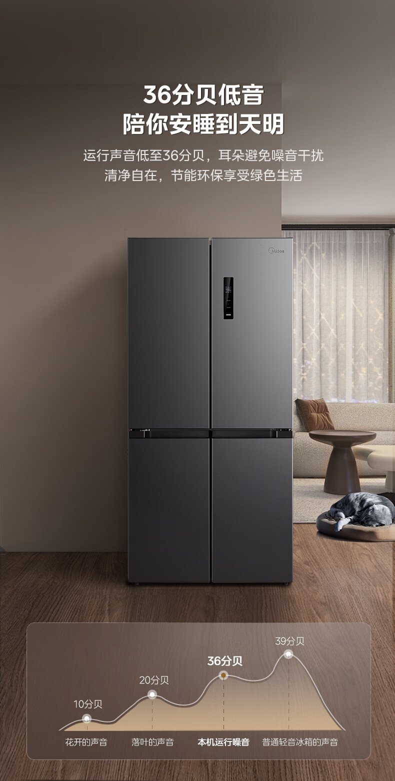 美的(Midea)478升十字对开门一级能效双变频风冷无霜家用大容量超薄电冰箱BCD-478WSPM(E)远山黛【专】