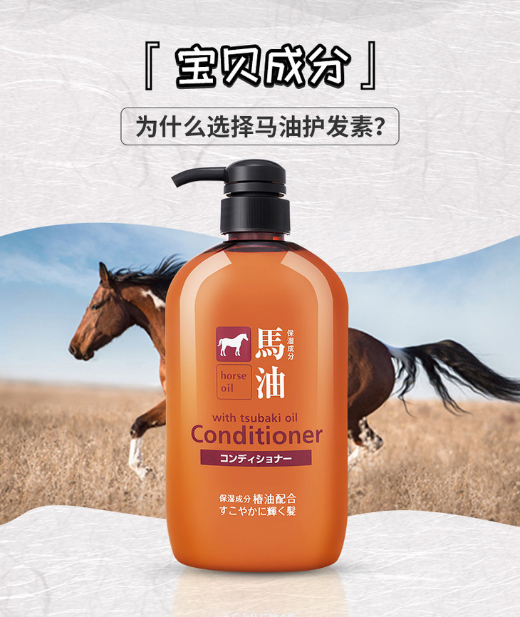 日本进口 咖思美熊野油脂无硅马油护发素 1000ML/瓶