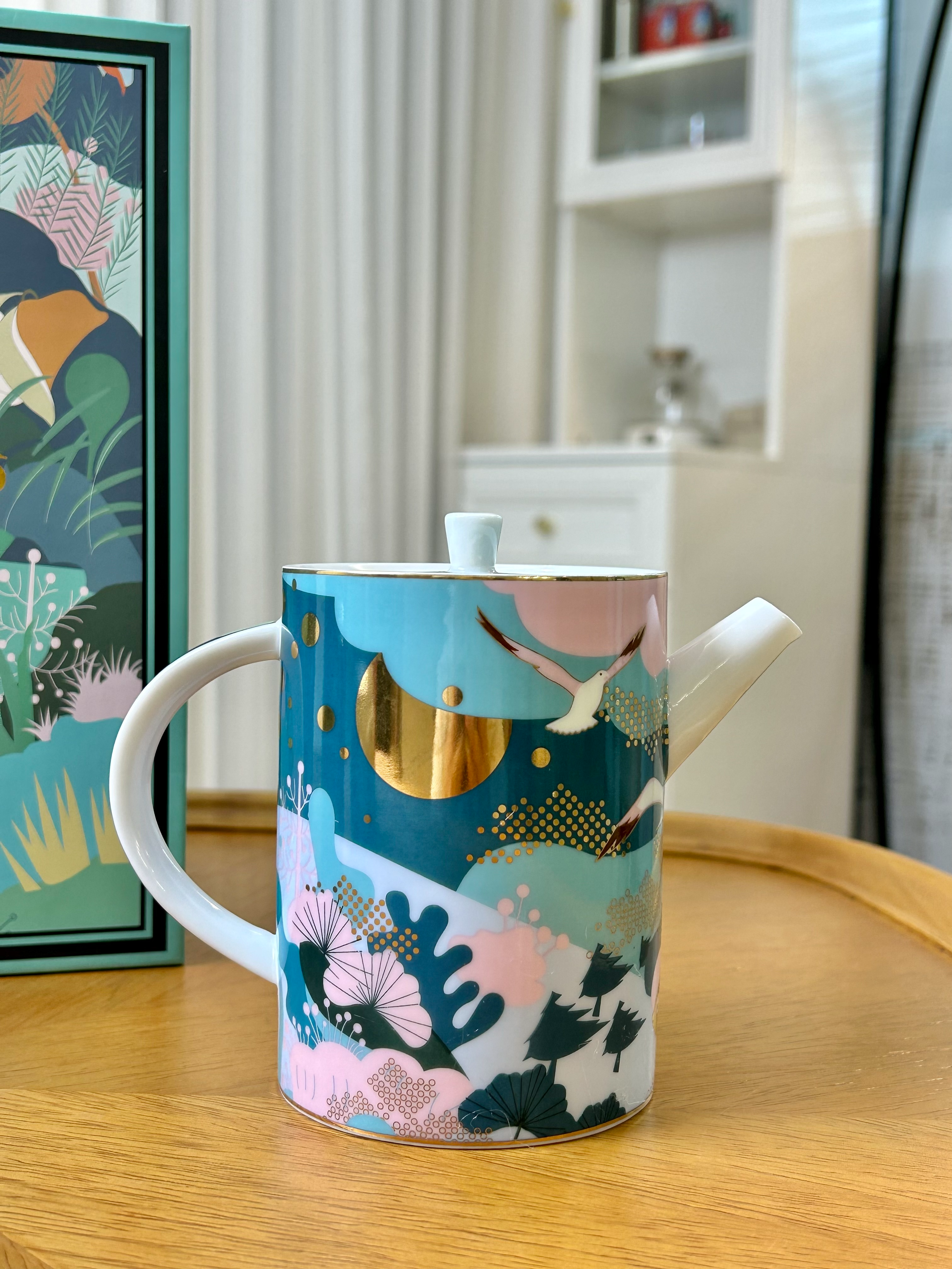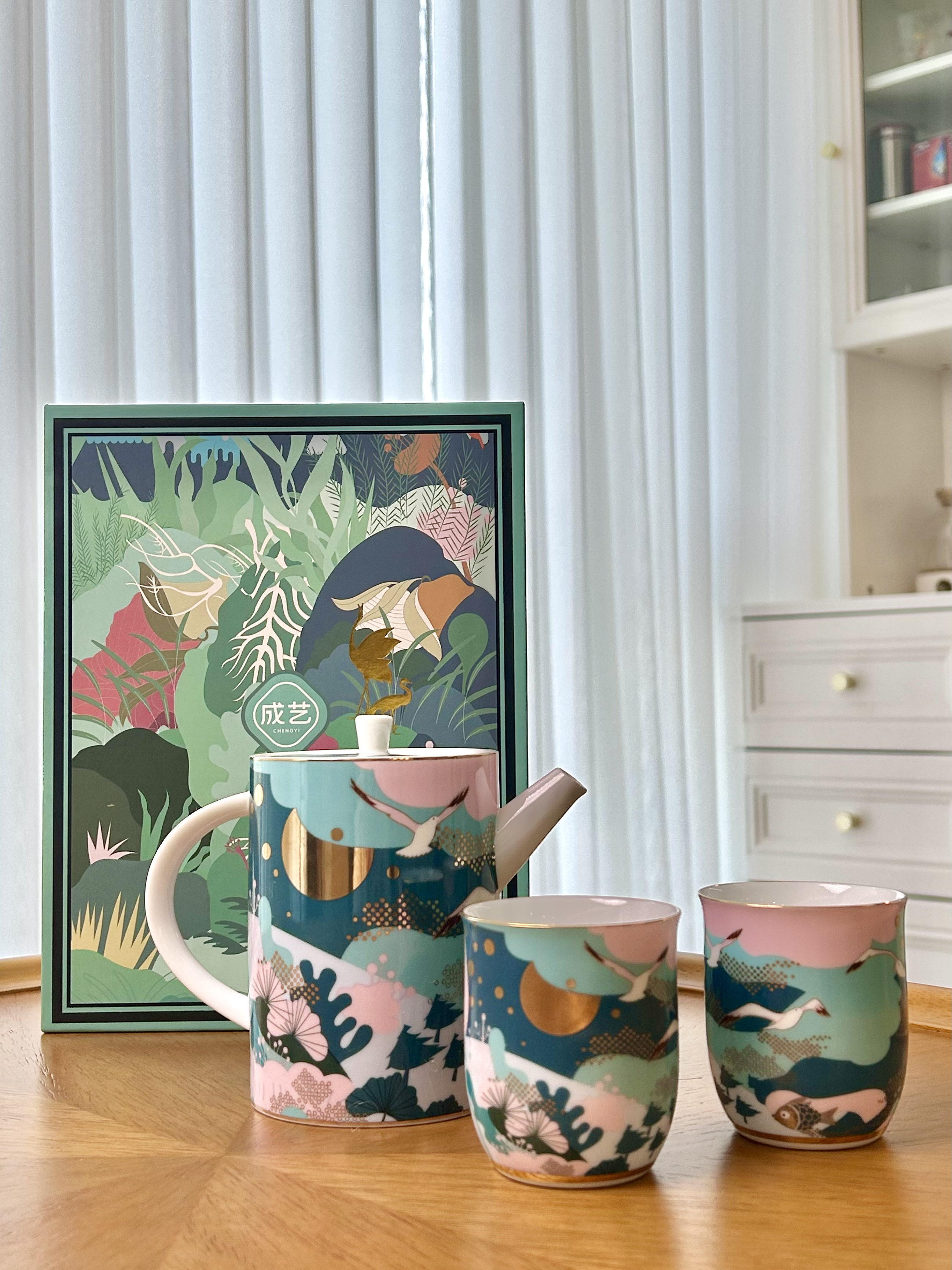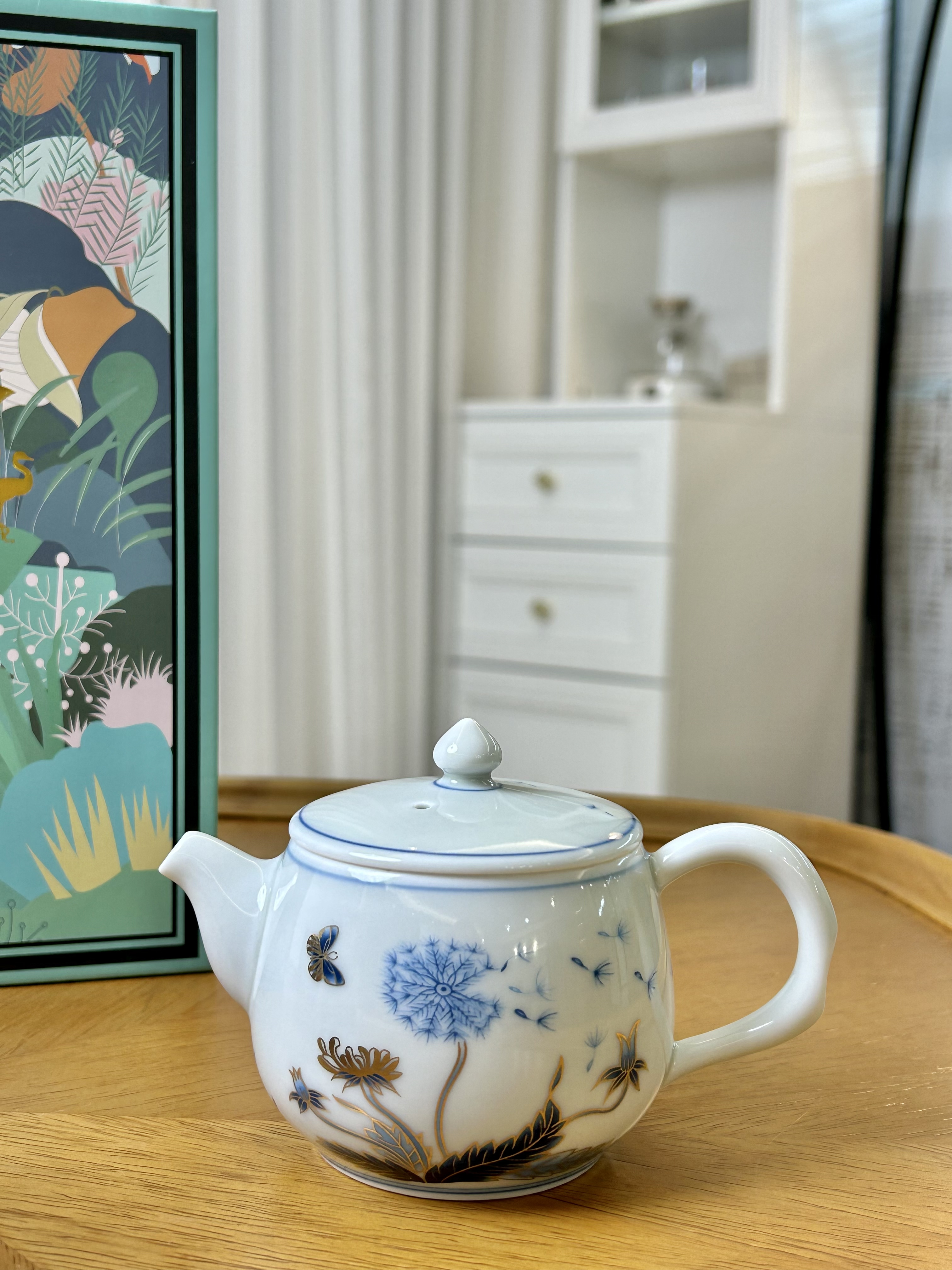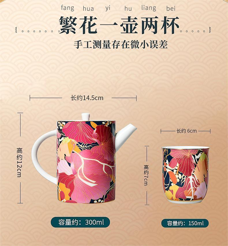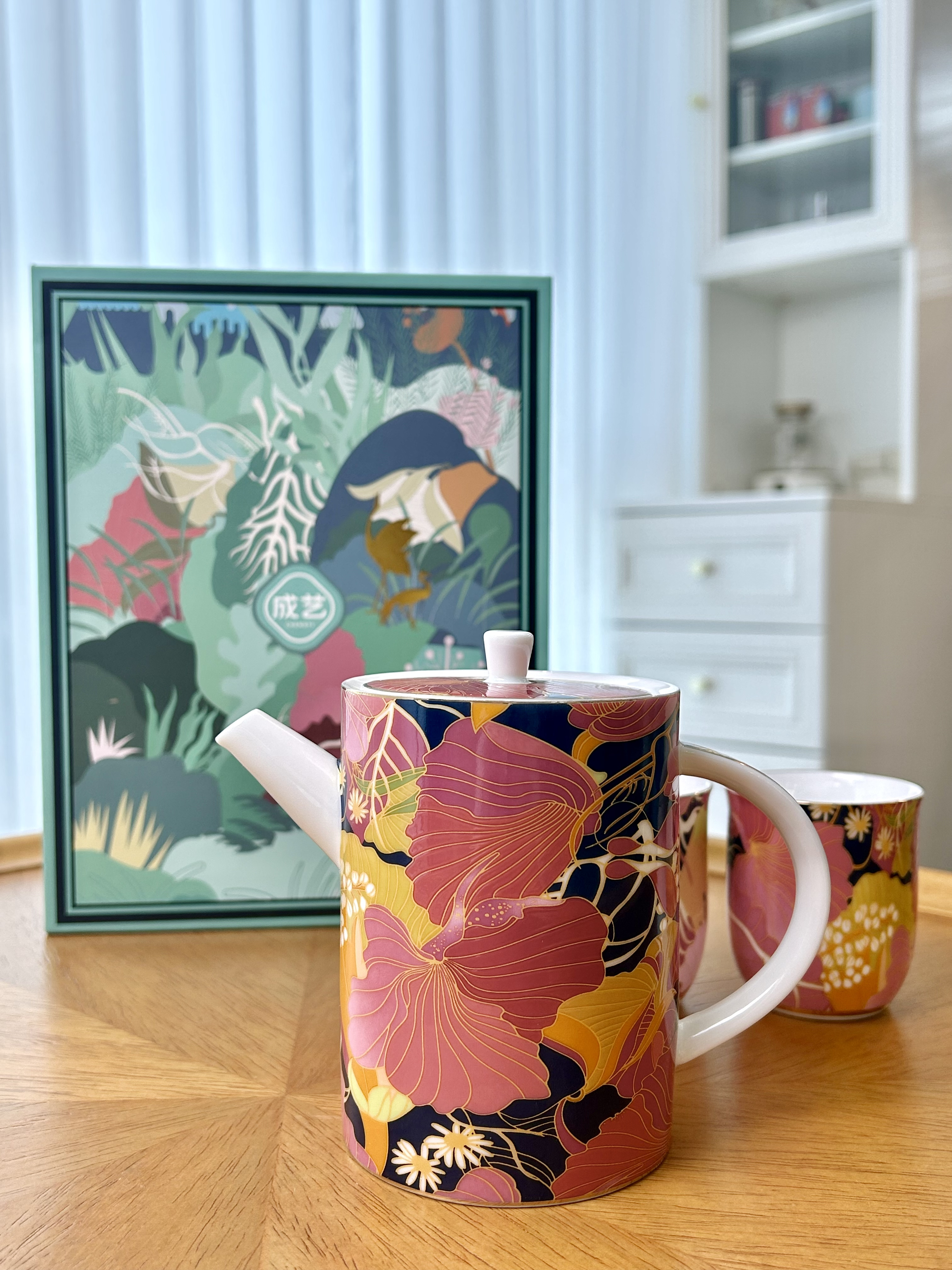 【成艺直身茶壶套装】高定工艺茶壶➕茶杯一整套!1300°C凝烧高岭土,瓷质温润有光泽 立体釉上烤花,图案栩栩如生,清晰可触 壶嘴短直,出水顺滑畅快不易漏 壶把握感舒适,多处描金细节低调奢华四种款式可选