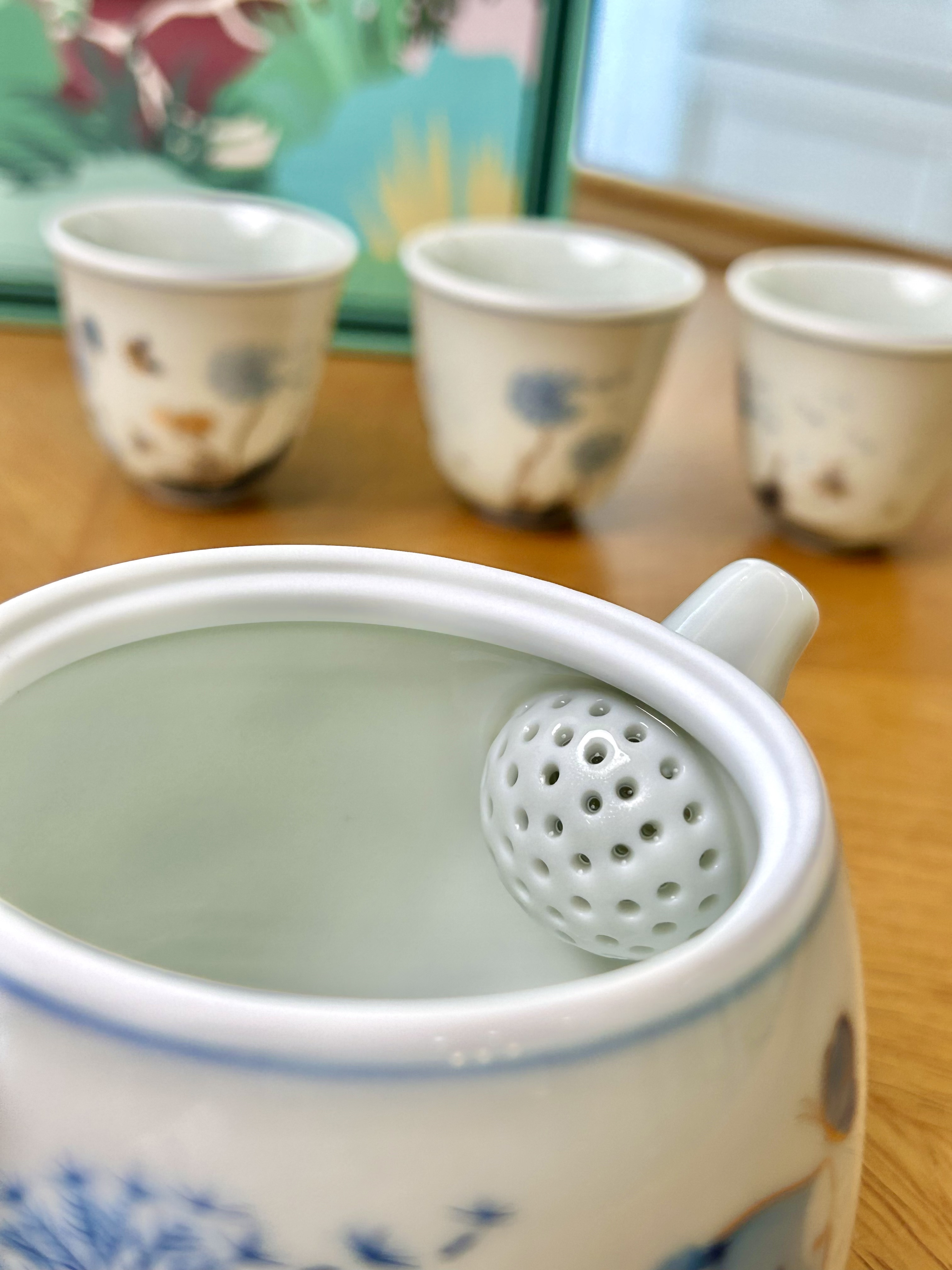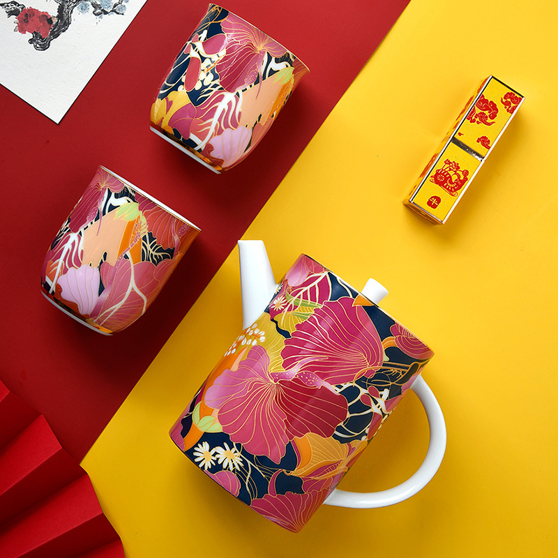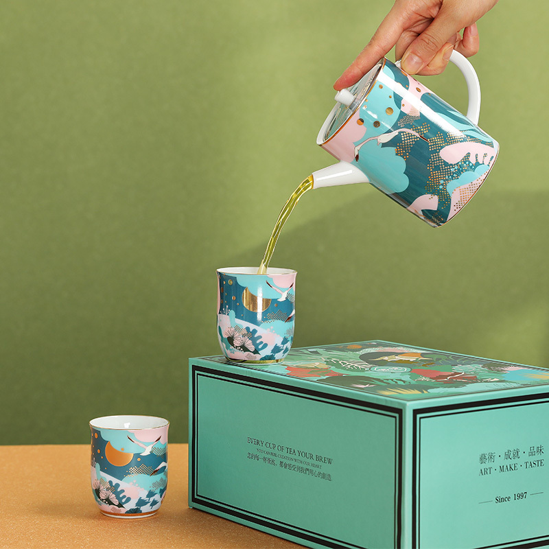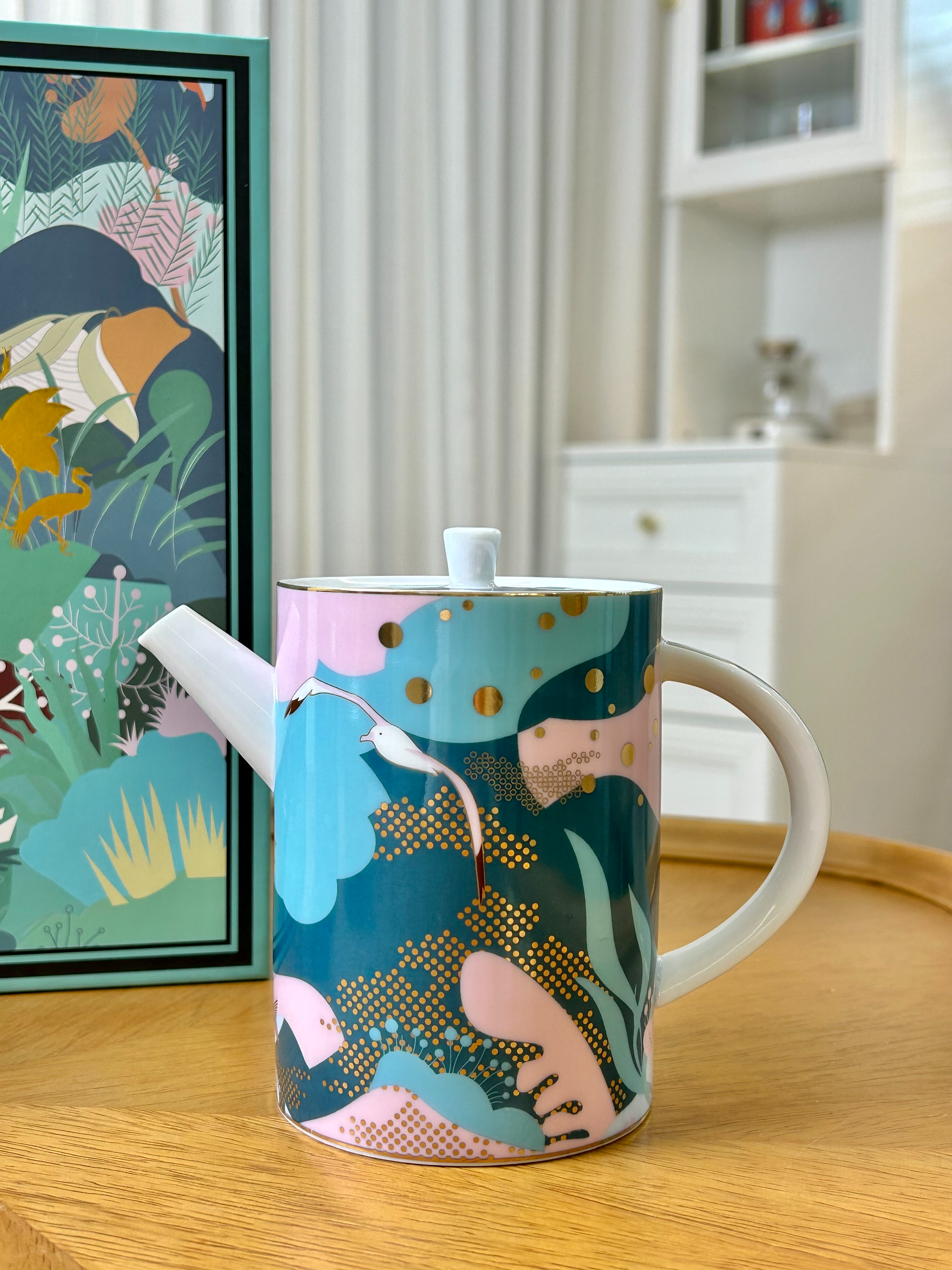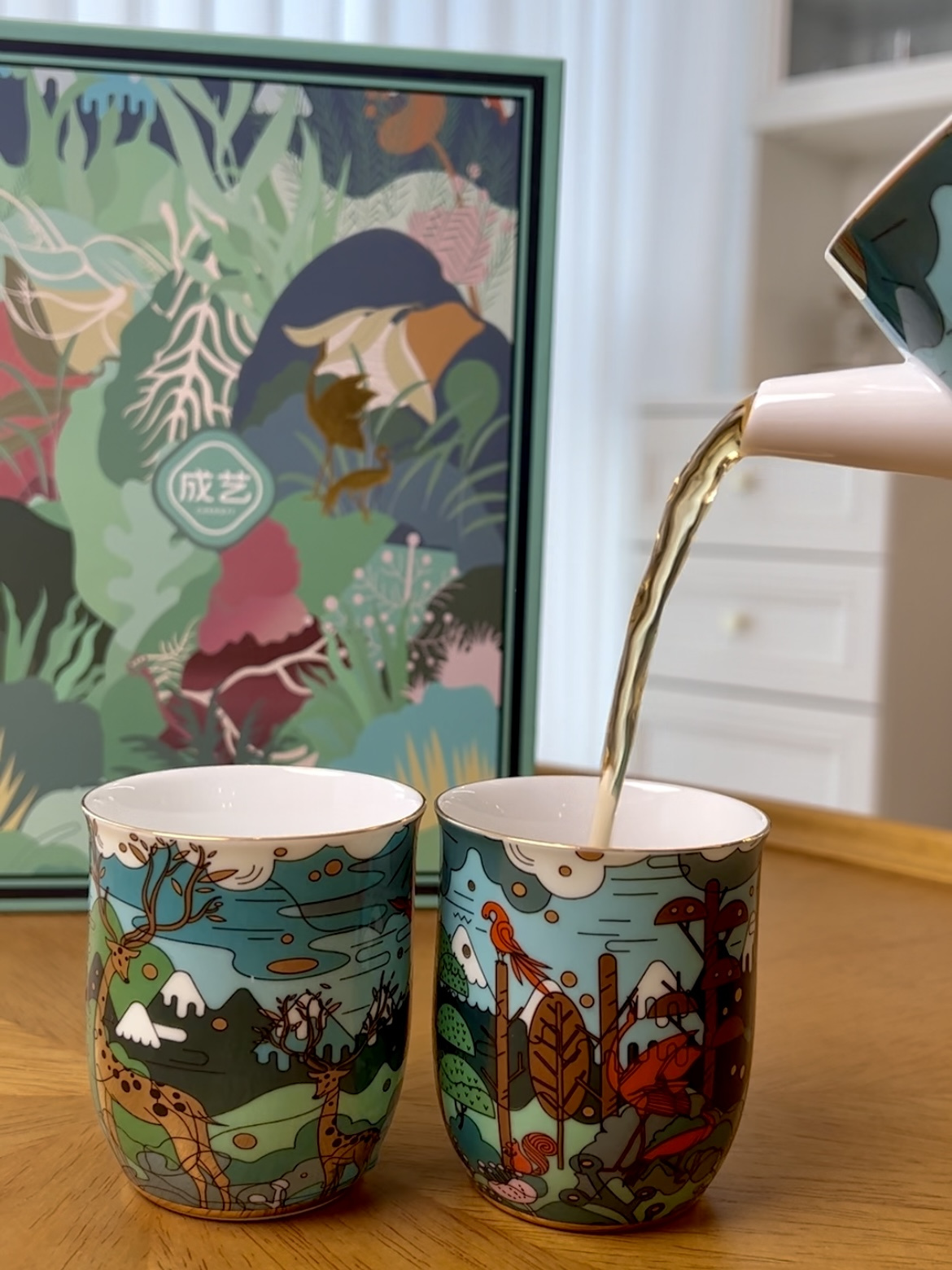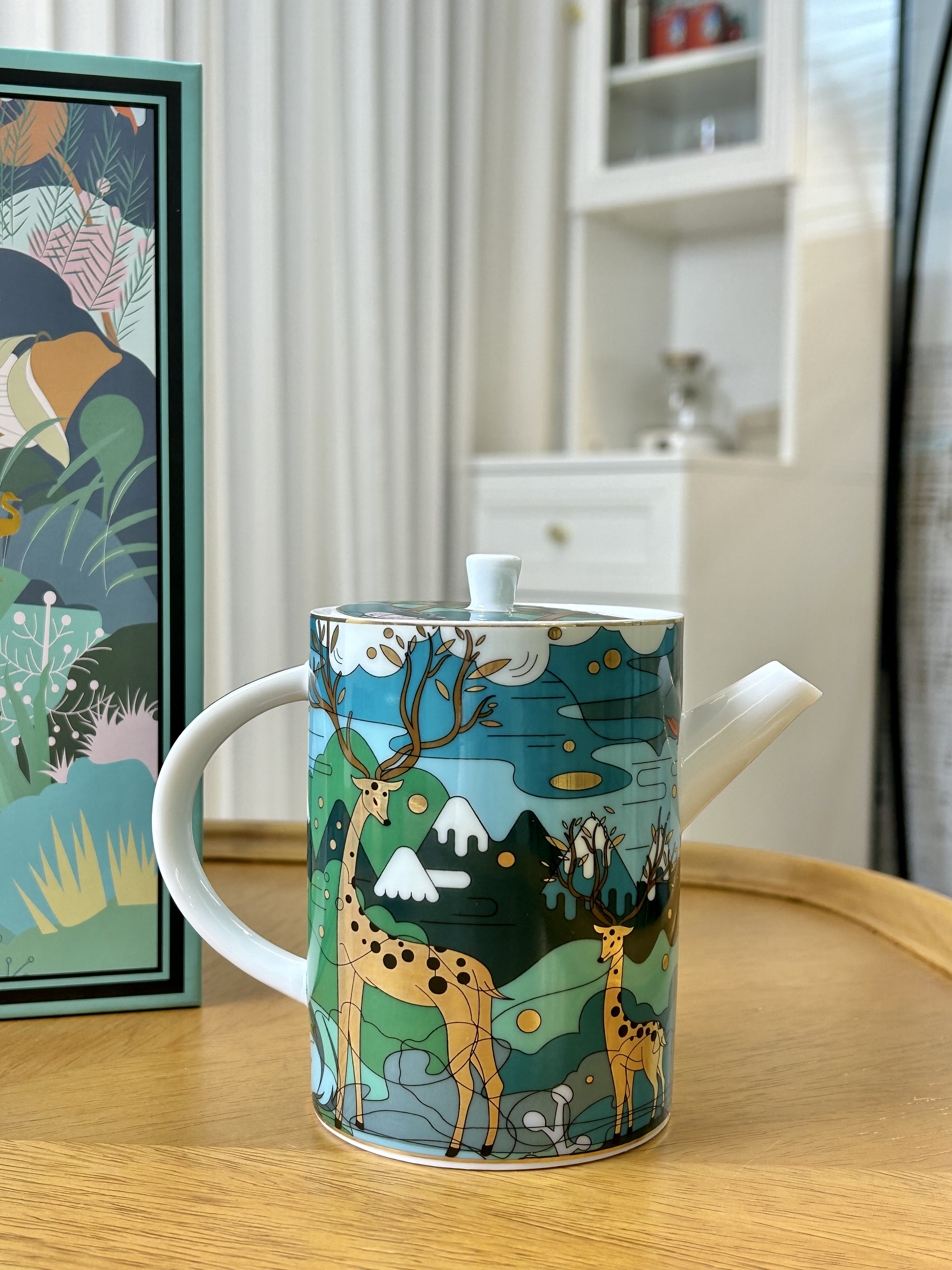 【成艺直身茶壶套装】高定工艺茶壶➕茶杯一整套!1300°C凝烧高岭土,瓷质温润有光泽 立体釉上烤花,图案栩栩如生,清晰可触 壶嘴短直,出水顺滑畅快不易漏 壶把握感舒适,多处描金细节低调奢华四种款式可选