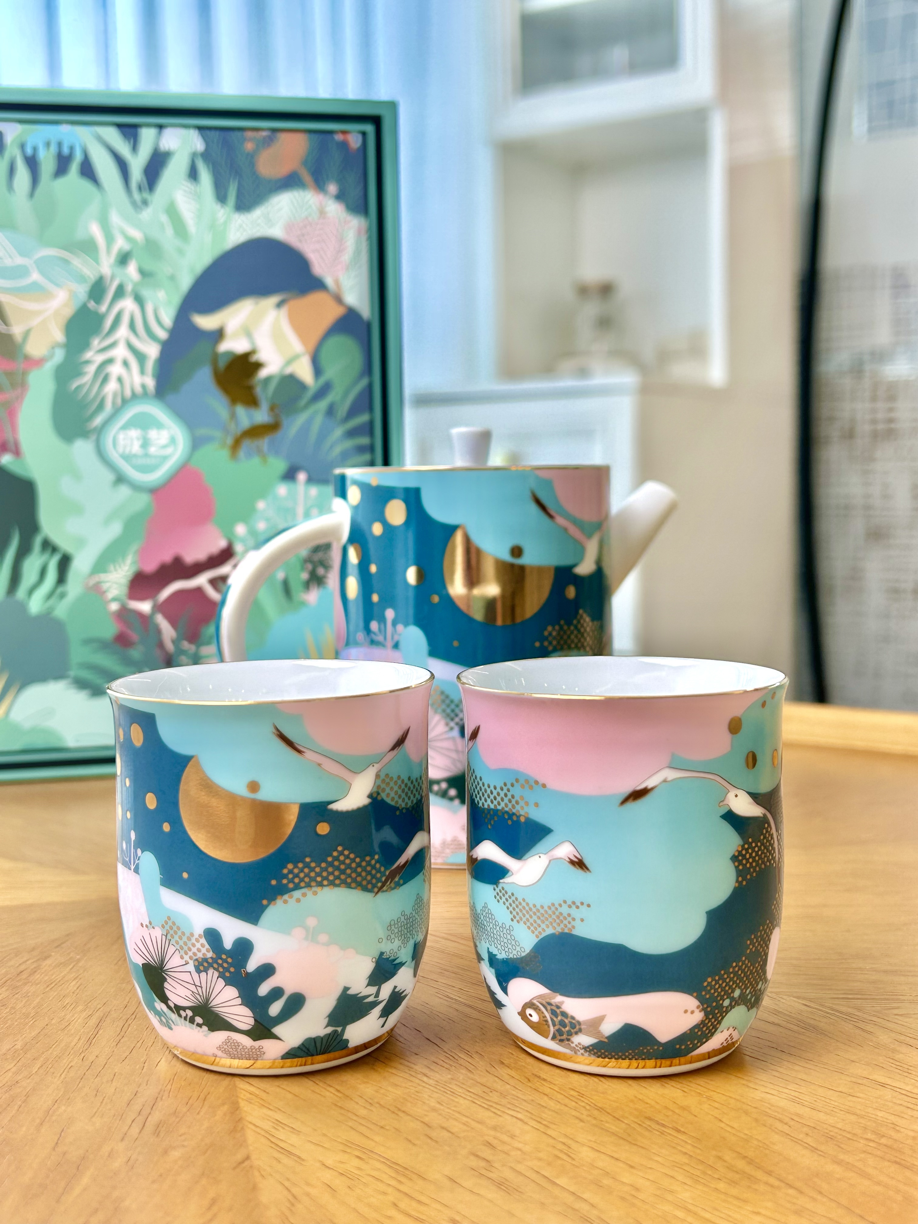 🔹蓝星直身套装 茶壶➕2个茶杯 蓝星雅韵和海洋元素的碰撞! 非常有创意!神秘感满满🔝 有种在外星球旅游的感觉 同享星空和海洋奇景! 每一只都是孤品的程度!必抢!