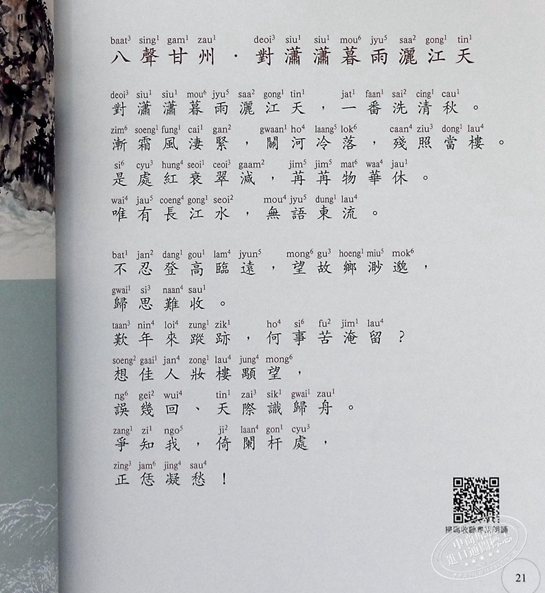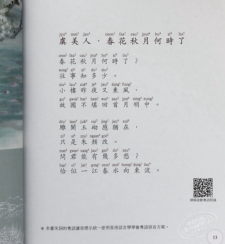 2,隨書附贈免費音頻,掃QR Code可以收聽粵語配樂朗誦宋词,優美動聽。