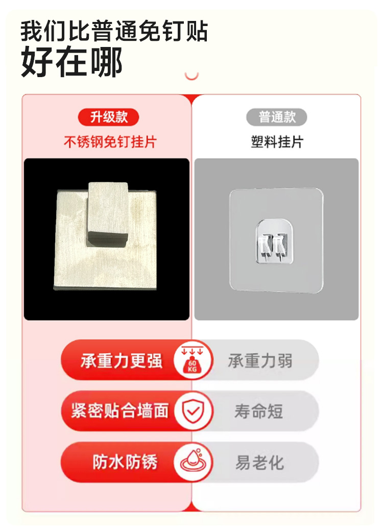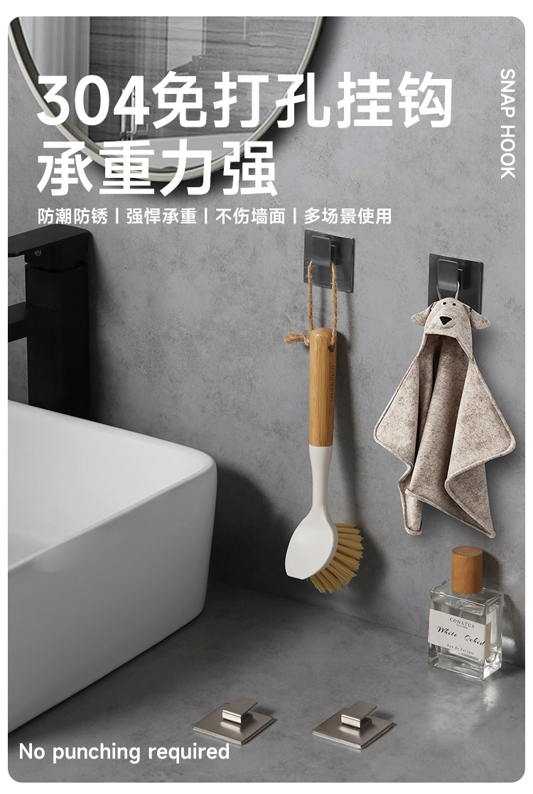 魔力无痕不锈钢置物架挂钩(3只装)
