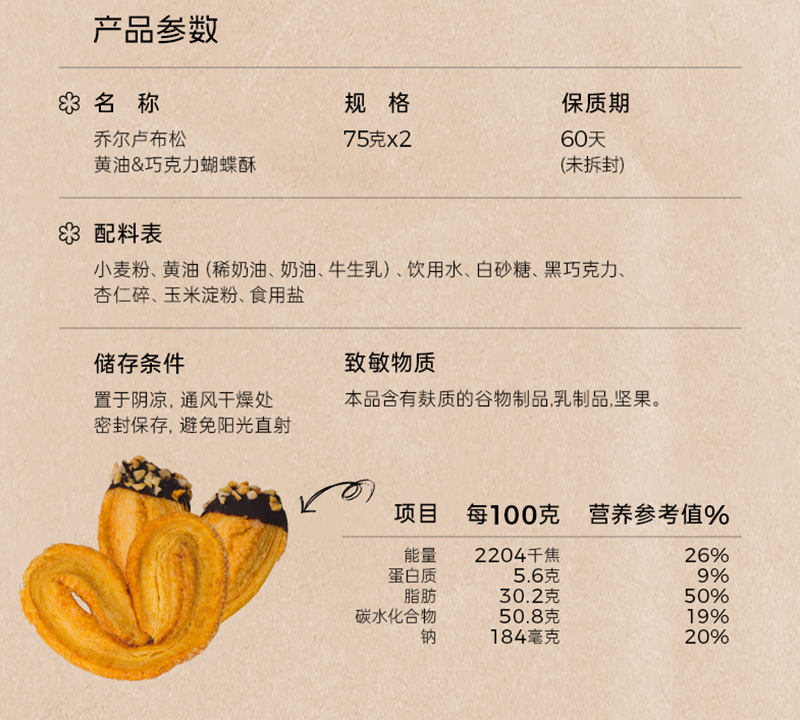 【女神节】【发出后不支持拦截退货】节日礼盒 乔尔卢布松 黄油巧克力蝴蝶酥 75g/75g*2