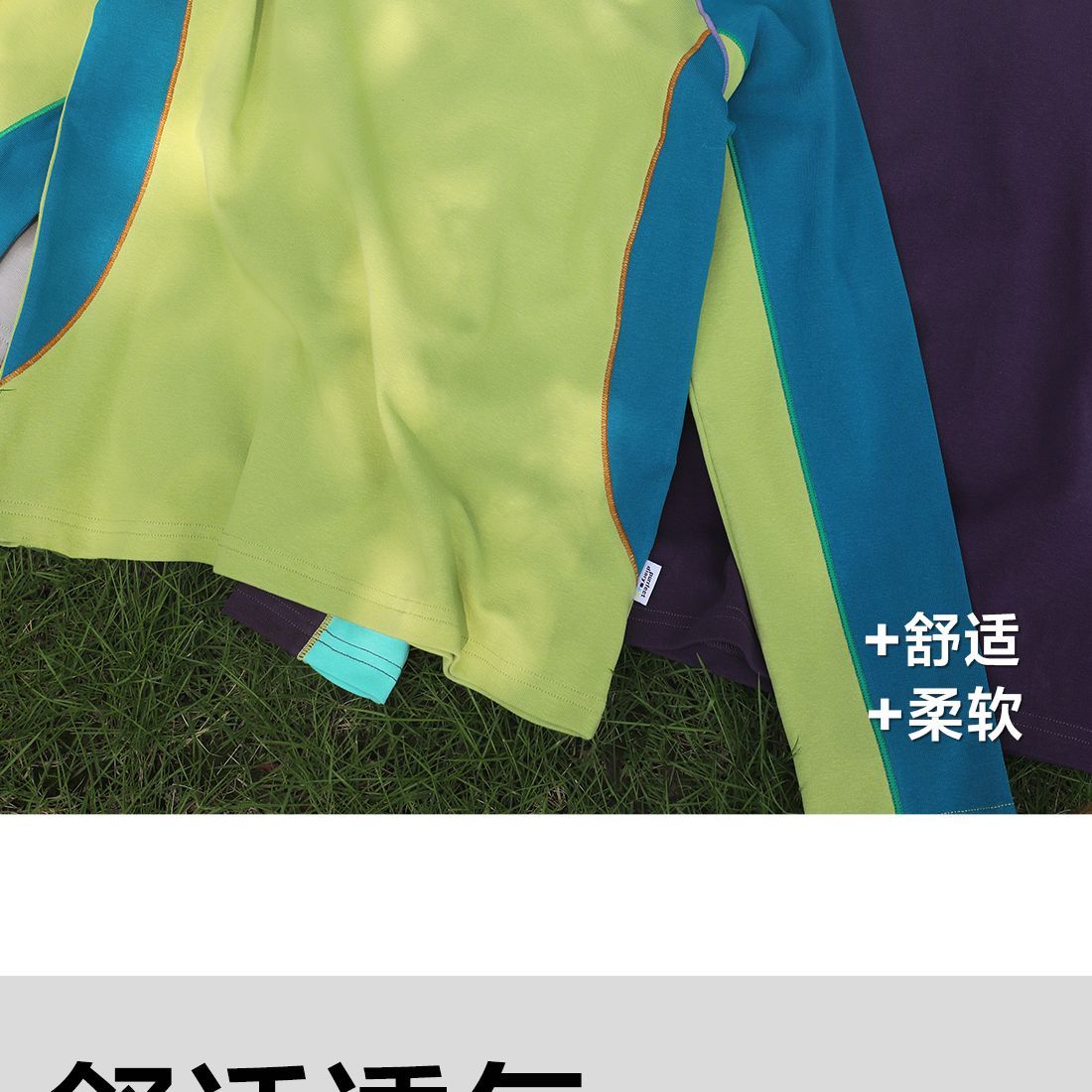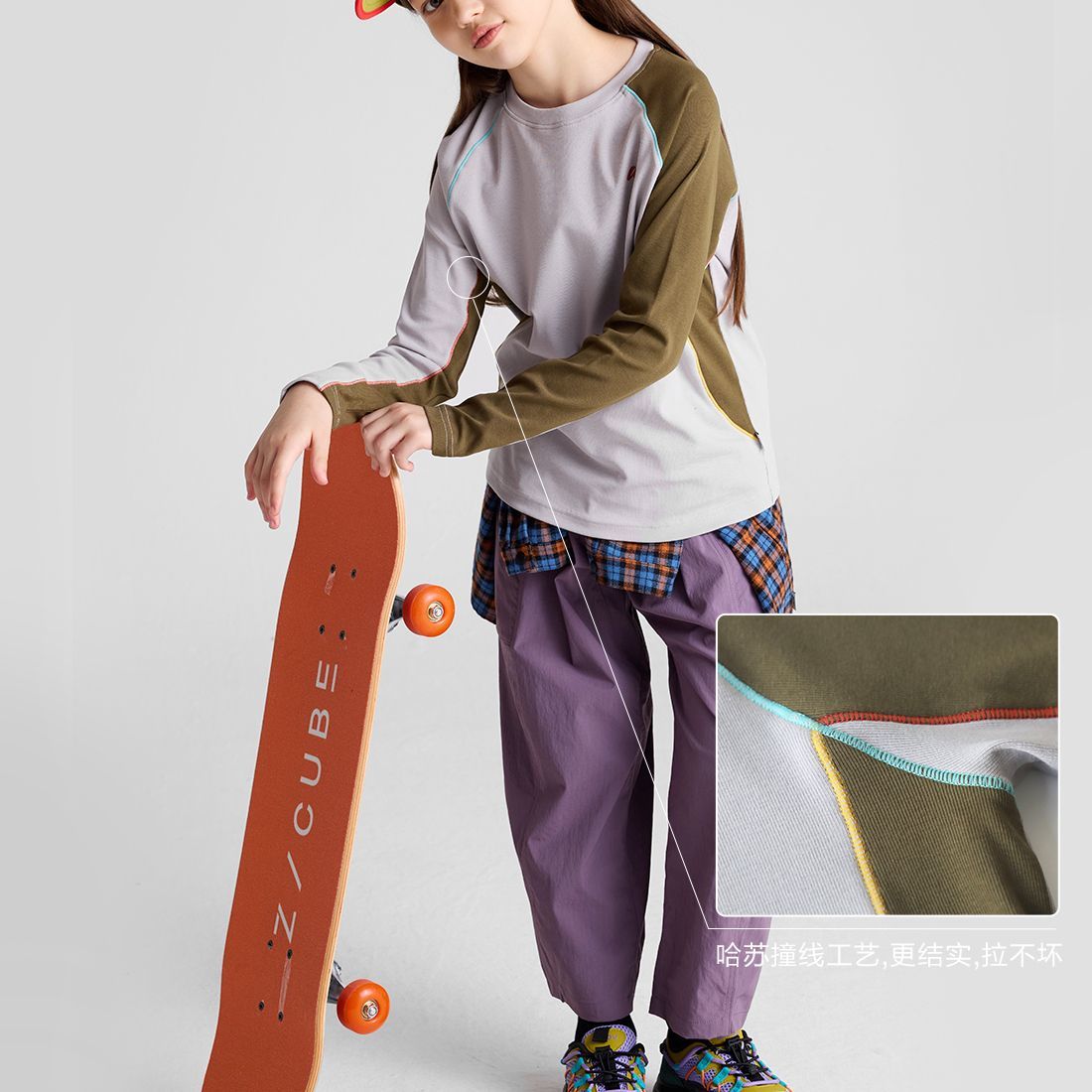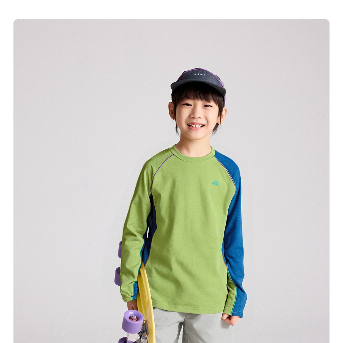 【咕噜日记】儿童拼色弹力T恤2025秋季女童圆领长袖男童透气上衣新款PQTX2504