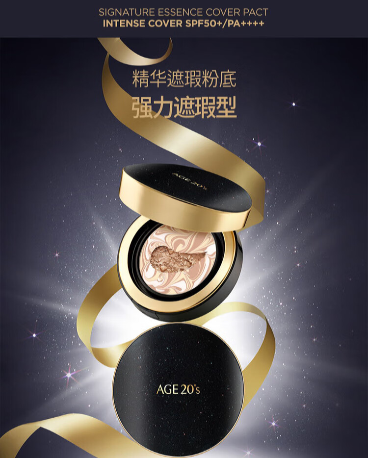 爱敬爱纪二十之精华遮瑕奇迹持妆粉底21号亮肤色SPF50+PA+++(三色拉花黑色)/120199 象牙白适合正常肤色