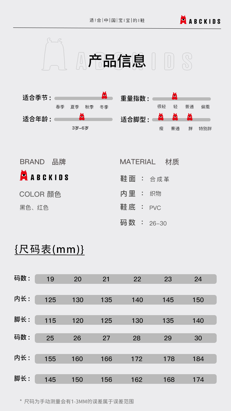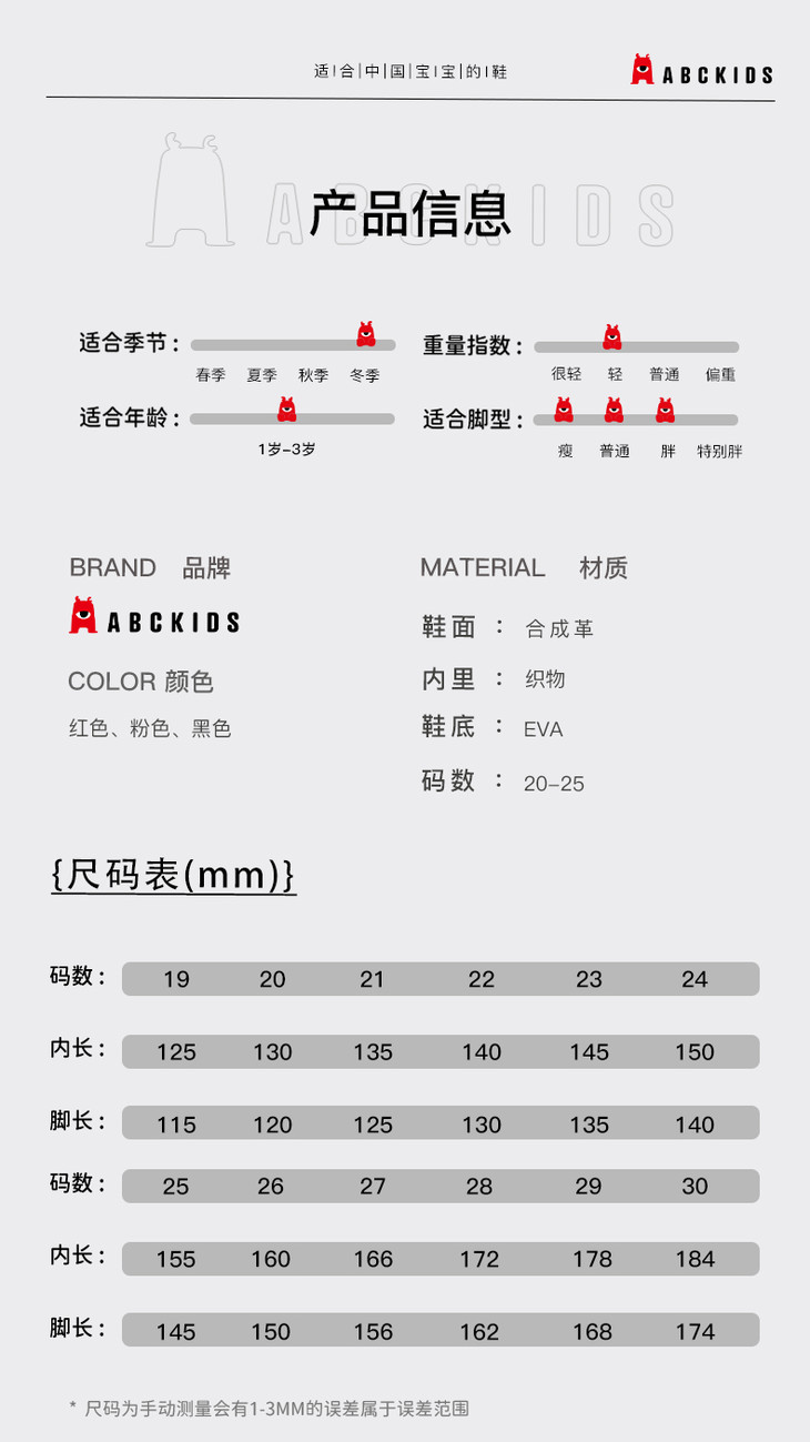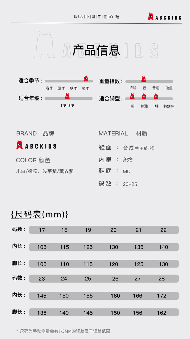 | 尺码: | 20-25详见尺码表 | |