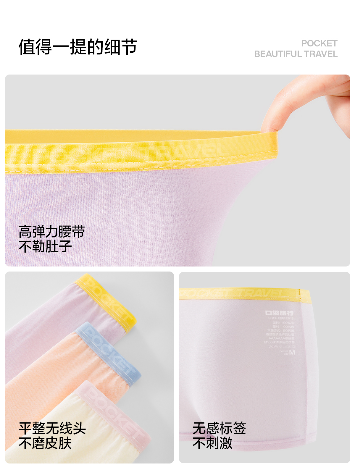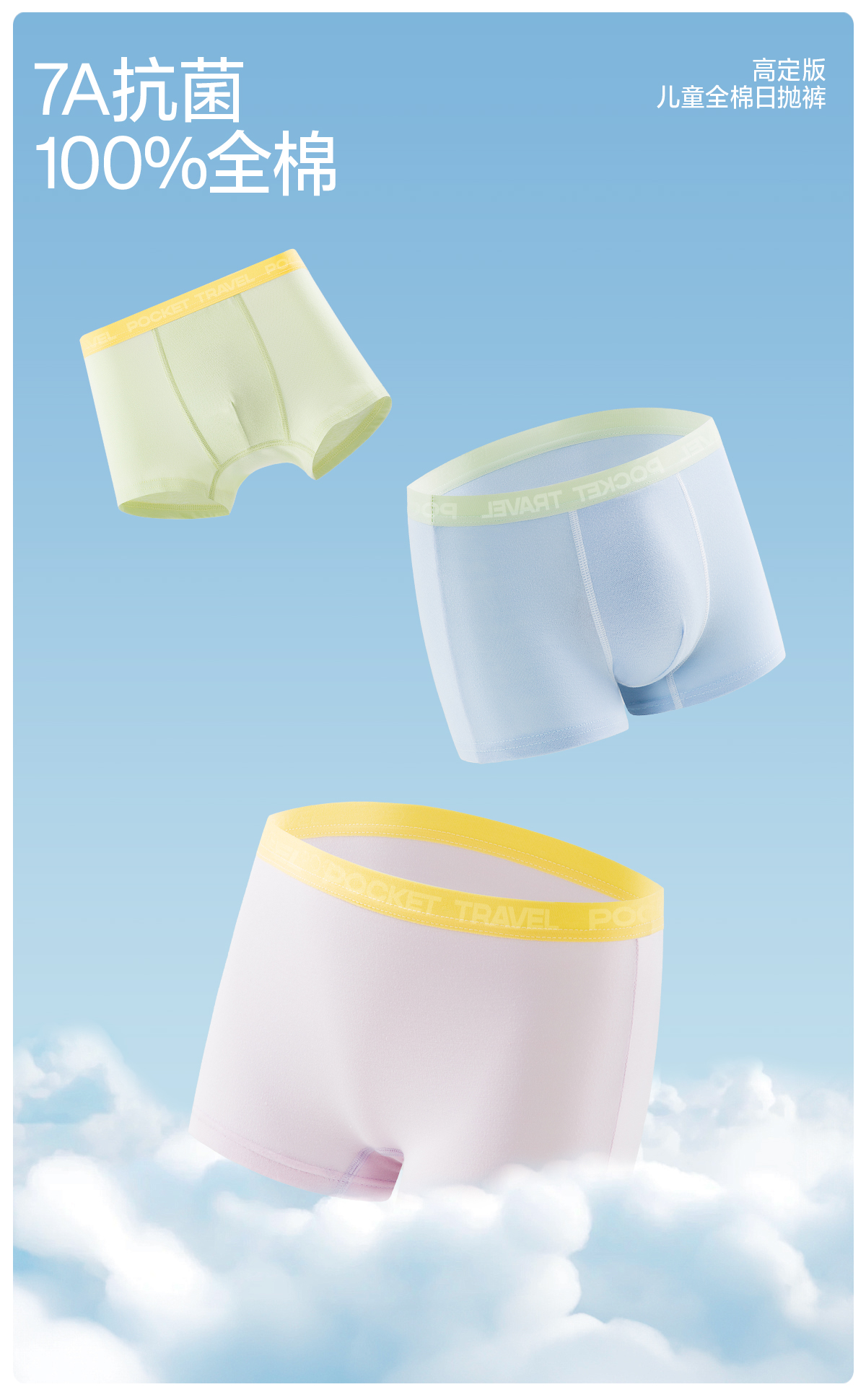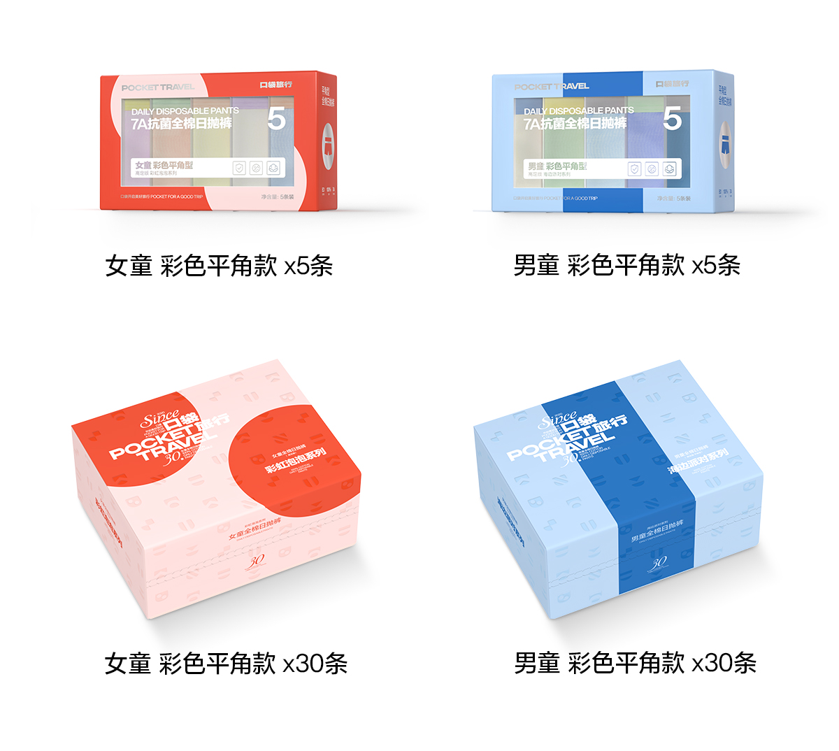 口袋旅行 高定款一次性儿童平角内裤男女童日抛免洗纯棉透气一次性内裤
