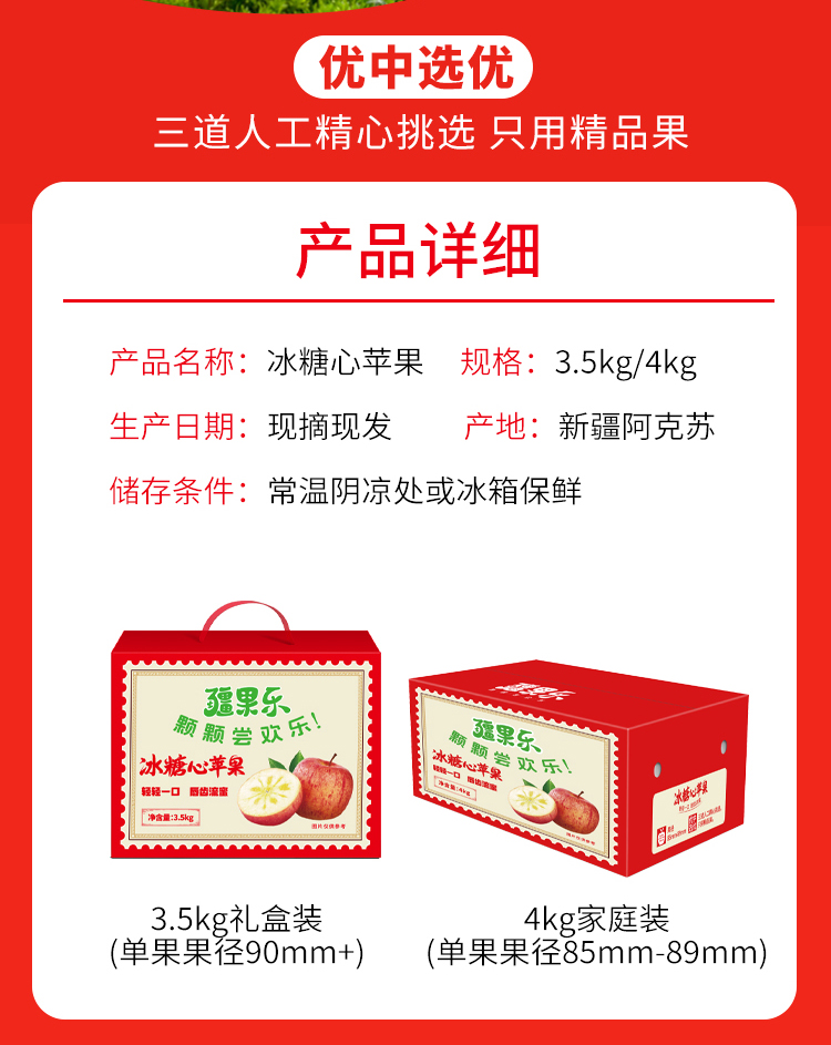 【疆果乐 新鲜水果】阿克苏冰糖心苹果(顺丰陆运,接单后48小时内发出,出单号后5-7天到货)