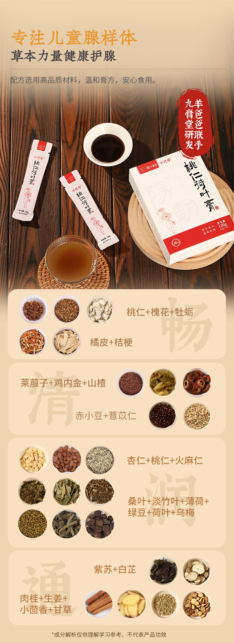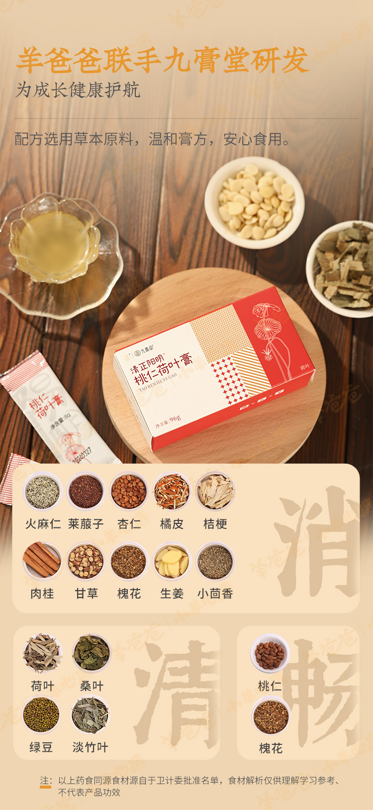 ³【羊爸爸孩子桃仁荷叶膏】8g*12袋/盒 桃仁+荷叶+火麻仁+莱菔子+杏仁+桑叶+桔梗 XN03-CRMM-BA