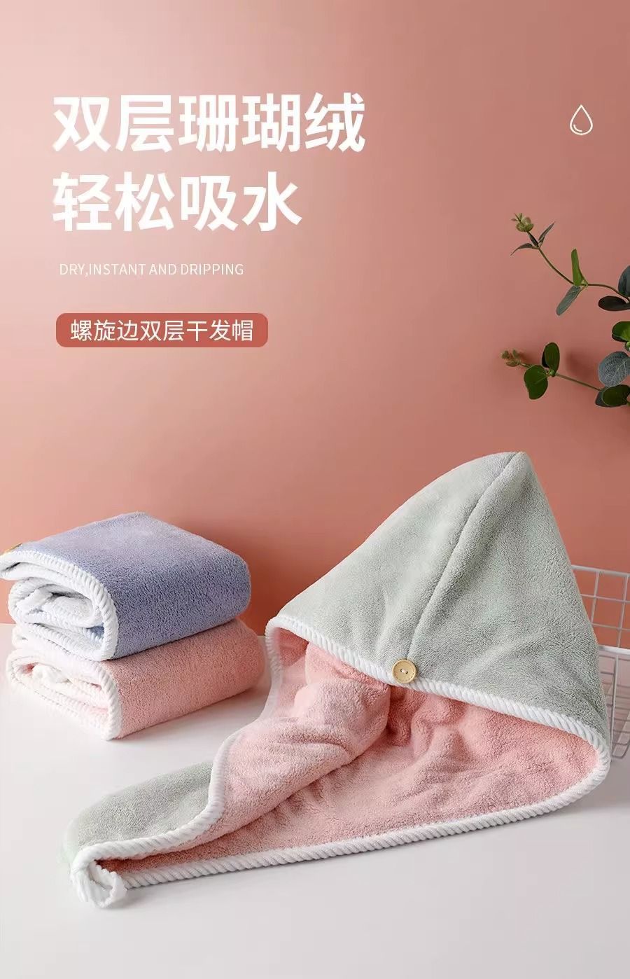 【螺旋边双层干发帽】干发帽速干女双层加厚超强吸水包头巾擦洗头发毛巾特厚款干发浴帽。ry