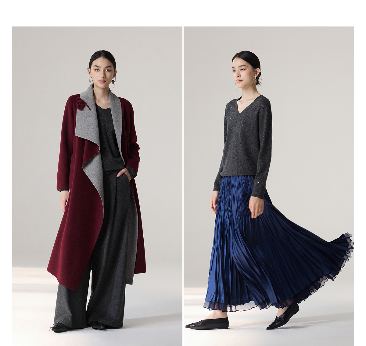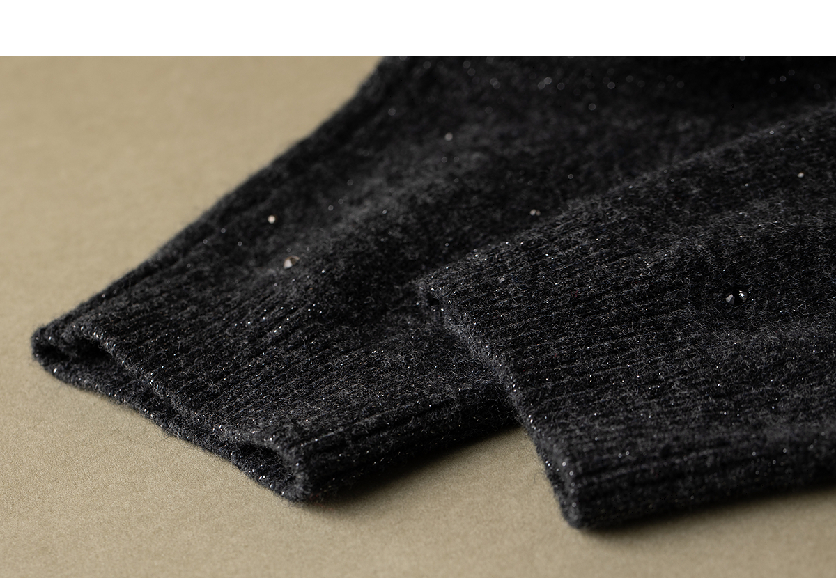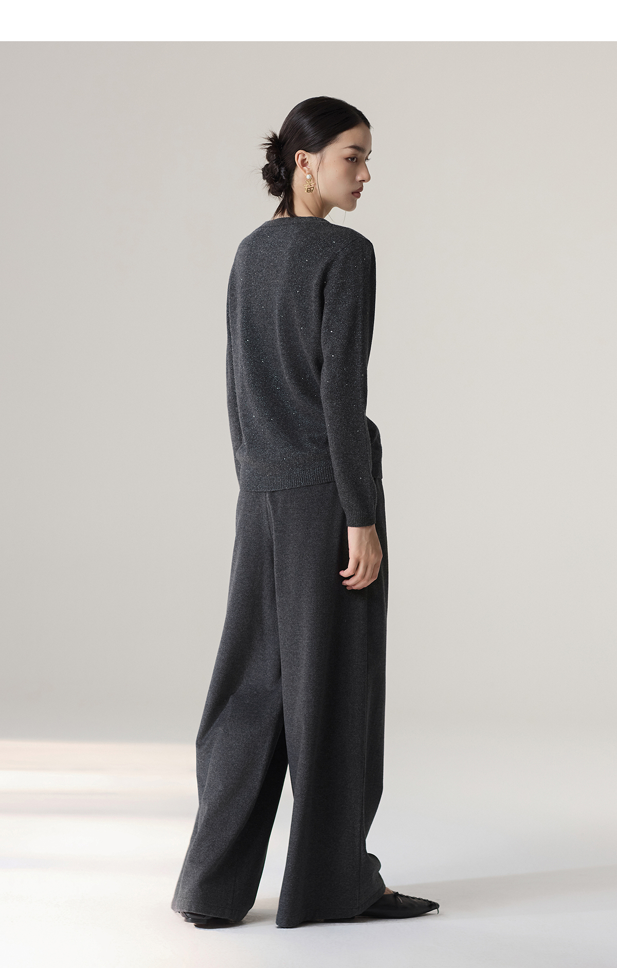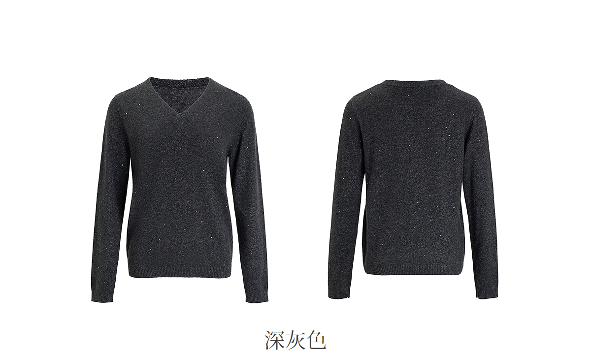 【林栖设计小店】V领绵羊毛织上衣优雅百搭多色珠片显瘦2025秋冬新款长袖毛衣1954029