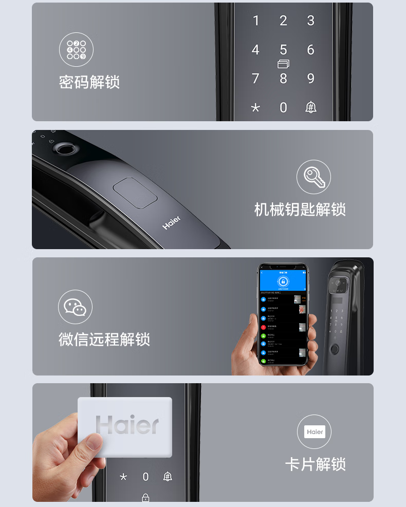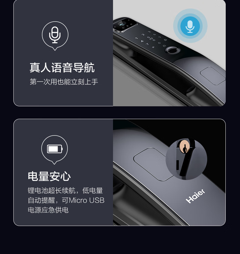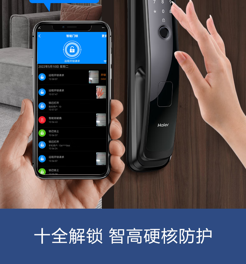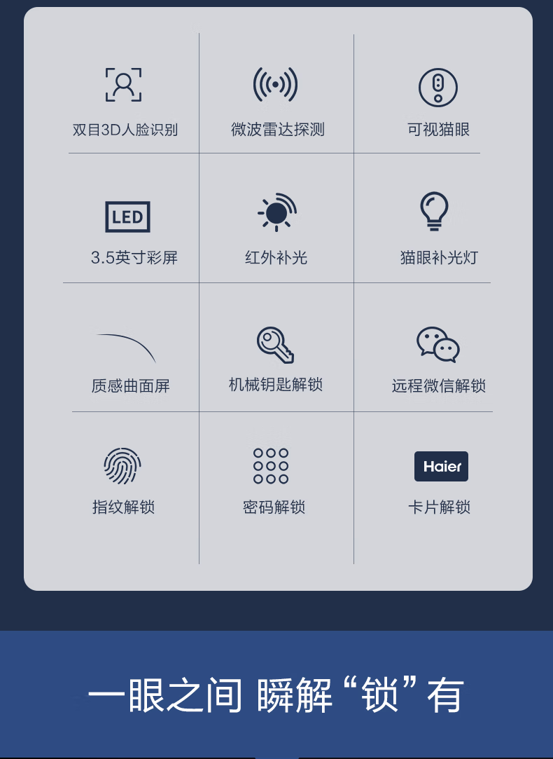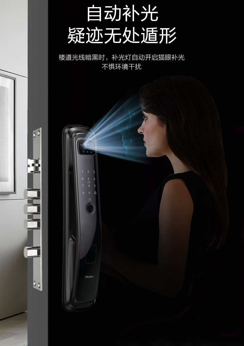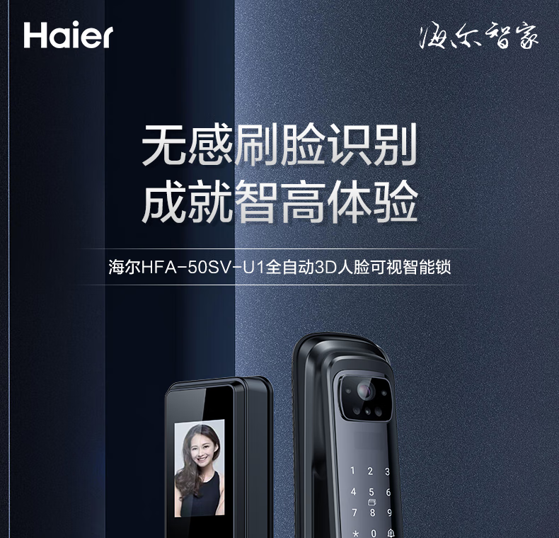 海尔 (Haier)HFA-50SV-U1指纹锁3D人脸识别智能锁入户门防盗门锁全自动
