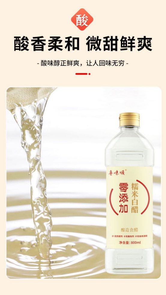 🌈 鲁味顺♥️【0添加·糯米腌制凉拌白醋】,800ml大满足,🌸 以糯米为原料粮食酿造,遵循传统工艺。 ✅ 酸香自然,清爽适口,💞适合炒、拌、腌、泡等多样烹饪场景 。