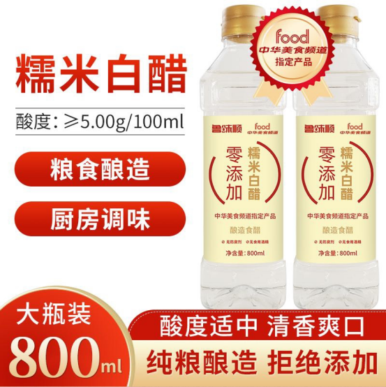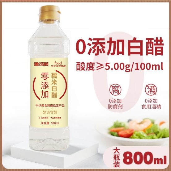 给家人最安心的调味 追求健康调味的宝子看过来!这瓶白醋“0添加防腐剂、0添加食用酒精” ,配料表干净到飞起,只用粮食酿好醋。 800ml大容量,日常调味、清洁去污都能用,厨房备上它,吃得安心,用得也顺手~