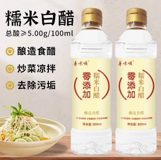 厨房必备的零添加糯米白醋 厨房调味想找“零负担”好醋?鲁味顺糯米白醋来啦!总酸≥5.00g/100ml , 妥妥的酿造食醋,炒菜凉拌时淋上一点,酸香瞬间点亮菜品~ 关键还能用来去除污垢,清洁、调味“两手抓” ,800ml大瓶装超实在,家庭囤货选它准没错!