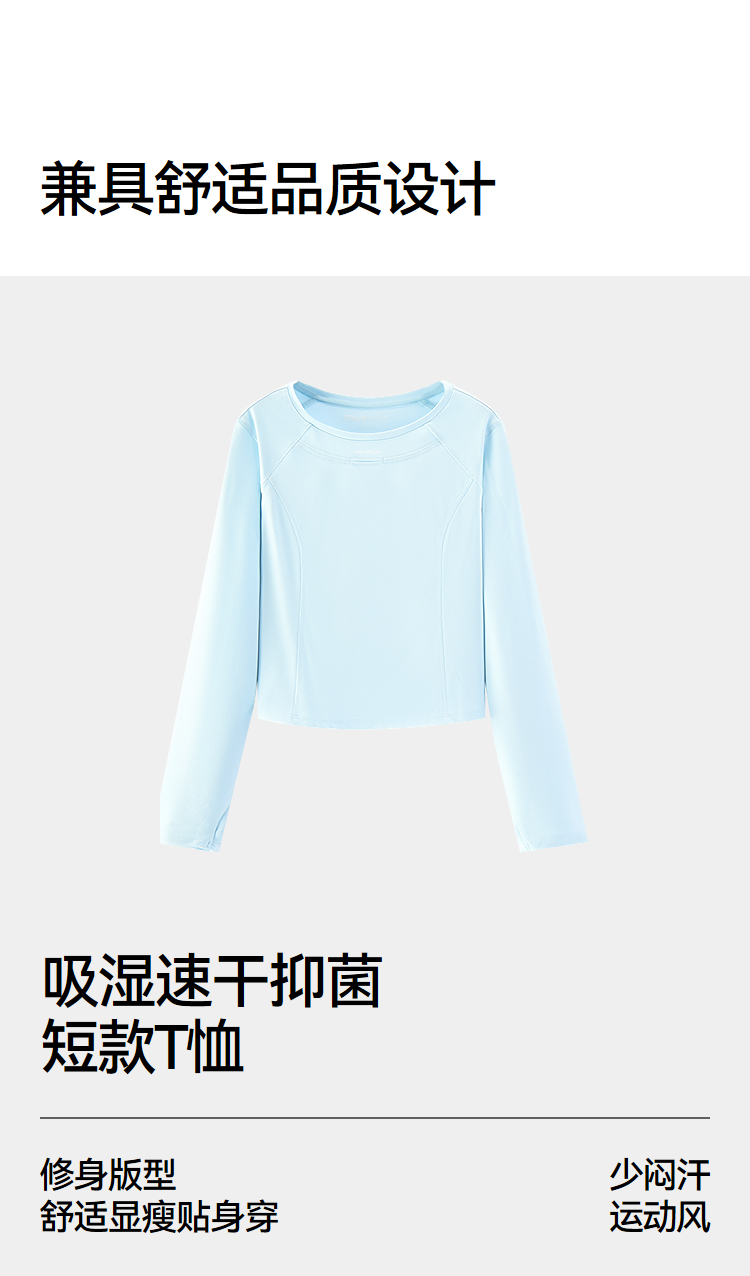 [商场同款]森马长袖T恤女短款抑菌2025秋新款吸湿速干衣服运动风