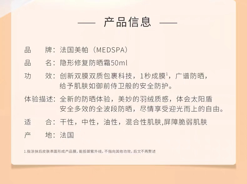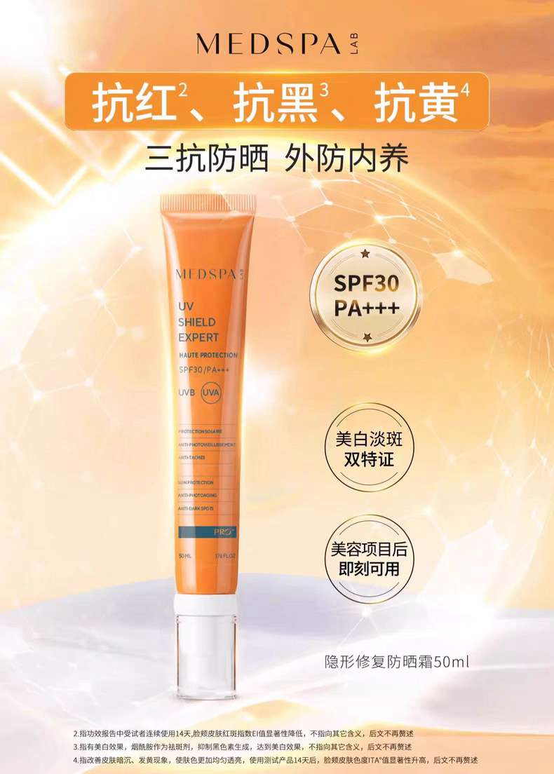 法国 MedSPA美帕 隐形修护三合一防紫外线美白防晒霜 SPF30/PA+++ 50ml (免卸妆)