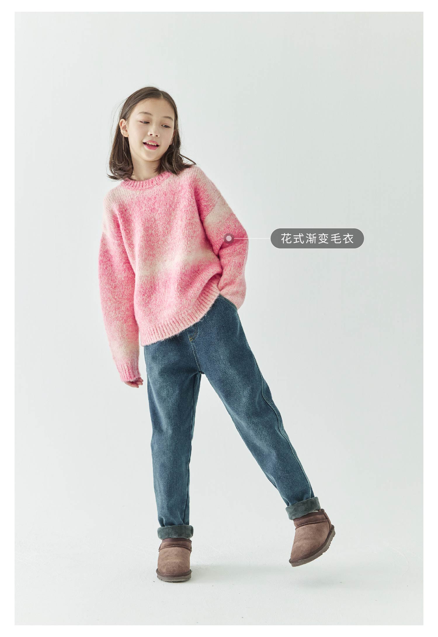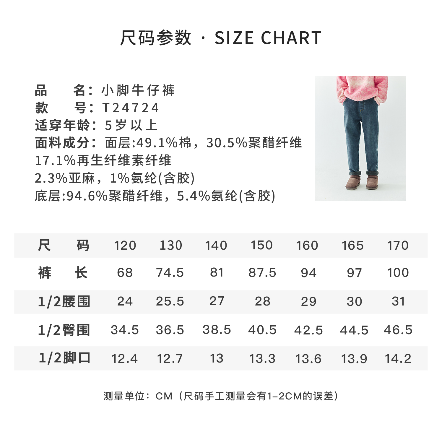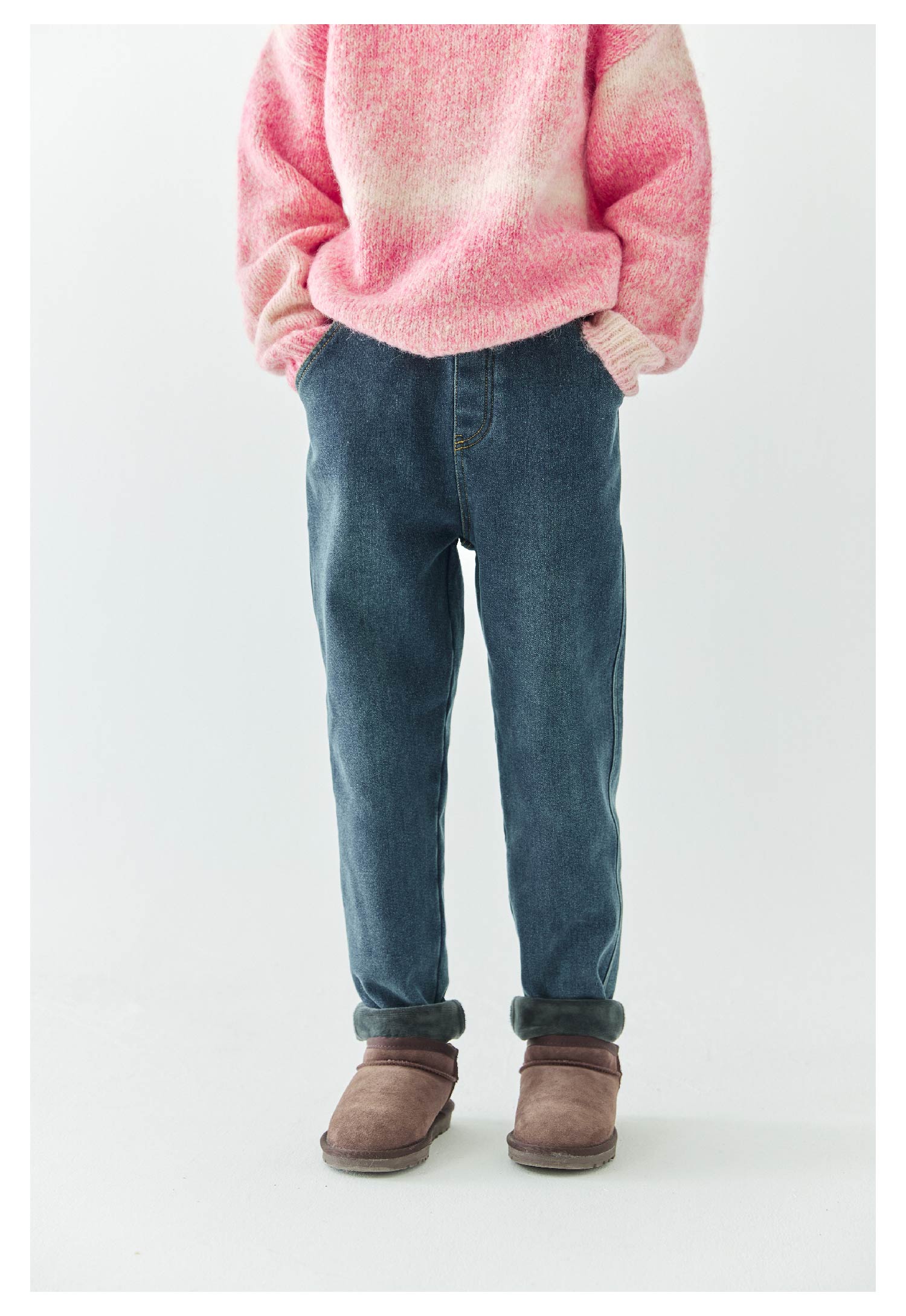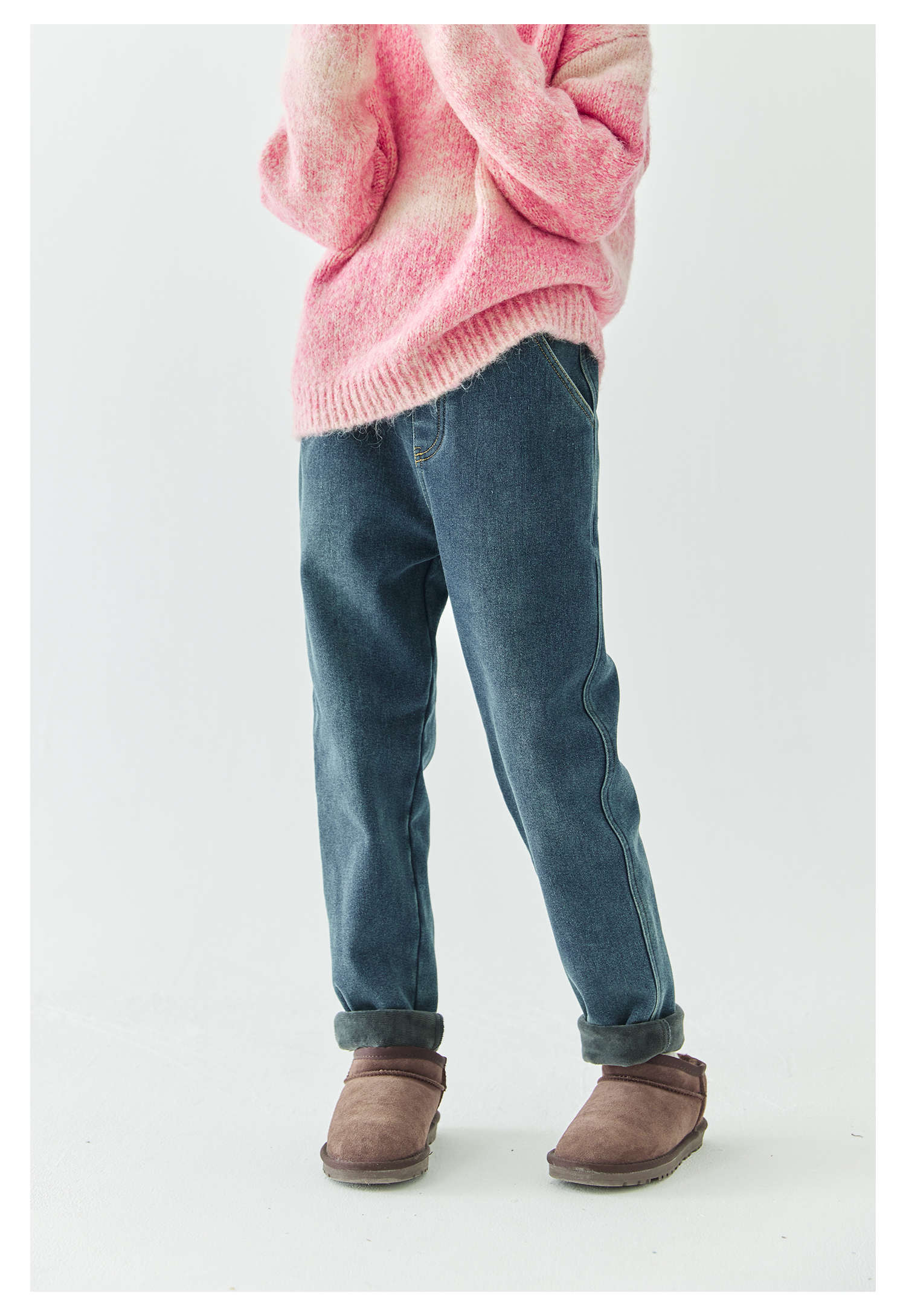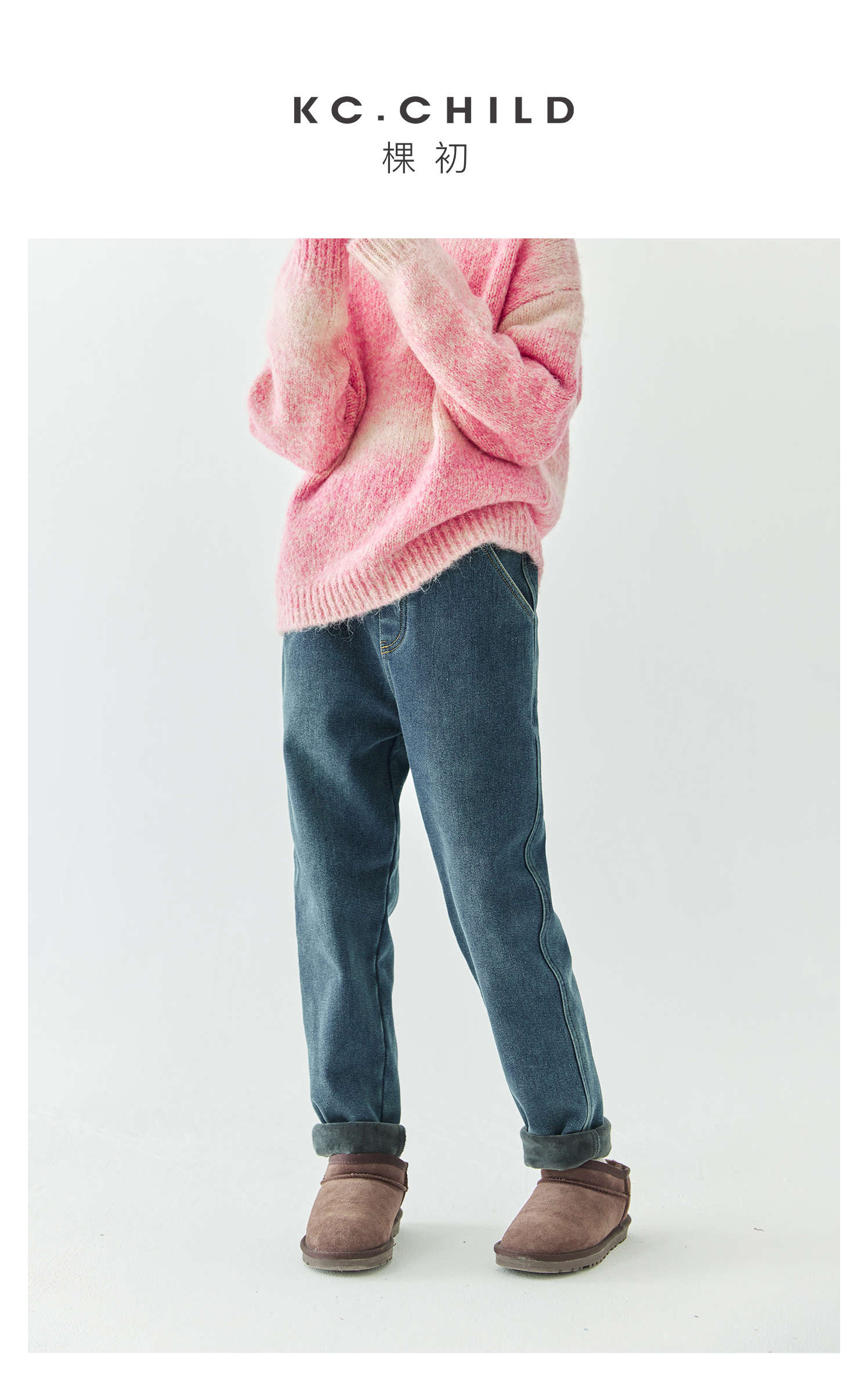 棵初2024年冬季新款儿童弹力加绒小脚牛仔裤女童水洗磨白复古长裤