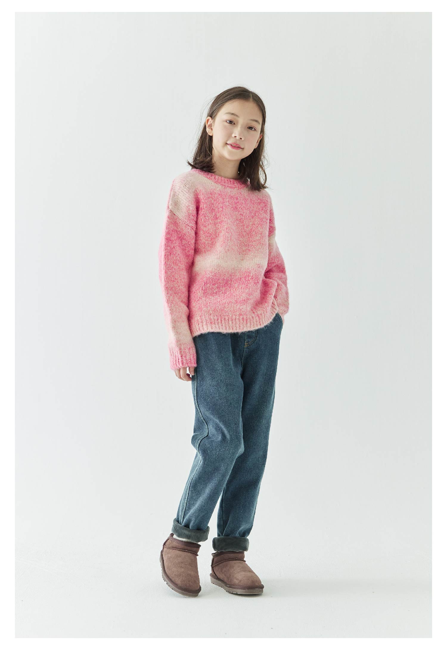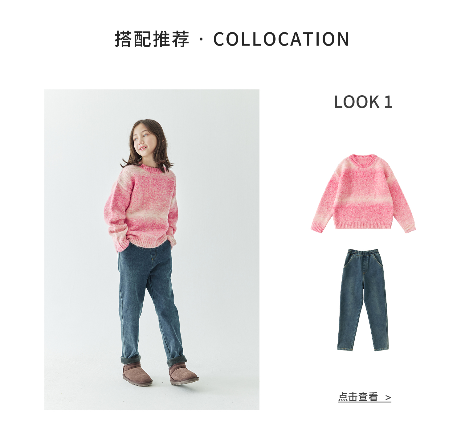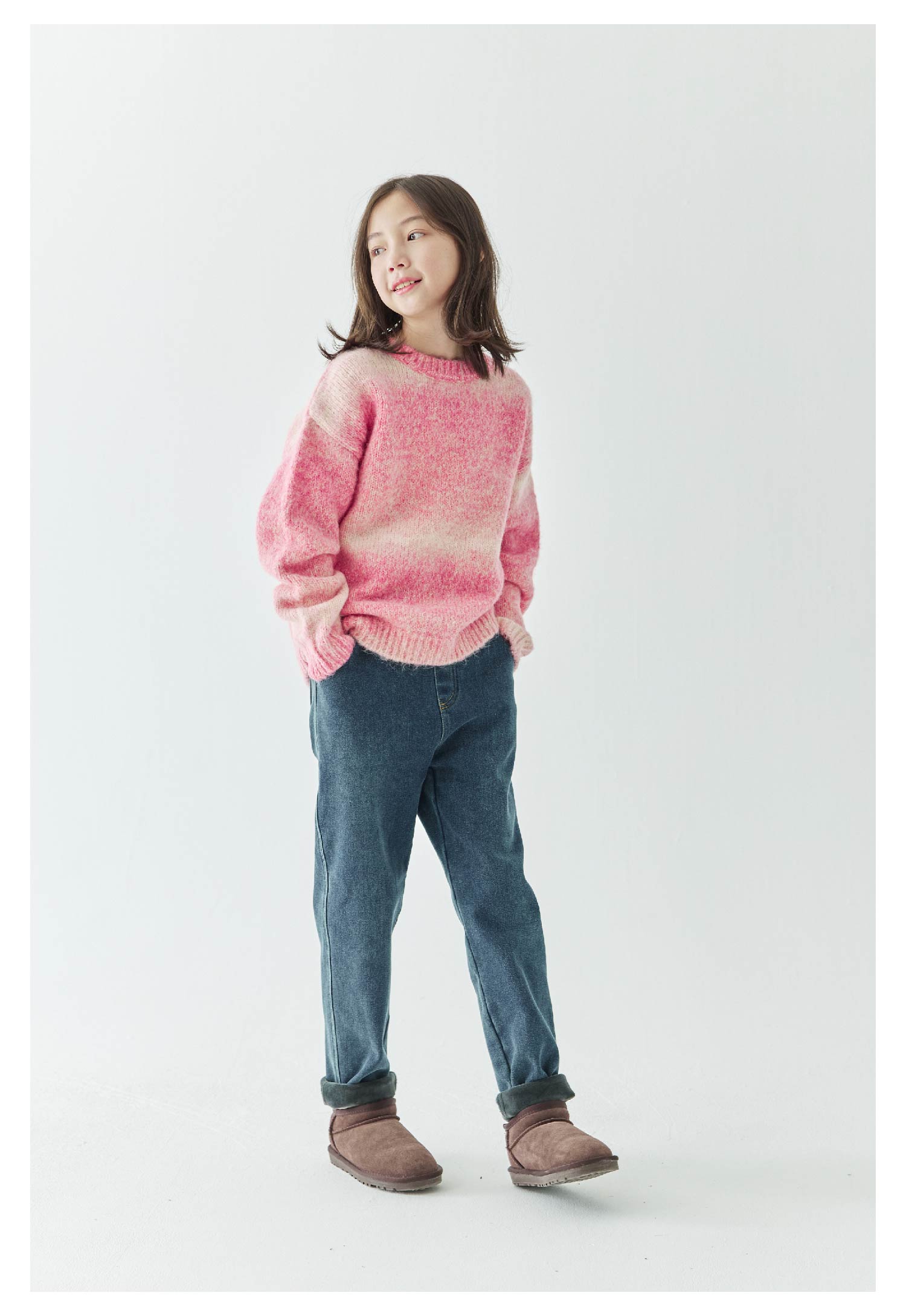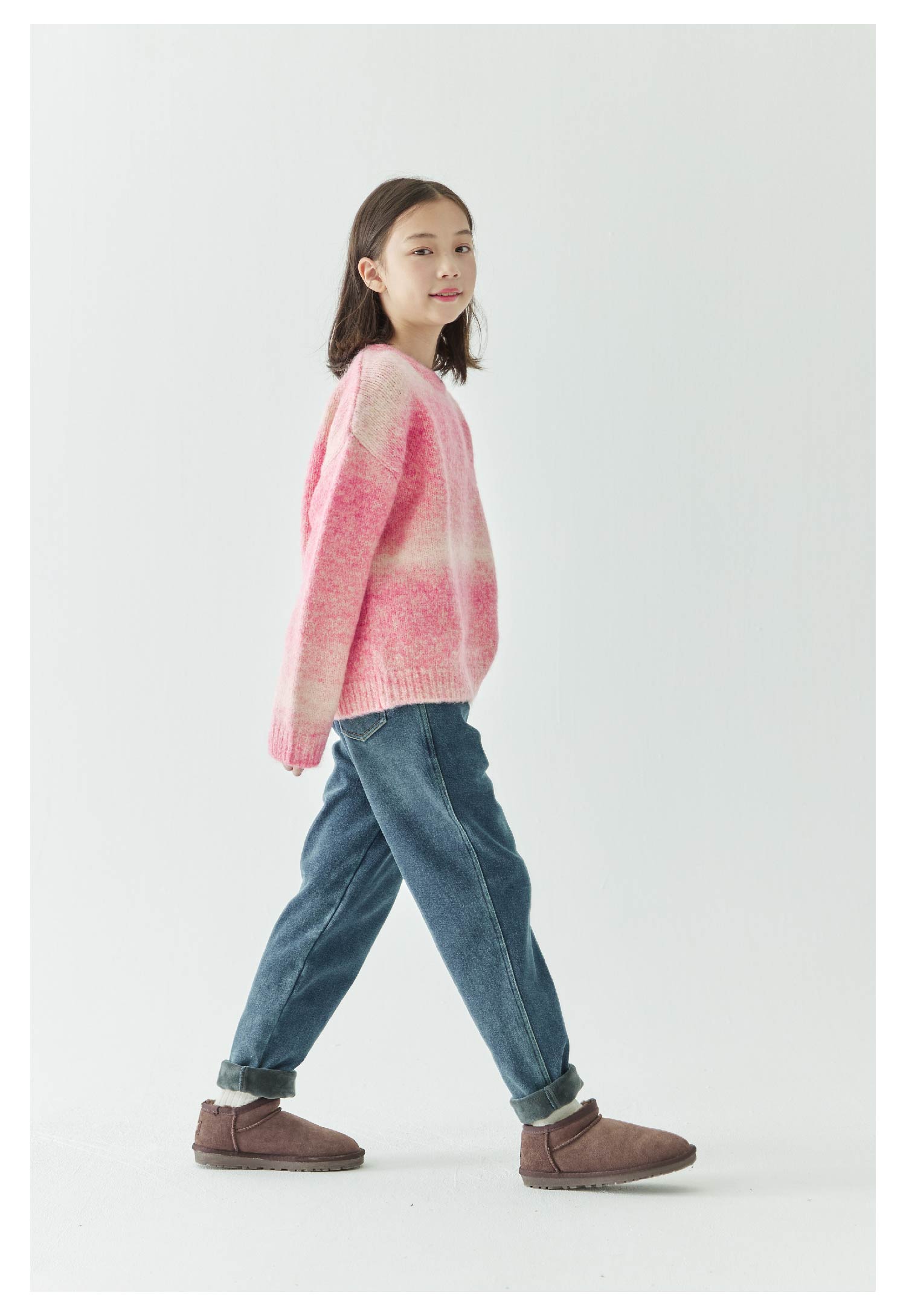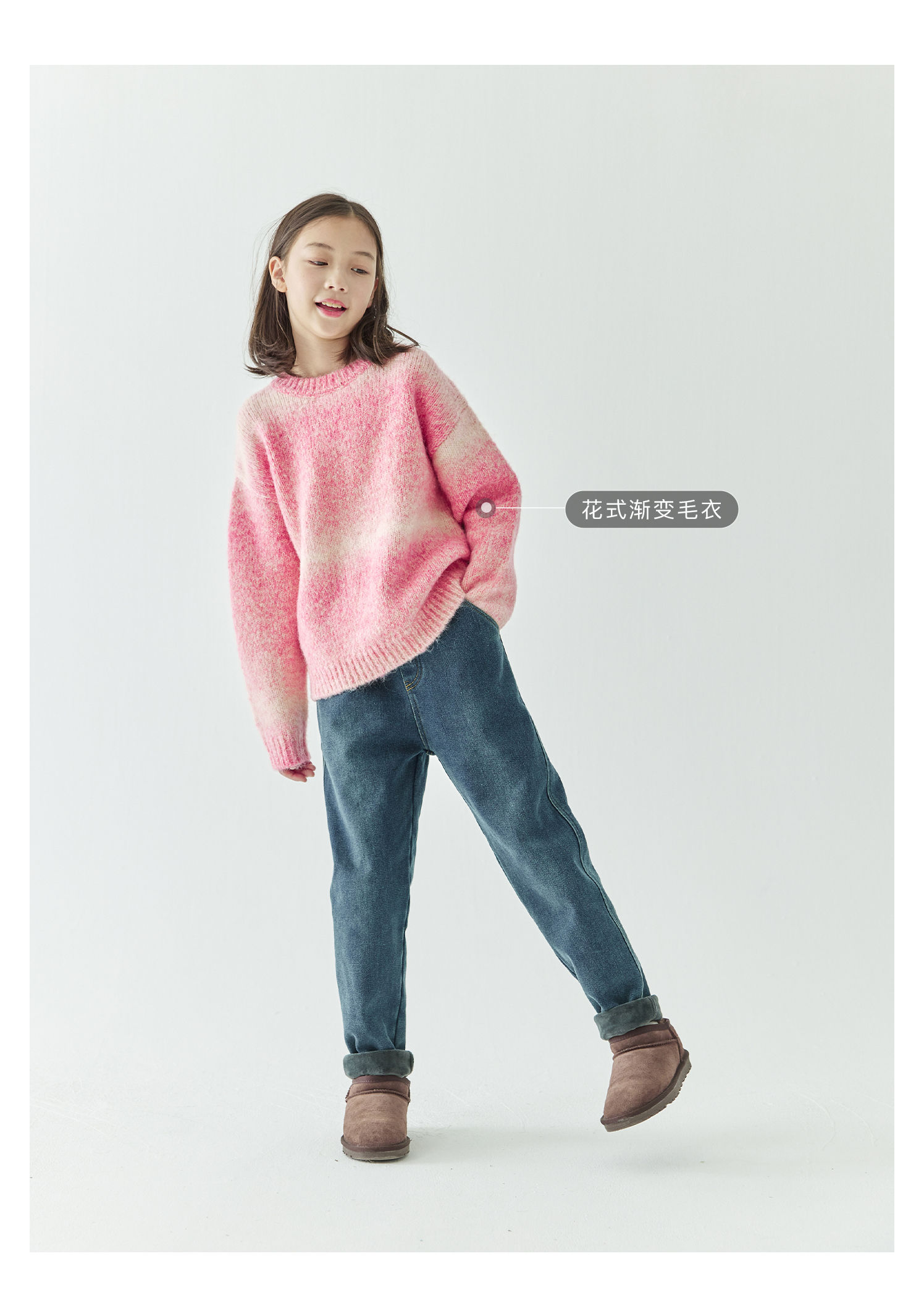 棵初2024年冬季新款儿童弹力加绒小脚牛仔裤女童水洗磨白复古长裤