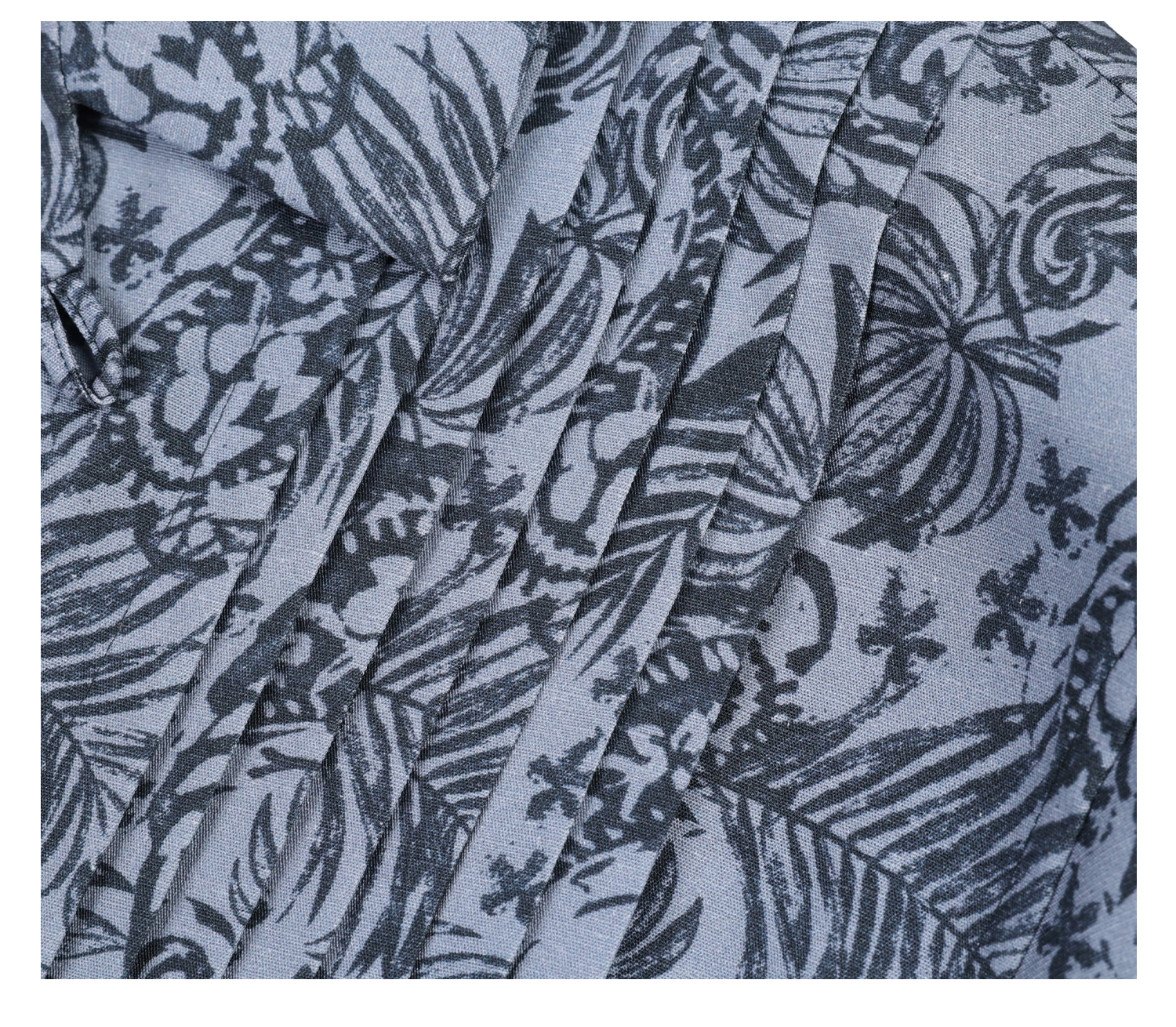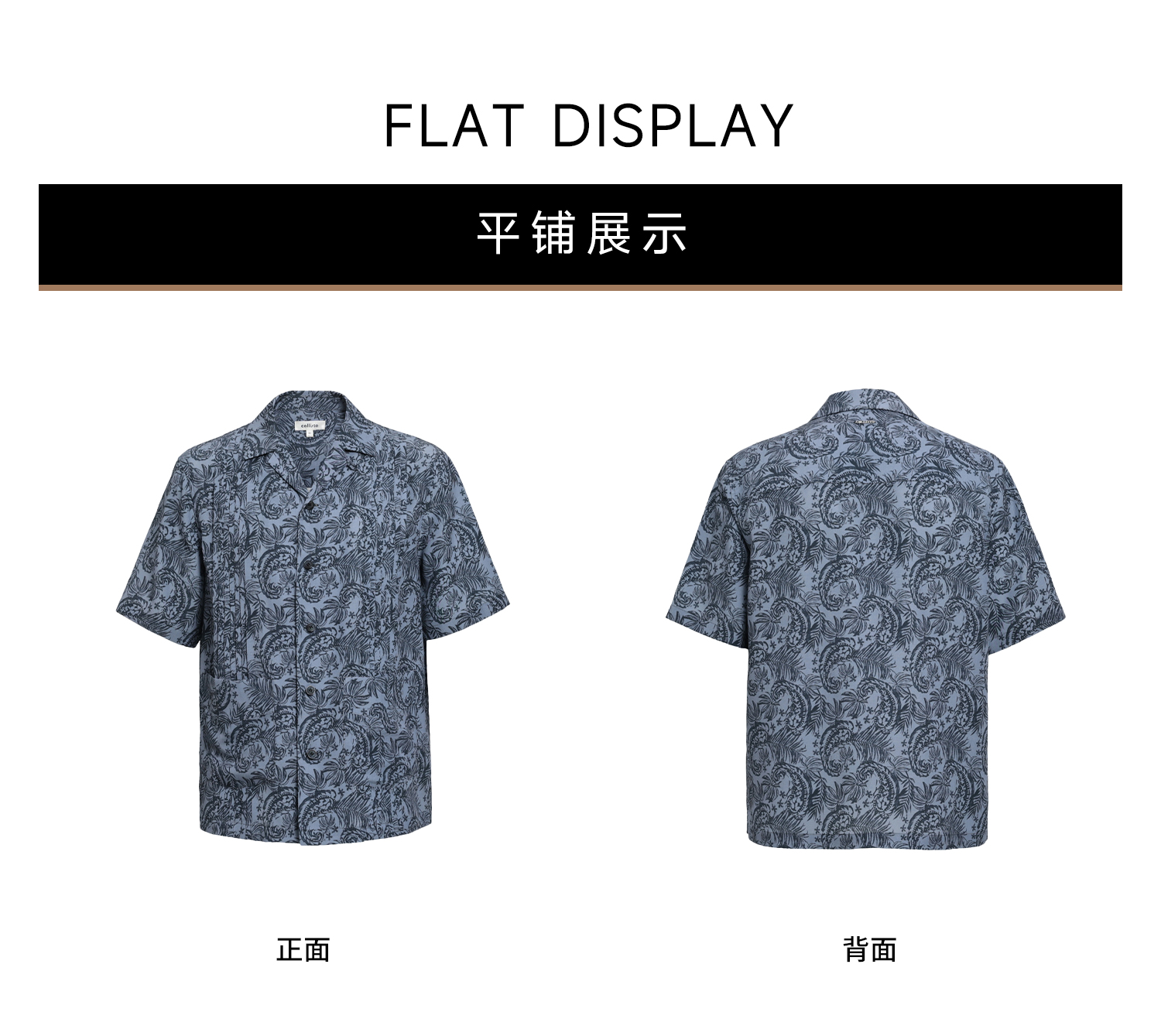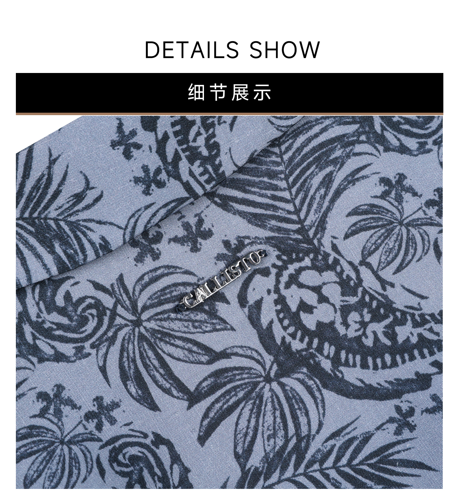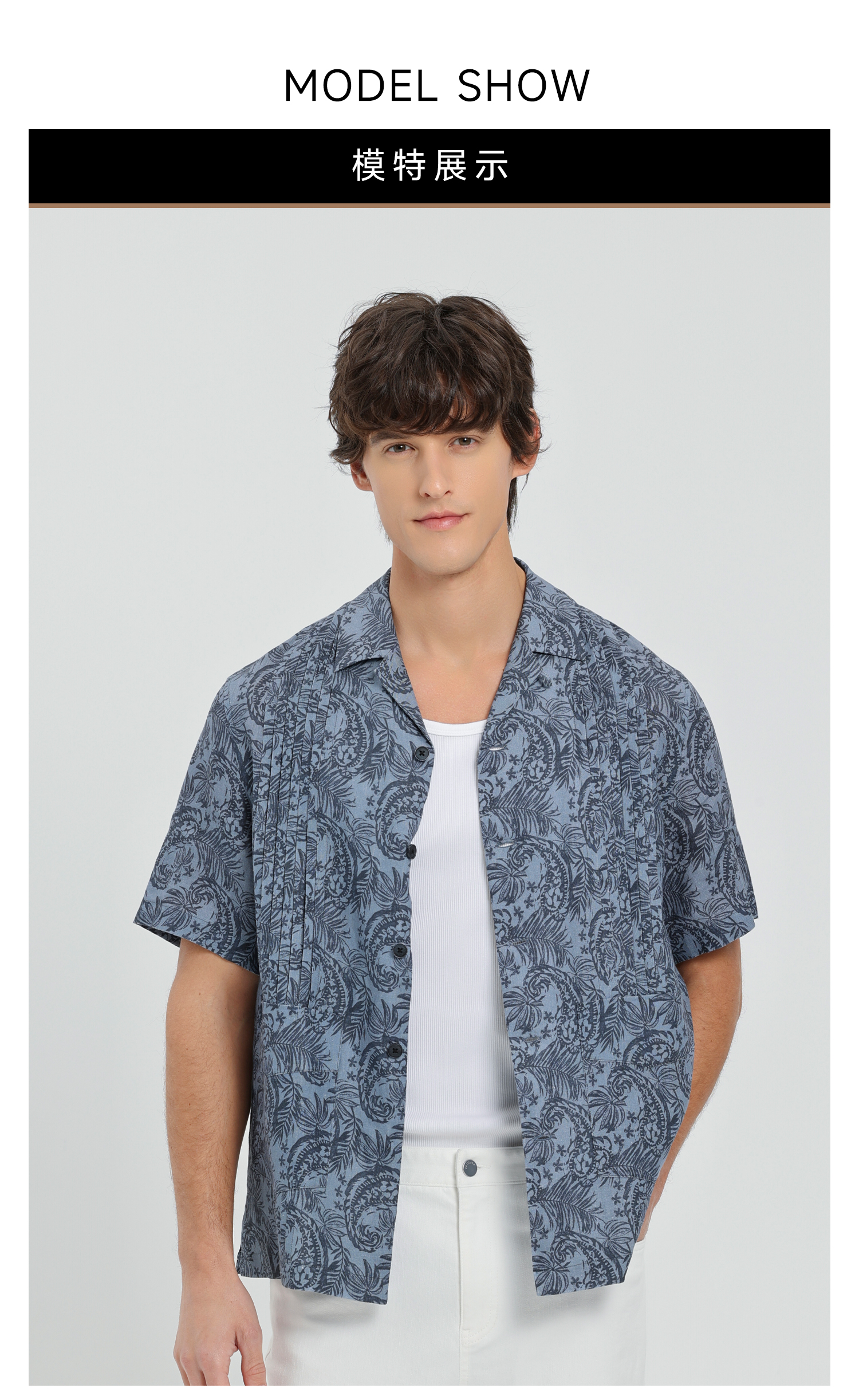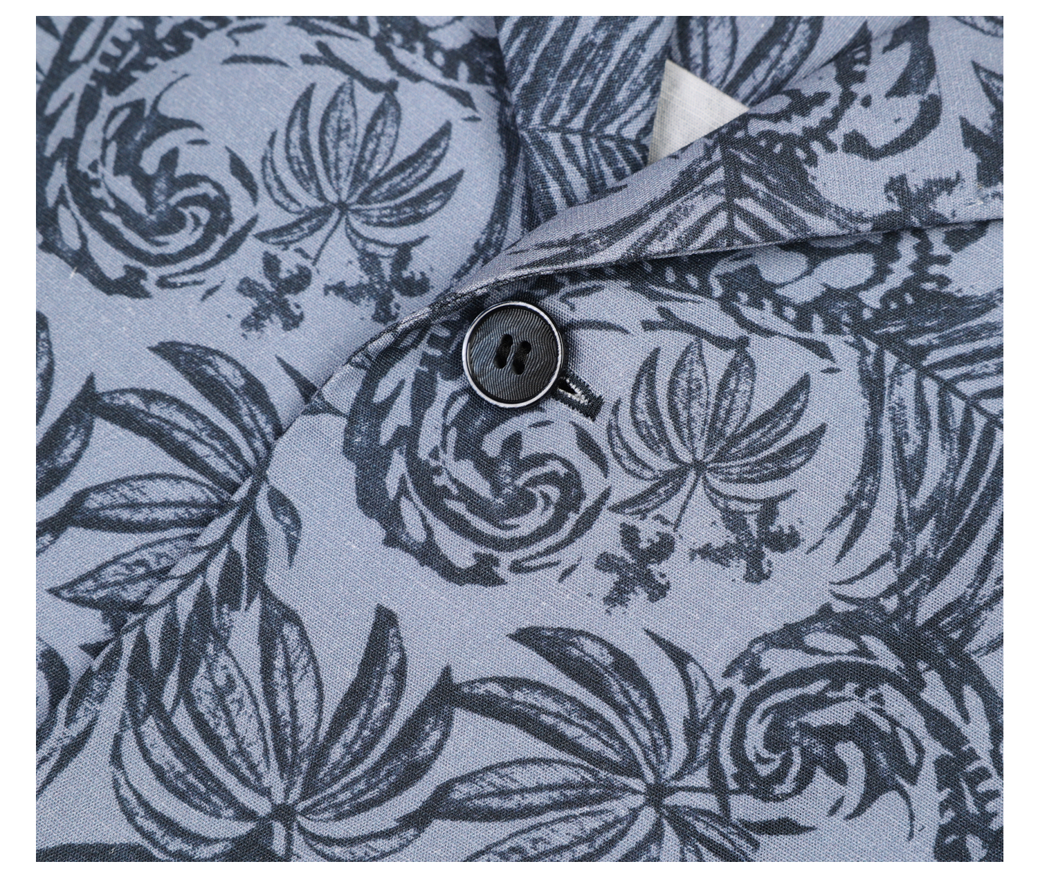 callisto蓝色莱赛尔混纺亚麻植物印花短袖衬衫