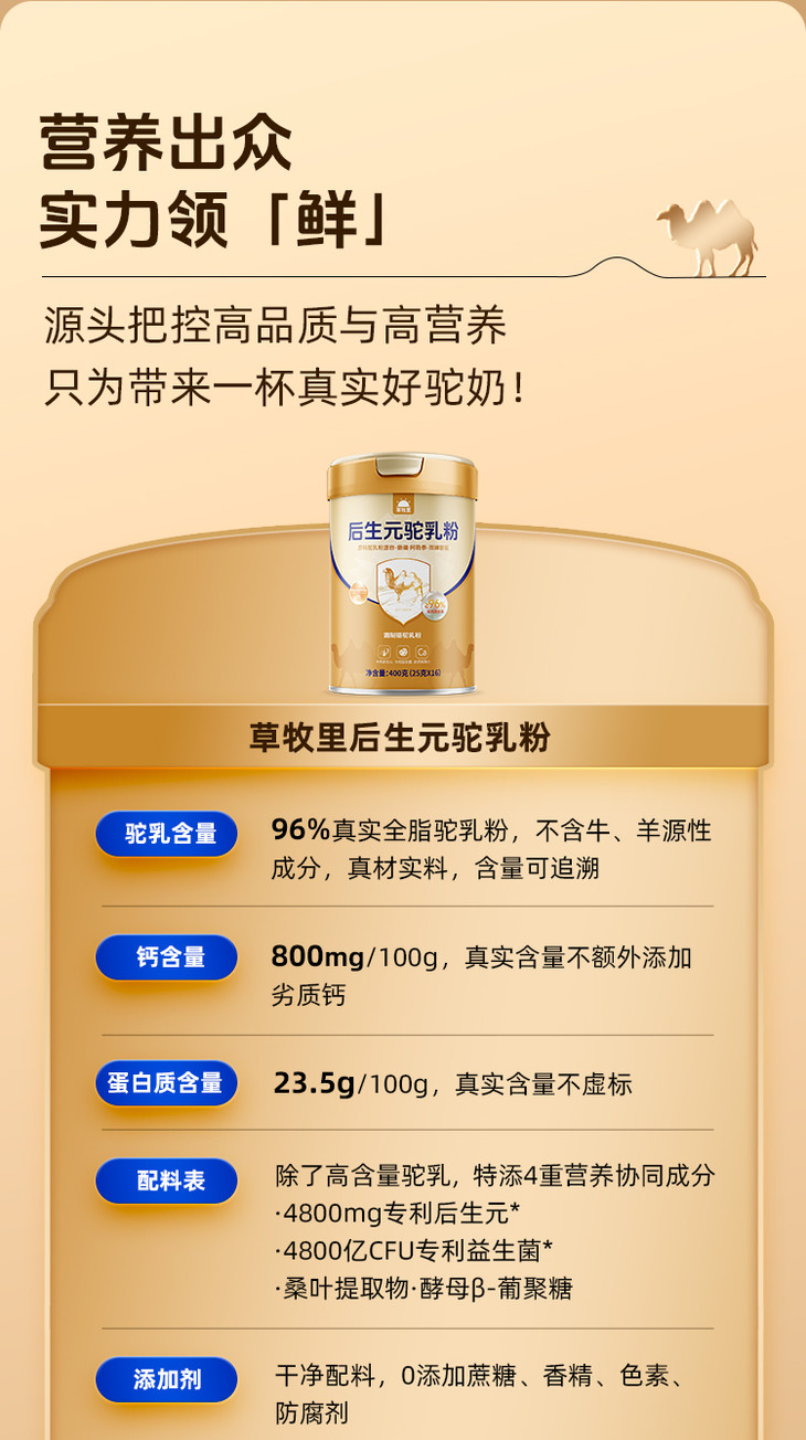 【供货】草牧里 后生元全脂驼乳粉(驼奶粉) 400g/罐 奶香浓郁 配方纯净
