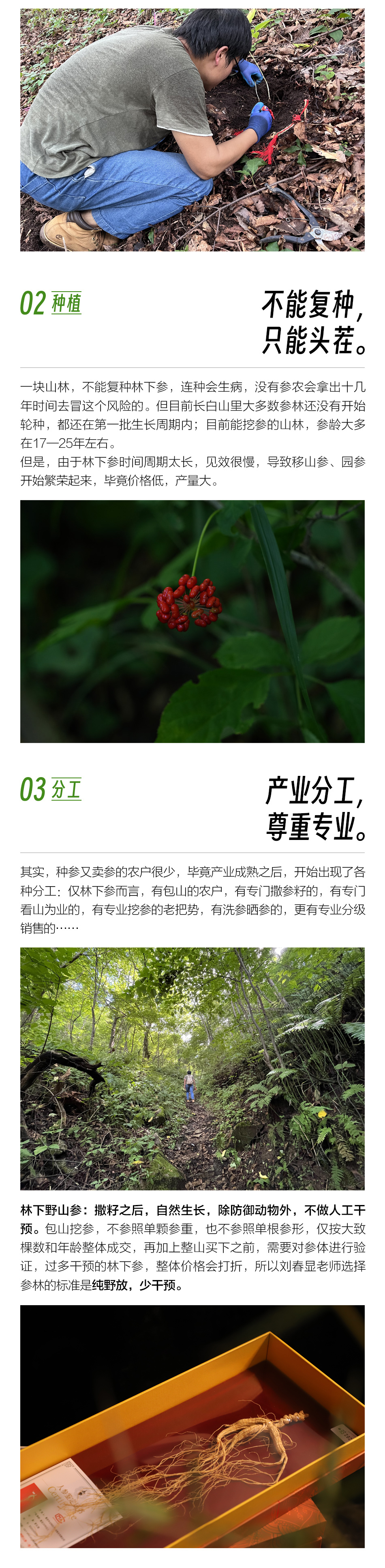 【注意事项】 1、林下参性温,孕妇、未成年人请勿食用;请勿与萝卜、黎芦一起食用。 2、图片仅供参考,具体以实物为准,林下山参为人工播种自然生长,大小品相不一,属于正常现象,拍下即表示同意以上内容。 3、我们提供野生食材供大家选择,请根据自身体质遵医嘱食用。 4、受天气或库存等原因影响快递可能偶有耽误,急单请发货前咨询客服,不接受没有提前沟通的拒收。 5、已发货后不接受没有沟通的退款申请。