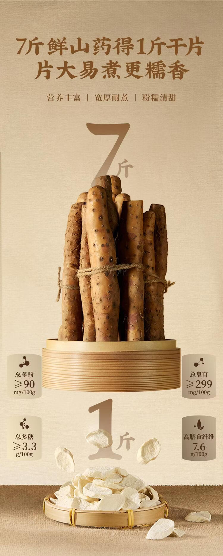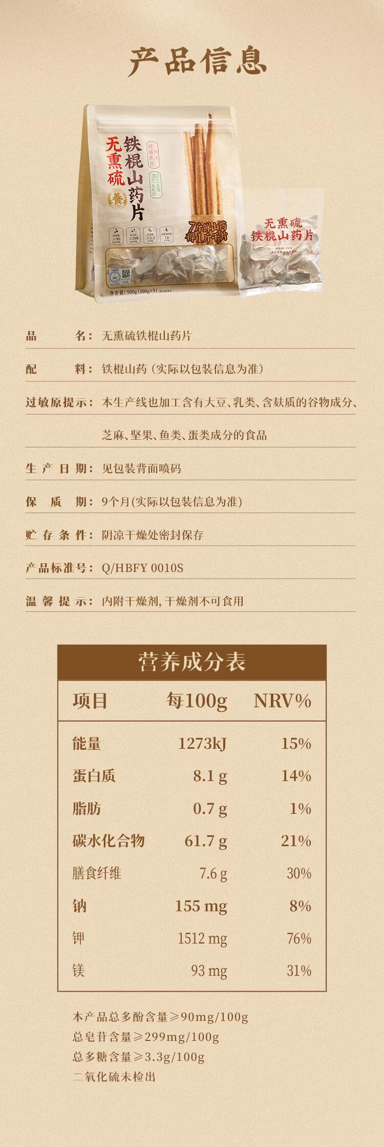 【山姆限定】无熏硫 铁棍山药片 100g/小袋