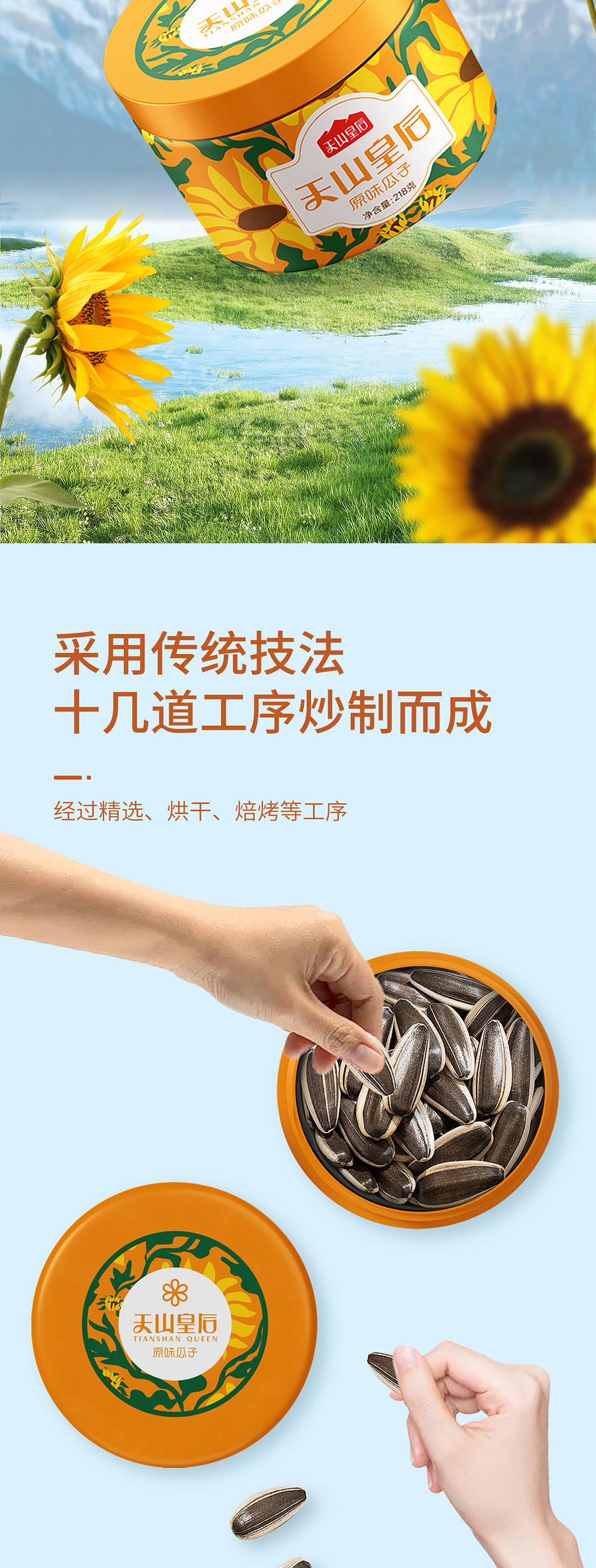 【甄选】新疆天山皇后瓜子礼盒颗粒饱满本色原味218g*6罐手提礼盒装