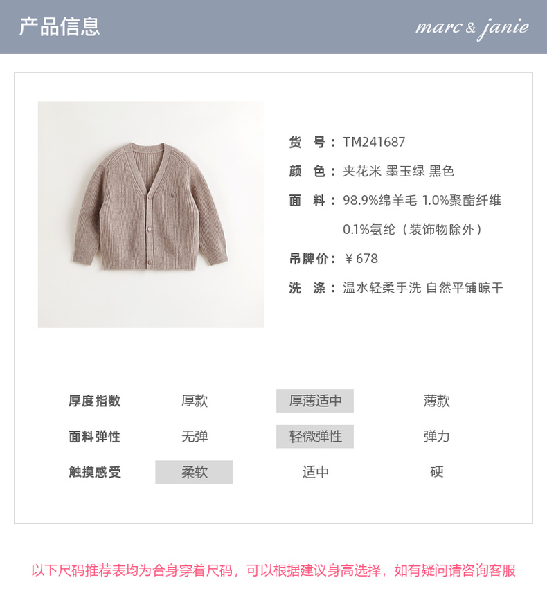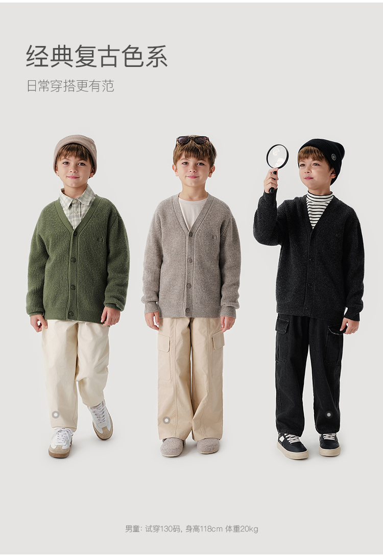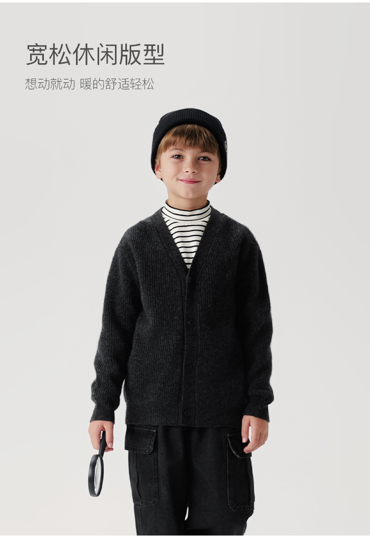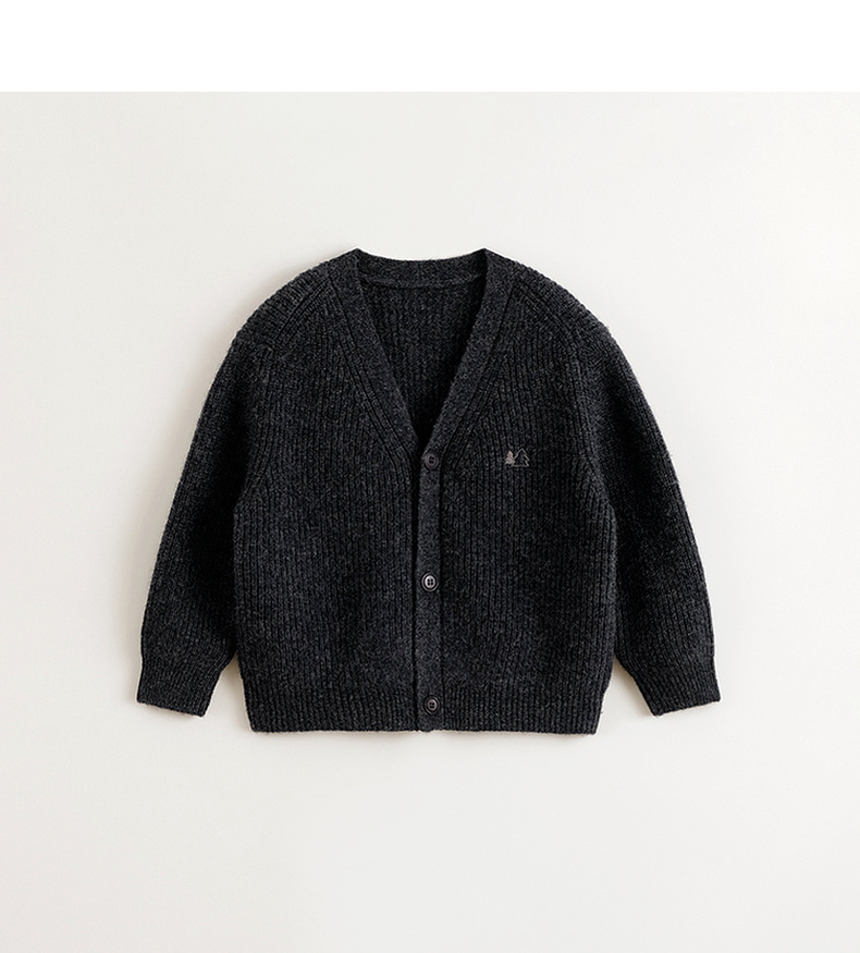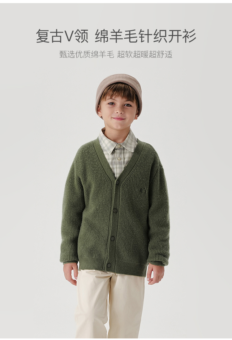 马克珍妮男童山系复古绵羊毛针织开衫儿童毛衣2024秋冬新款241687