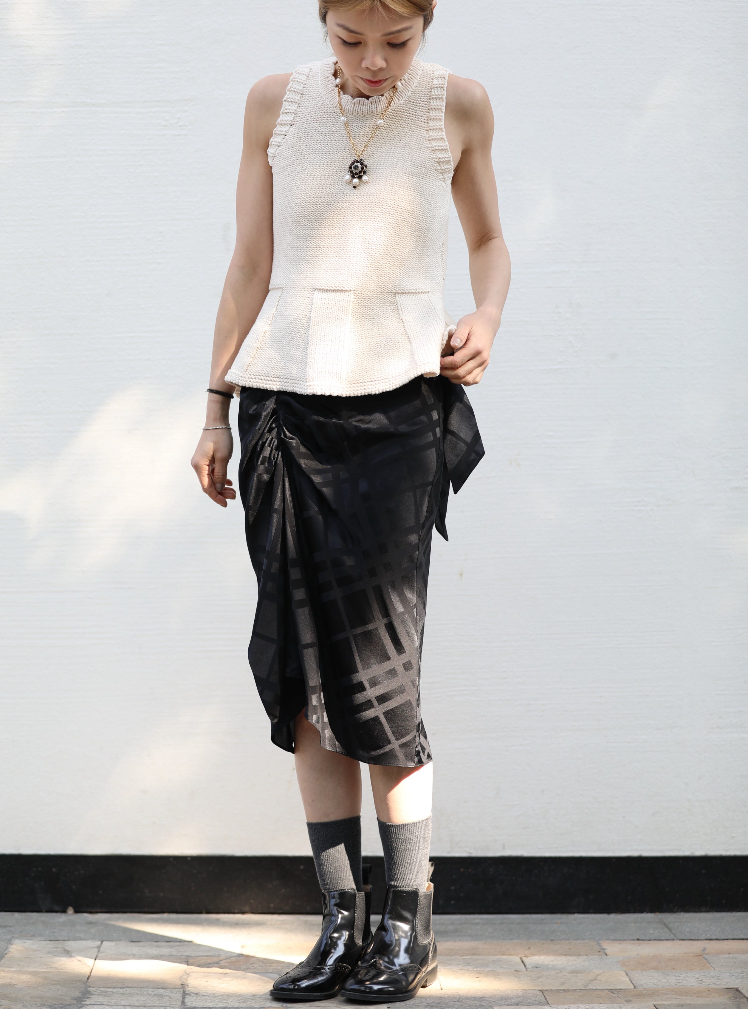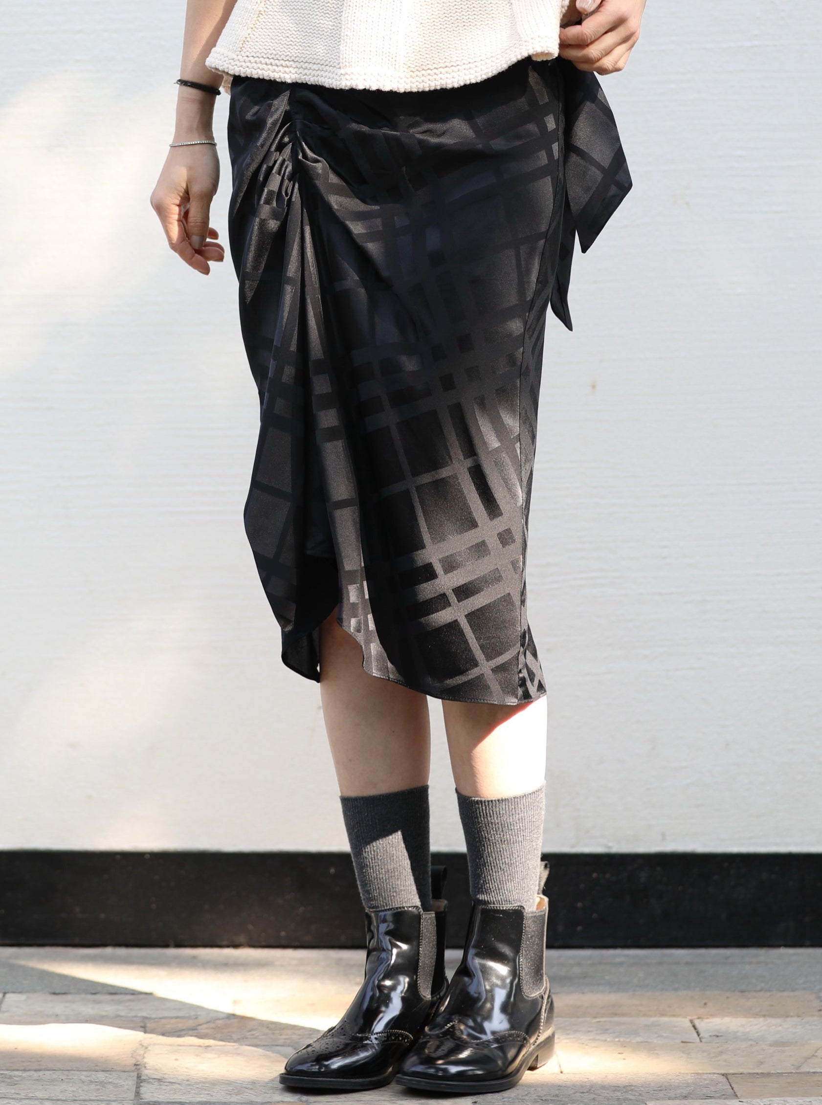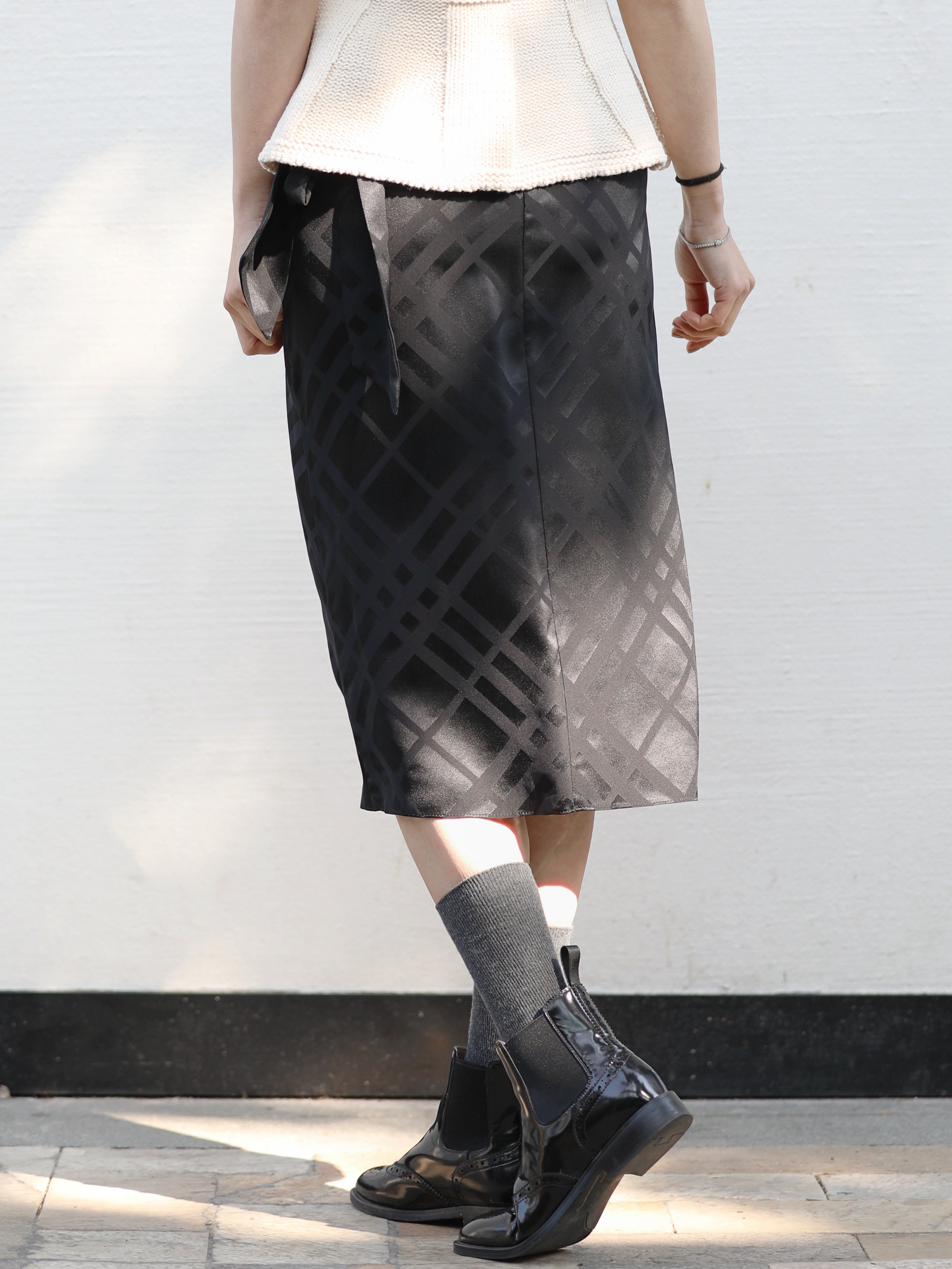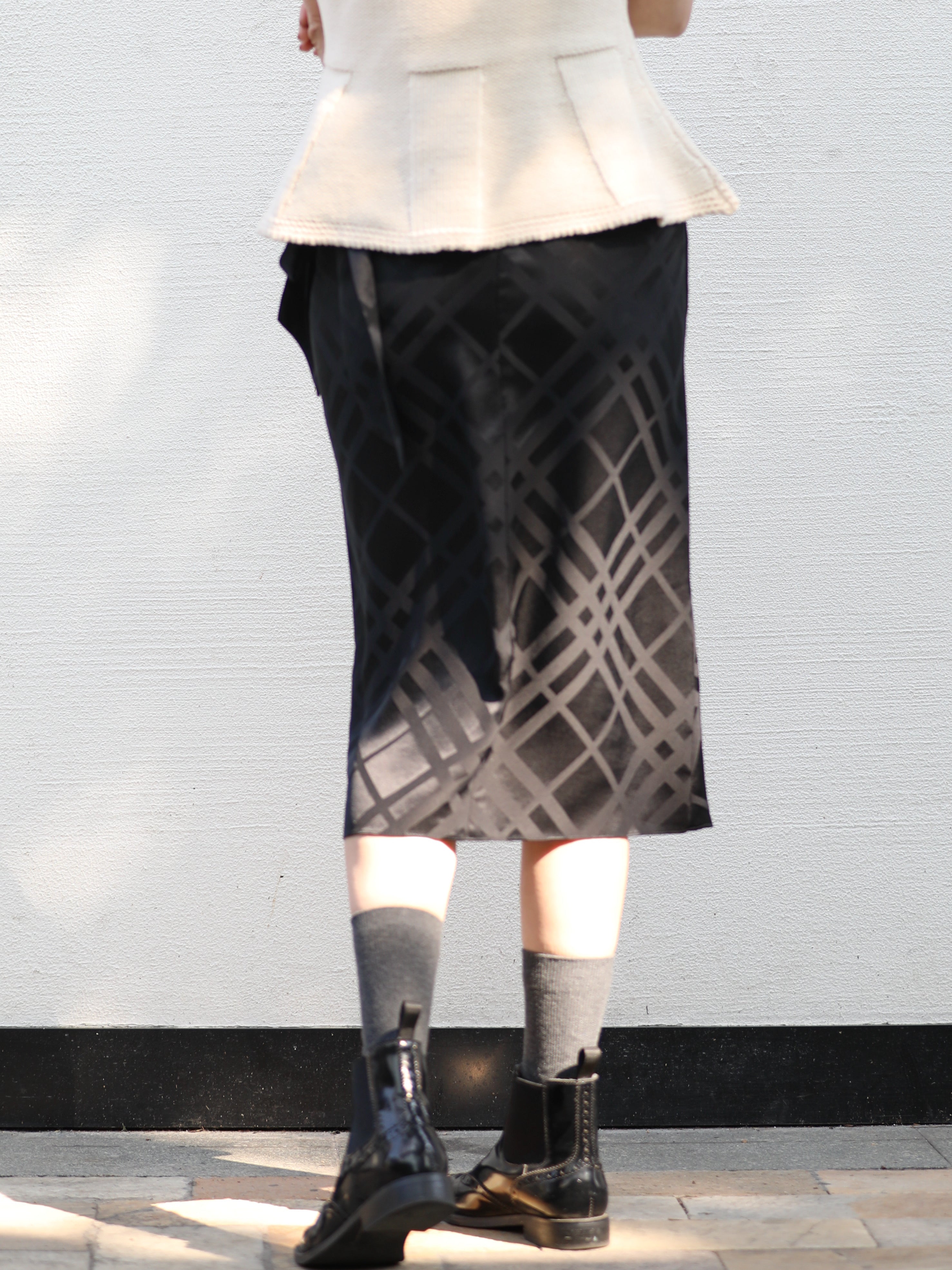 TYNVIE 荷叶边裙摆裹身裙 - 黑色格纹